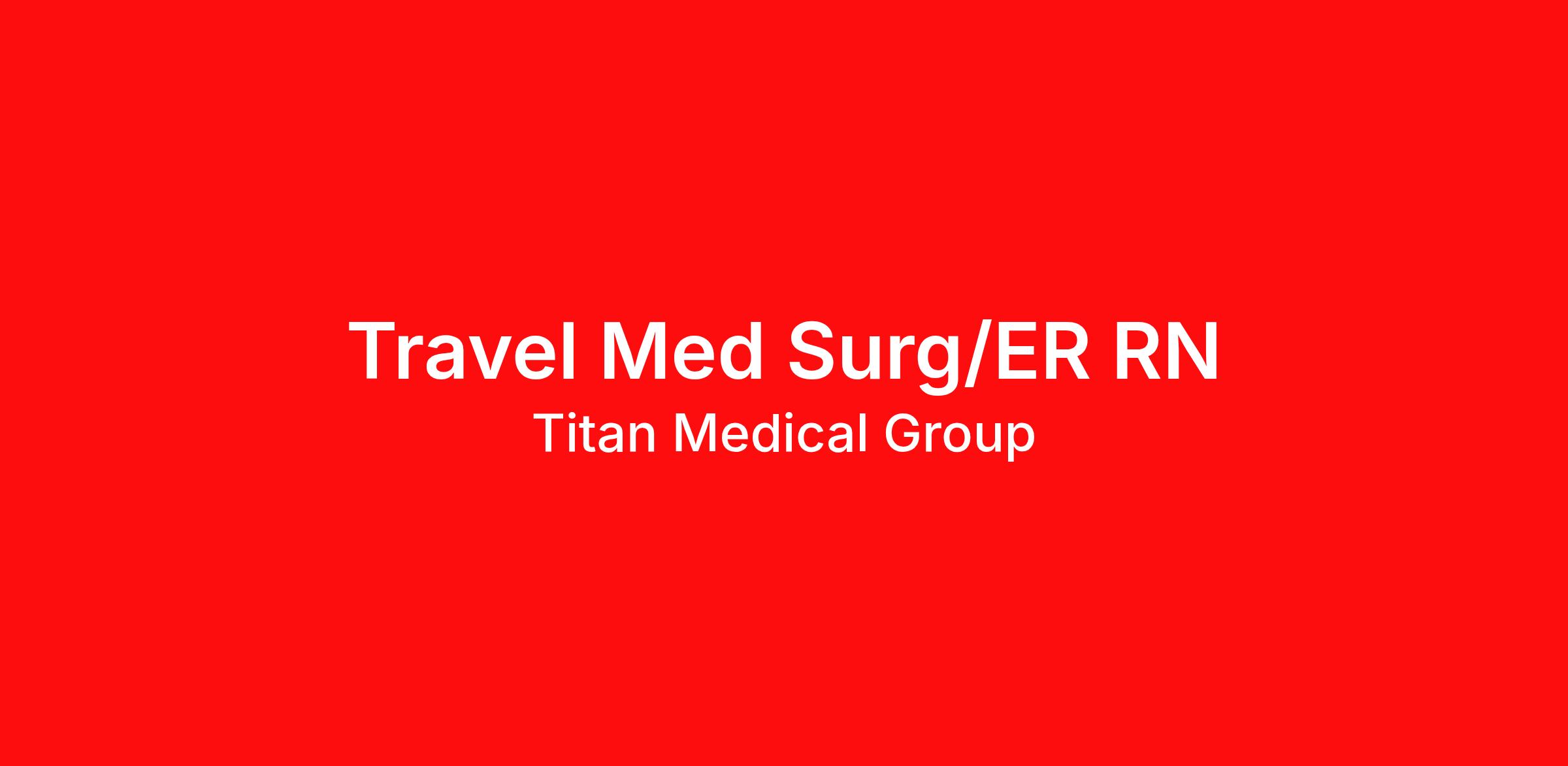 “WHEN YOU WORK FOR US, WE WORK FOR YOU.” Travel Med Surg/ER RN Weekly Gross Pay: $1801.00 - $2001.00 Location: Turtle Lake, ND, United States Start date: 3/30/2026 Assignment length: 13 Weeks Minimum years of relevant experience in healthcare: 2 years Job type: Traveler Shift: Night (3x12) Certifications: BCLS/BLS Position Highlights 13-week travel contract Competitive weekly pay package Work with an experienced clinical and recruiting team Quick start options available (inquire for details) Titan Medical is looking for travelers to fill a Travel Med Surg position for a 13-week assignment in Turtle Lake, ND! Call Titan for additional details. (866) 332-9600 Benefits Day-one medical, dental & vision insurance Loyalty bonus after 2,080 hours Life and short-term disability 401(k) with employer match Referral bonus up to $1,500 24/7 recruiter support Licensure and CEU reimbursement Experienced clinical team available to support you throughout your assignment Titan Medical App available on the Apple Store & Google Play Why Travel with Titan Medical Titan Medical provides access to thousands of travel nursing and allied health jobs nationwide. Your dedicated recruiter will help you: Build a strong traveler profile by improving your résumé and showcasing your skills Increase your chances of landing the assignment you want Travel with a top healthcare staffing company in the industry Ready to apply or want more information? Call (866) 332-9600 to connect with Titan Medical today!