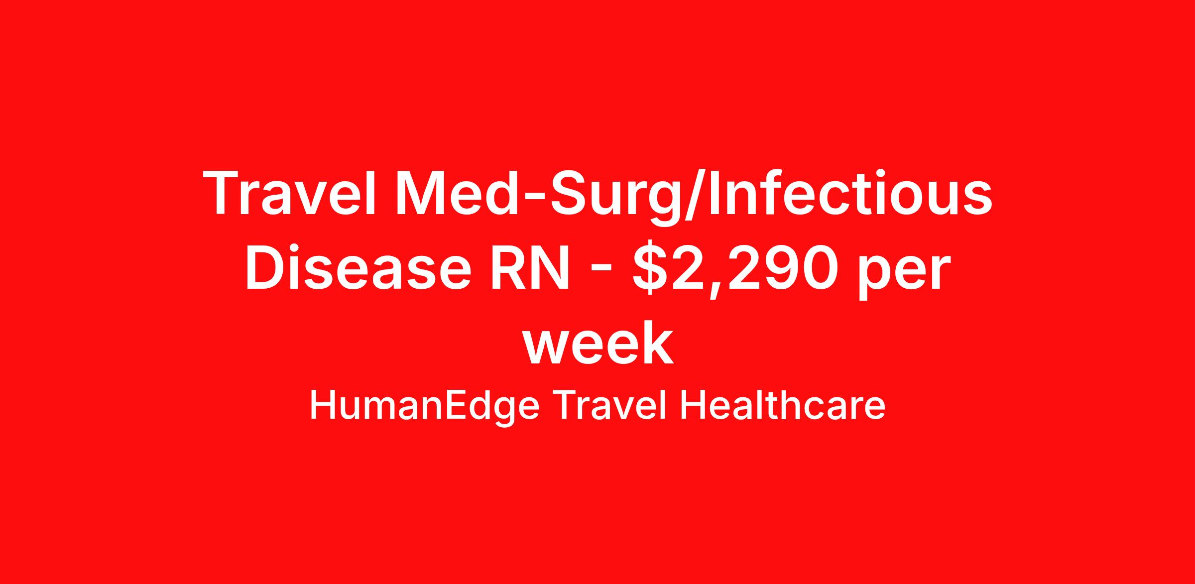 HumanEdge Travel Healthcare is seeking a travel nurse RN Med Surg for a travel nursing job in Albany, New York. Job Description & Requirements Specialty: Med Surg Discipline: RN Start Date: ASAP Duration: 13 weeks 36 hours per week Shift: 12 hours Employment Type: Travel Travel Registered Nurse (RN) – Med-Surg / Infectious Disease (Nights) Albany, NY | Start 3/16 | 13-Week Assignment HumanEdge Health is seeking an experienced Travel Registered Nurse for a 13-week Med-Surg / Infectious Disease day assignment in Albany, New York. This role is ideal for nurses with strong acute care experience in high-acuity hospital environments. Assignment Details Location: Albany, NY Start Date: 03/16/2026 Duration: 13 weeks Shift: Nights | 7:00 PM – 7:30 AM Weekends: Every other Holidays: Rotating Requirements Active RN license Minimum of 2 years of Med-Surg or Infectious Disease experience BLS and ACLS certifications required Epic EMR experience required Candidates with 1 year of experience must have experience in a 600 bed academic hospital with a passing competency testing score Candidates with 2 years of experience do not require testing Strong clinical assessment, documentation, and critical thinking skills Ability to work in a fast-paced acute care environment Contact: HumanEdge Health HumanEdge Travel Healthcare Job ID 16282. Pay package is based on 12 hour shifts and 36 hours per week (subject to confirmation) with tax-free stipend amount to be determined. Posted job title: Med Surg RN, Infectious Disease About HumanEdge Travel Healthcare HumanEdge Allied Health is a full-service nursing and allied health staffing agency that has lived and breathed staffing for more than 30 years, making us one of the most trusted in the industry!