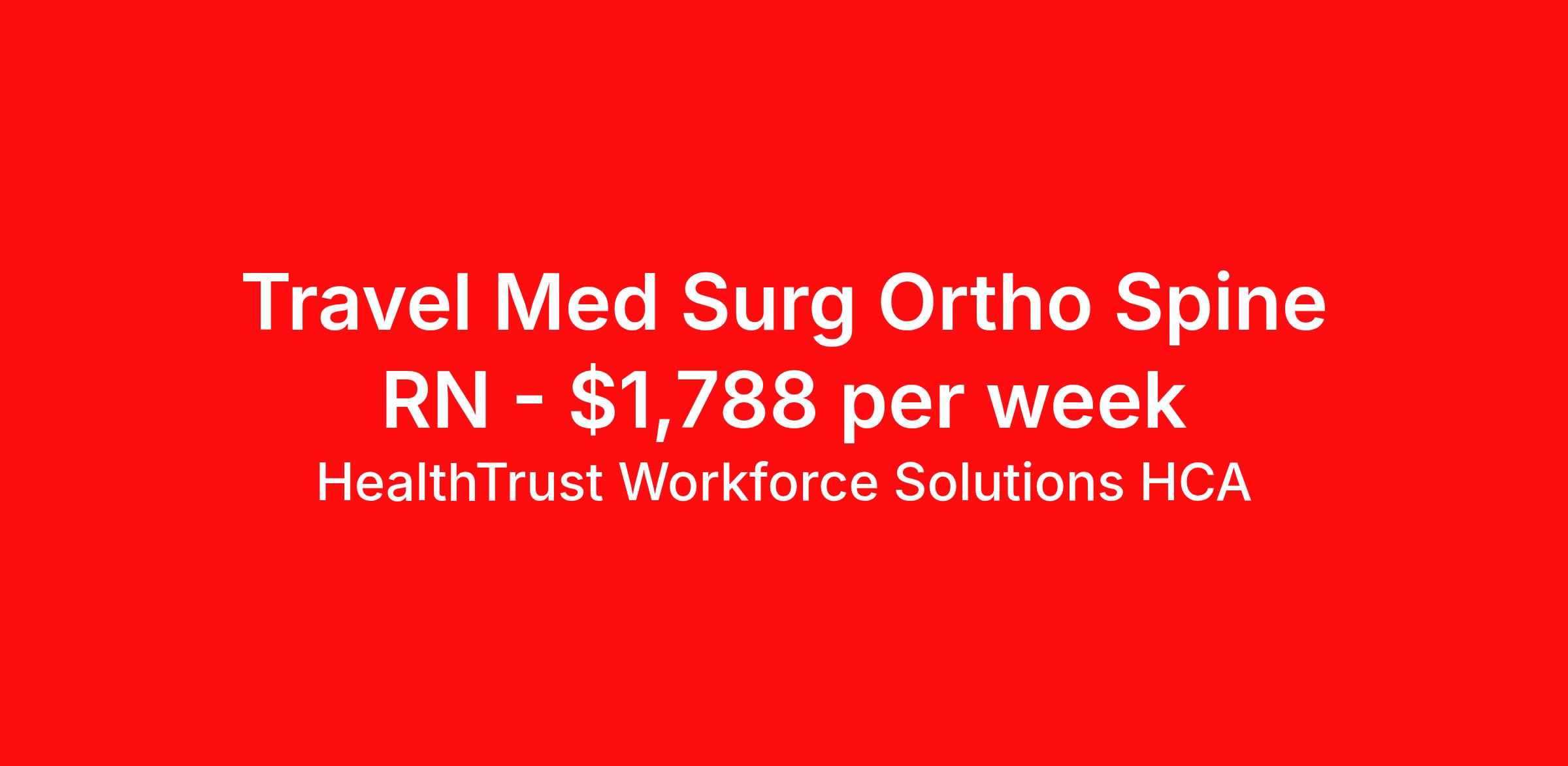 HealthTrust Workforce Solutions HCA is seeking a travel nurse RN Med Surg for a travel nursing job in Wichita, Kansas. Job Description & Requirements Specialty: Med Surg Discipline: RN Duration: 13 weeks 36 hours per week Shift: 12 hours, nights Employment Type: Travel Entrust Your Career to HealthTrust! At HealthTrust, we believe that healthcare is not defined by the four walls in which it is practiced; it’s defined by its people. We pride ourselves on crafting opportunities that expand skill sets, broaden career horizons, provide economic stability, and cultivate personal growth. HealthTrust Offers: Competitive Pay Packages Guaranteed hours Weekly direct deposit options 401k with Company Match Earn up to $750 for referrals Free Private Furnished Housing or Tax-Free Subsidy To get started, you will need: RN's a minimum of 1 year in specialty Allied 6 months of experience An adventurous spirit and fierce dedication Degree in corresponding specialty as required Appropriate certifications and licensure as needed for the specific position HealthTrust Benefits: Opportunities for a lifetime: When you become a part of the HCA family, you will have exclusive access to more opportunities than any other healthcare system in the nation. At HWS, we help open the door to a lifetime of lasting career opportunities. A culture of care: Our clinicians have made HWS an industry leader for over 25 years. We are passionate about our mission that, above all else, we are committed to the care and improvement of human life. Career Development: As a wholly owned subsidiary of HCA Healthcare, HWS is a preferred partner to thousands of top-performing hospitals. We provide our healthcare professionals with first-priority access to more than 200,000 jobs nationwide. We are uniquely positioned to offer you exclusive and direct access to HCA Healthcare’s vast network of facilities. Let us open the door to nationwide opportunities that fit your lifestyle! We are an equal opportunity employer and value diversity at our company. We do not discriminate on the basis of race, religion, color, national origin, gender, sexual orientation, age, marital status, veteran status, or disability status. Job Requirements Certifications : BLS (Required) About HealthTrust Workforce Solutions HCA At HealthTrust Workforce Solutions, healthcare is not just about the four walls of a facility but about the people who provide and receive care. Our focus is on empowering healthcare professionals to deliver exceptional patient experiences by providing them with the necessary skills, tools, and support. We partner with healthcare facilities nationwide to ensure that the right professionals are in the right roles. We prioritize our clinicians by giving them a voice and access to opportunities to fulfill their mission of improving lives by providing quality patient care. We are committed to our core values of Trust, Innovation, Adaptability, Courage, and Accountability. We are dedicated to positively impacting the healthcare industry by providing first-priority access to more than 200,000 jobs nationwide to our healthcare professionals. Join us and be part of the HealthTrust family, where you can make a difference every day. We embrace our changing environment, and we maintain a culture that has a rich tradition of transforming itself to meet the challenges of the future. MISSION STATEMENT While putting great people in the right roles is essential, our mission is far greater. We want our clinicians to be part of the HealthTrust family, where healthcare professionals have a voice and are empowered with the right tools and opportunities to fulfill their personal mission of improving lives. Plus, as a preferred partner to thousands of top-performing hospitals, we provide our healthcare professionals with first-priority access to more than 200,000 jobs nationwide. Benefits Dental benefits Vision benefits Referral bonus Continuing Education Life insurance