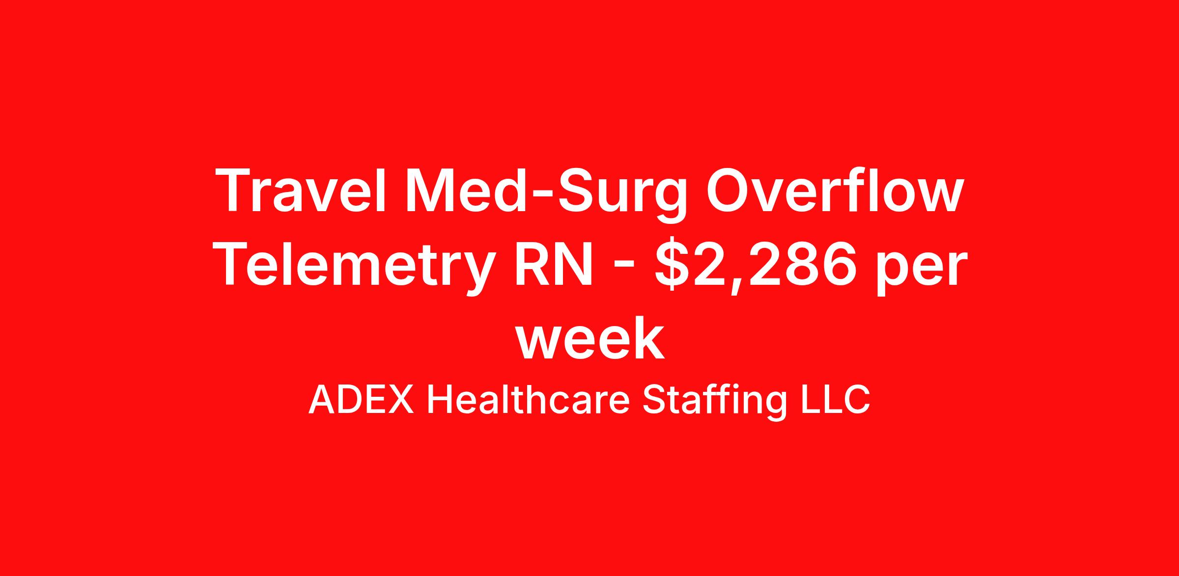 ADEX Healthcare Staffing LLC is seeking a travel nurse RN Med Surg for a travel nursing job in Wheeling, West Virginia. Job Description & Requirements Specialty: Med Surg Discipline: RN Start Date: ASAP Duration: 13 weeks 36 hours per week Shift: 12 hours, nights Employment Type: Travel RN Position Job Notes: Travel or Local Registered Nurse needed for ASAP start. A minimum of 2 years of recent hospital bedside experience is required. Candidates must be able to start within 5 weeks. Opportunity for extension upon successful completion of the initial assignment. $750 referral bonus available. Opportunity: RN - Med Surg Job Details: • Work 12-hour night shifts with weekends as scheduled • Patient ratio of 1:6-7 (must be comfortable with up to 1:7 ratio) • 30-bed medical surgical unit in acute care setting • Required certifications: BLS (AHA) and NIHSS • Navy blue scrubs required • Care for patients with common diagnoses including CHF, COPD, cellulitis, pneumonia, urosepsis, and AKI • Titrate heparin drips based on APTT results • Work with telemetry monitoring (watched remotely by monitor techs) • Intermittent BIPAP equipment available (no ventilators) • Support from PCTs (patient care technicians) on the unit • Charge nurse role includes patient assignment • Float as needed based on census (external travelers float first) • EPIC charting system • Cancellation policy allows 2 shifts per 13-week contract • Must provide copy of unexpired driver's license with submission • 50-mile radius rule applies • BSN not required Facility: This healthcare facility operates a 30-bed medical surgical unit providing comprehensive acute care services. The facility utilizes advanced electronic health record systems and maintains modern telemetry monitoring capabilities. The organization employs a collaborative care model with charge nurses, registered nurses, and patient care technicians working together to deliver quality patient care across various medical conditions and surgical cases. Location: Wheeling, WV Wheeling offers a rich historical backdrop along the Ohio River with a blend of small-town charm and cultural amenities. The area provides affordable living costs and easy access to outdoor recreation opportunities in the beautiful West Virginia landscape, making it an attractive location for healthcare professionals seeking both career growth and quality of life. Adex Job ID 1072821. Pay package is based on 12 hour shifts and 36 hours per week (subject to confirmation) with tax-free stipend amount to be determined. About ADEX Healthcare Staffing LLC ADEX has been placing healthcare professionals across the US since 2004. Originally founded in Atlanta, GA, the company's headquarters are now located in Tampa, FL. JCAHO certified since 2009. Benefits Referral bonus