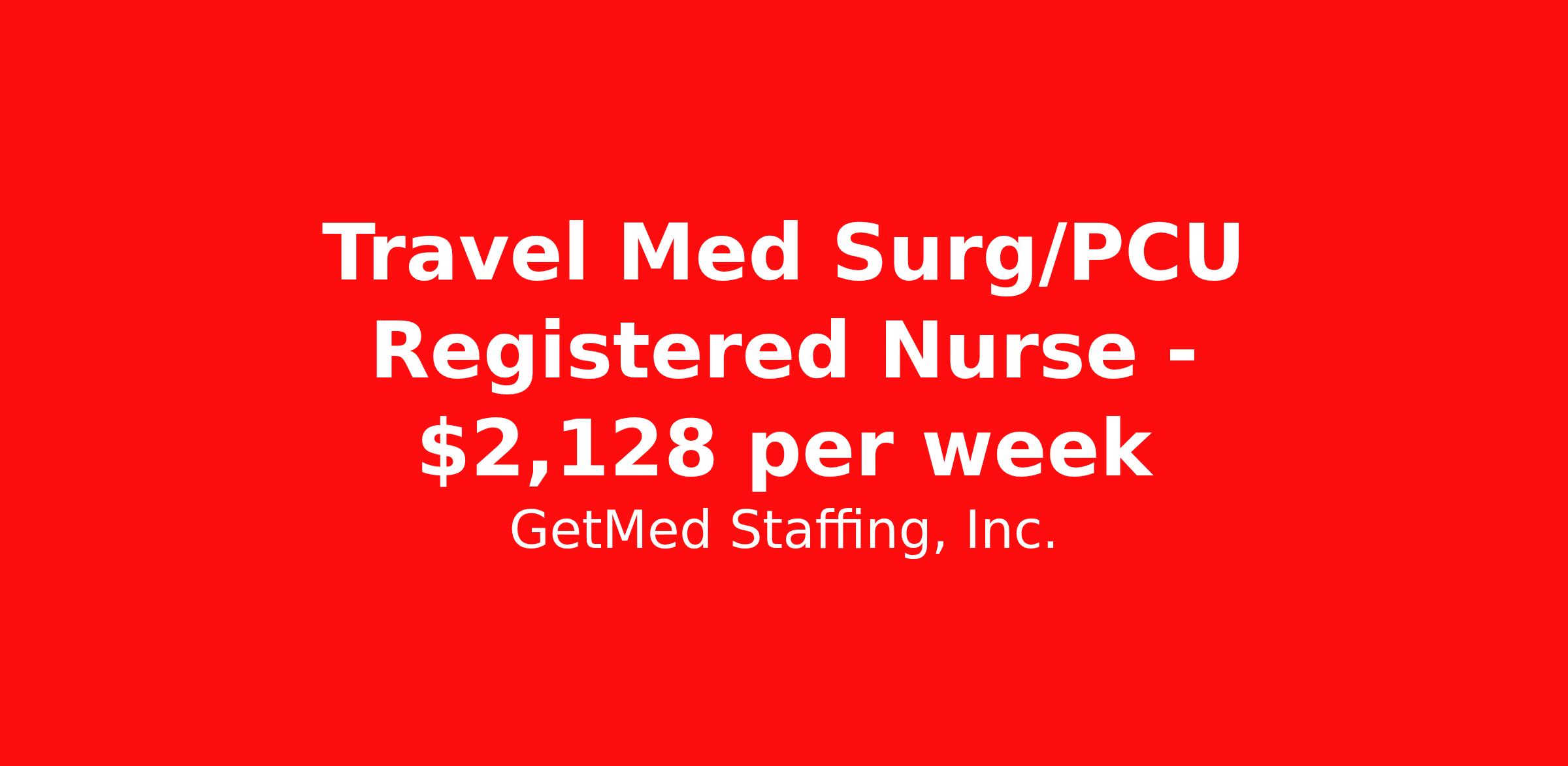 GetMed Staffing, Inc. is seeking a travel nurse RN PCU - Progressive Care Unit Med Surg for a travel nursing job in Rock Island, Illinois. Job Description & Requirements Specialty: PCU - Progressive Care Unit Discipline: RN Start Date: 05/18/2026 Duration: 13 weeks 36 hours per week Shift: 12 hours, days Employment Type: Travel GetMed Staffing is searching for a strong PCU RN to assist our traveler-friendly client. A minimum of 1-2 years of experience is required. Traveling with GetMed Staffing offers the unique opportunity to gain diverse experiences, both personally and professionally. Gain experience that matters. GetMed Staffing, Inc. Job ID 36548071. Pay package is based on 12 hour shifts and 36.0 hours per week (subject to confirmation) with tax-free stipend amount to be determined. Posted job title: RN:PCU,07:00:00-19:00:00 About GetMed Staffing, Inc. We are a diversity owned company, specializing in healthcare recruiting services. We truly understand how important a healthcare travelers' relationship is with their recruiter, as well as our relationship is with our healthcare facilities. We recognize that the needs of our healthcare travelers can vary, and therefore we provide the personalized touch necessary to ensure a successful travel assignment each and every time. Our healthcare facilities and clients benefit from us putting our healthcare travelers first. GetMed Staffing is excited to be a leader within the industry by focusing on providing healthcare travelers with more choices and possibilities as they plan for their next healthcare travel assignment. Benefits Life insurance Medical benefits Dental benefits Vision benefits 401k retirement plan