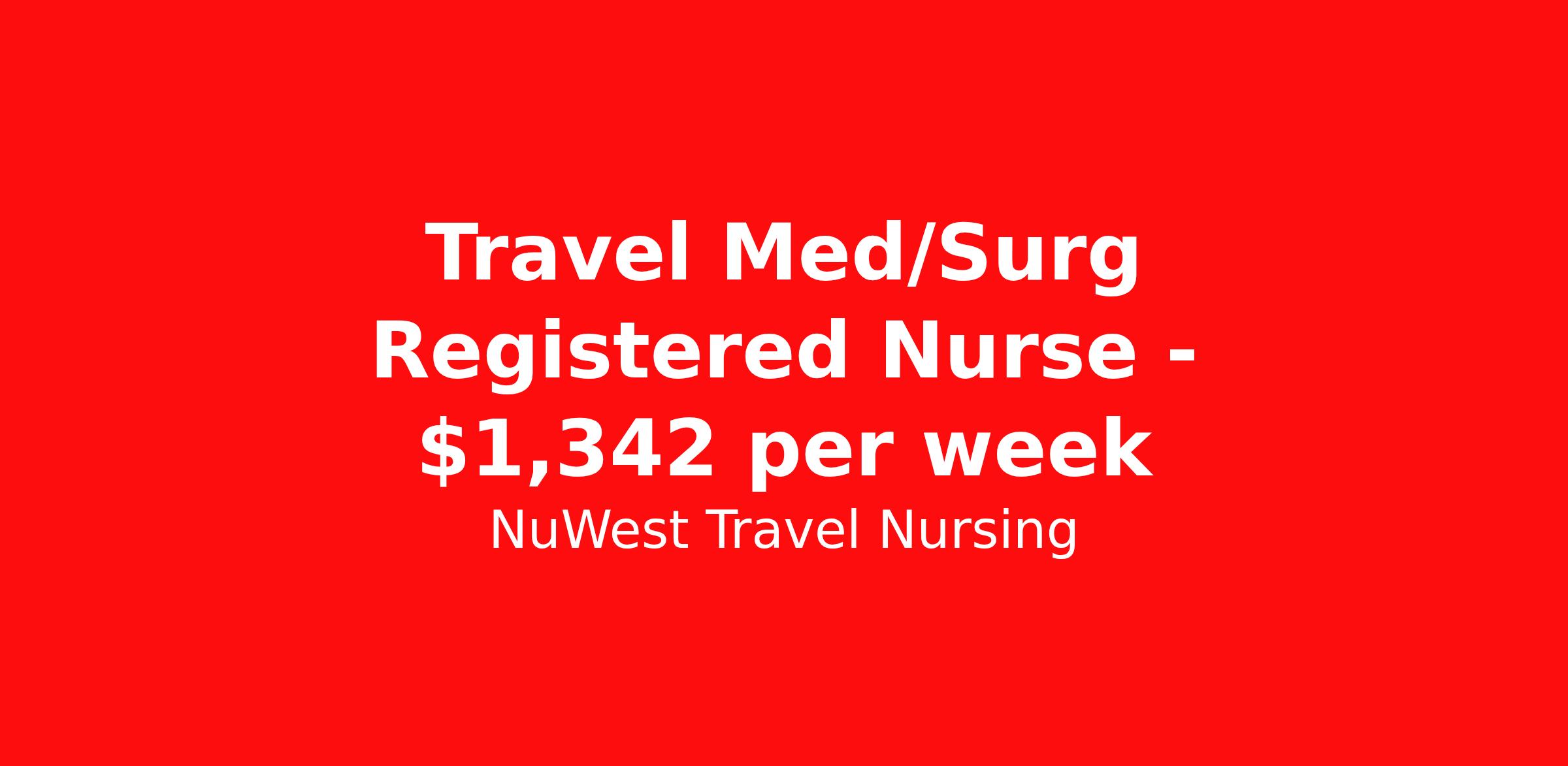 NuWest Travel Nursing is seeking a travel nurse RN Med Surg for a travel nursing job in Austin, Texas. Job Description & Requirements Specialty: Med Surg Discipline: RN Duration: 13 weeks 36 hours per week Shift: 12 hours Employment Type: Travel We have a new assignment for RN - Med/Surg in Austin, TX and are interviewing ASAP. This is a travel assignment, 3x12 Days position at a great facility. Pay Range: $1233.11 - $1450.72 Per Week Benefits include medical, dental, vision, 401K, weekly direct deposit, and more! NuWest Travel Nursing Job ID 242255. Pay package is based on 12 hour shifts and 36 hours per week (subject to confirmation) with tax-free stipend amount to be determined.