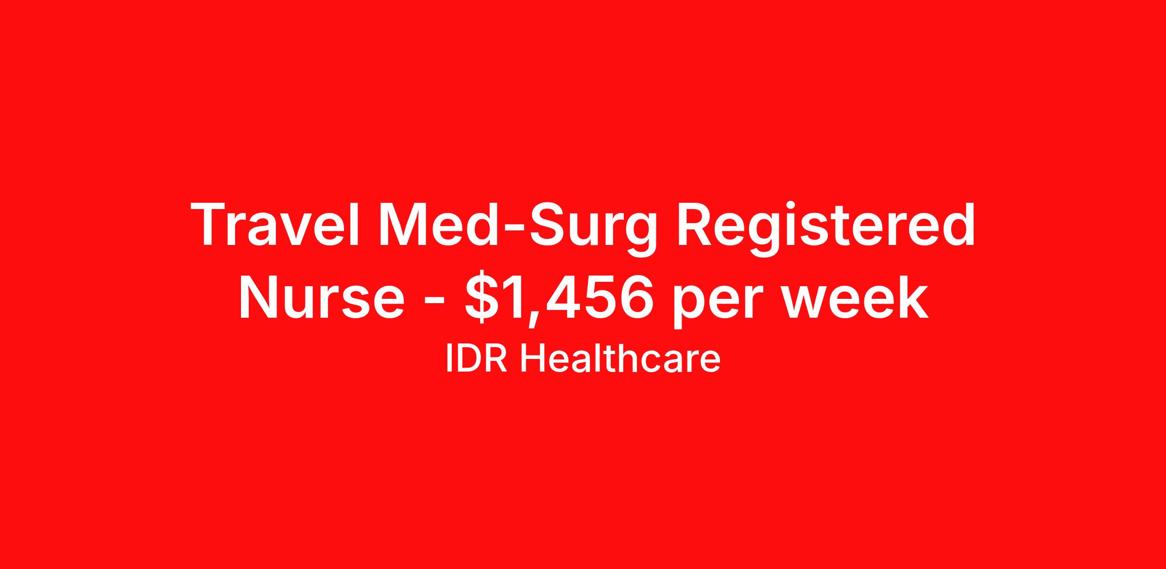 IDR Healthcare is seeking a travel nurse RN Med Surg for a travel nursing job in Port Charlotte, Florida. Job Description & Requirements Specialty: Med Surg Discipline: RN Start Date: ASAP Duration: 13 weeks 36 hours per week Shift: 12 hours, days Employment Type: Travel IDR Healthcare is an awarding winning staffing firm that believes it is a privilege and awesome responsibility to serve those who selflessly care for others. Our mission is to empower healthcare professionals to achieve their fullest potential both personally and professionally while they create positive change within the healthcare community. We exercise true grit, tenacity, and authenticity while embracing and ownership mindset to go above and beyond providing healthcare professionals a world class experience. We are employee owned and our travelers and clinicians earn shares/equity by just completing multiple assignments! We have been named SIA’s Fastest Growing Staffing Firms and have won ClearlyRated® Best of Staffing for 11 consecutive years! This cements our commitment to clinician satisfaction earning top net promoter scores putting us in the top 2% of agencies in North America! TravelFarWithIDR and see what an extraordinary experience is all about! Benefits 2024 World Staffing Best Staffing Firms to Work For! ESOP (Equity) Healthcare Benefits for up to 30 days Between Assignments Comprehensive Health Insurance Dental and Vision Insurance Sign-On, Completion, & Referral Bonus Programs License and Certification Reimbursement Weekly Pay and Competitive Compensation Large Network of Clients and Job Opportunities 401k retirement plan Exclusive Assignments IDR Job ID 488539. Pay package is based on 12 hour shifts and 36 hours per week (subject to confirmation) with tax-free stipend amount to be determined. About IDR Healthcare IDR Healthcare is an awarding winning staffing firm that believes it is a privilege and awesome responsibility to serve those who selflessly care for others. Our mission is to empower healthcare professionals to achieve their fullest potential both personally and professionally while they create positive change within the healthcare community. We exercise true grit, tenacity, and authenticity while embracing and ownership mindset to go above and beyond providing healthcare professionals a world class experience. We are employee owned and our travelers and clinicians earn shares/equity by just completing multiple assignments! We have been named SIA’s Fastest Growing Staffing Firms and have won ClearlyRated® Best of Staffing for 11 consecutive years! This cements our commitment to clinician satisfaction earning top net promoter scores putting us in the top 2% of agencies in North America! Help us give back! For every booked assignment, proceeds are donated to St. Jude and Feeding America! Last year we raised over $18,000 for St. Jude and provided over 49,000 meals for children in need. TravelFarWithIDR and see what it is all about! Benefits Weekly pay 401k retirement plan Referral bonus Medical benefits Dental benefits License and certification reimbursement Vision benefits