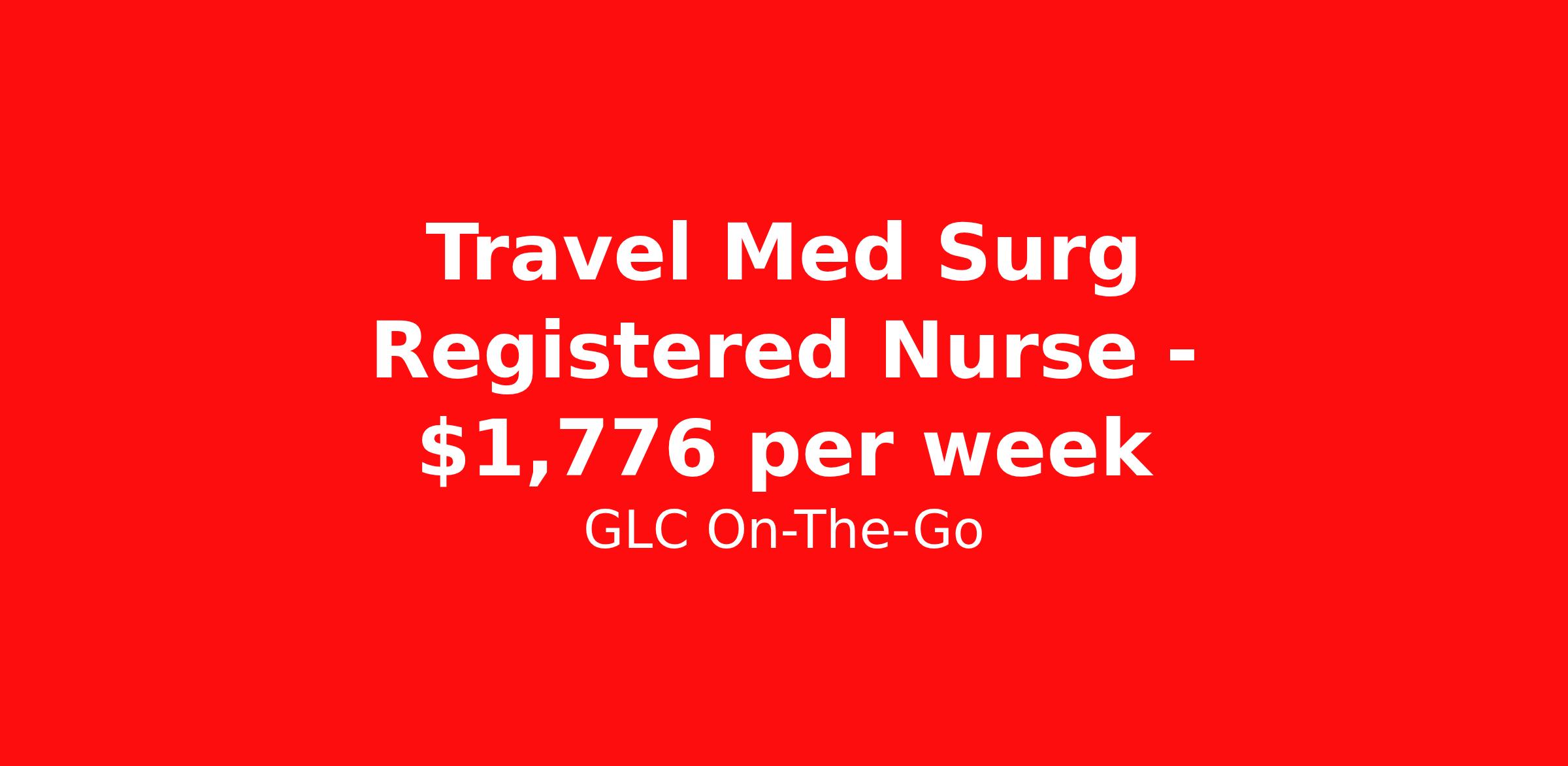 GLC On-The-Go is seeking a travel nurse RN Med Surg for a travel nursing job in Goldsboro, North Carolina. Job Description & Requirements Specialty: Med Surg Discipline: RN Start Date: 04/13/2026 Duration: 13 weeks 36 hours per week Shift: 12 hours Employment Type: Travel GLC is hiring: RN Med Surg - Goldsboro, NC - 13-week contract GLC – Named Best Nurse Agency 2024–2025 We connect nurses, nursing professionals, and allied health professionals like you to contracts that align with your skills, schedule, and career goals. About this Assignment Join the care team in Med Surg where you’ll provide patient-centered care in a collaborative environment. Typical responsibilities include direct patient care, timely documentation, and coordination with the care team. Specific duties will be confirmed during your interview with a recruiter. Assignment Details Location: Goldsboro, NC Assignment Length: 13 weeks Start Date: 04/13/2026 End Date: 07/11/2026 Pay Range: $1,598 - $1,776 Minimum Requirements Active license in Med Surg 1 year full-time RN, Med Surg experience within the last 2 years What you can expect from GLC Weekly on-time pay with direct deposit Transparent communication, clear assignment details, and recruiter support from start to finish - or extension Referral bonus up to $500 Health, dental, and vision insurance 401(k) plan Completion and signing bonuses may also be available Ready to move forward? Apply now and start your rewarding journey with GLC - a recruiter will connect quickly to review pay , start date , and assignment details so you can make the best decision for your next contract. GLC On-The-Go Job ID 504861. Pay package is based on 12 hour shifts and 36 hours per week (subject to confirmation) with tax-free stipend amount to be determined. Posted job title: RN-MedSurg About GLC On-The-Go GLC is more than just a staffing agency – we’re your trusted partner in finding travel, local, and PRN contracts that align with your career aspirations and lifestyle. We specialize in connecting travel nurses and allied healthcare professionals like you with opportunities in acute care, long-term care, behavioral health, and allied fields across the U.S. Our attentive and friendly recruiters are always just a call or text away, ready to guide you at every step, ensuring you feel valued and heard. We understand the unique needs of travel healthcare professionals, which is why we offer comprehensive benefits and 24/7 support. Join GLC, where our 20 years of experience mean we know how to help you find the assignments that turn your career goals into reality. With us, it's not just a placement – it's your dream career made possible
