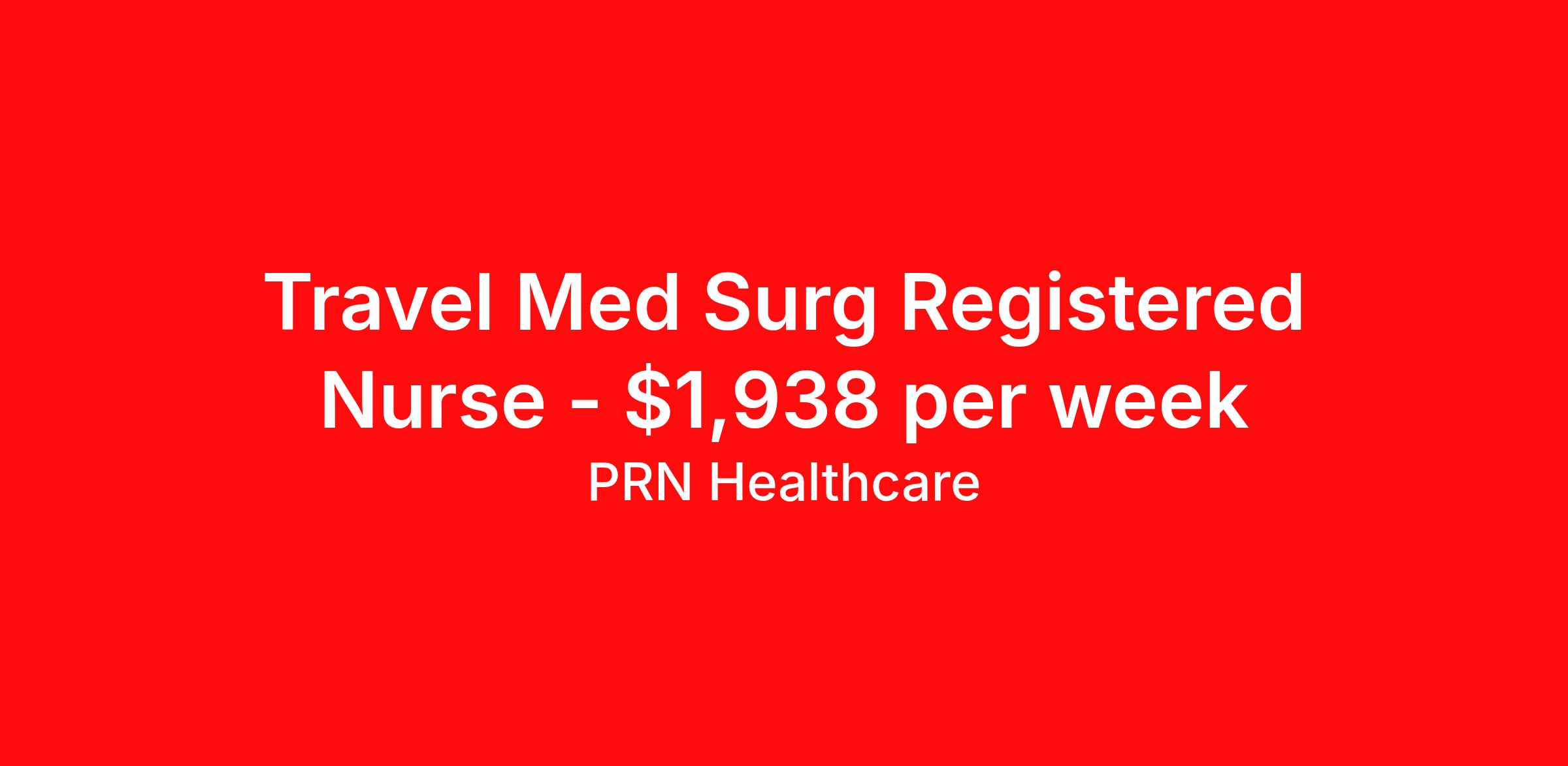 PRN Healthcare is seeking a travel nurse RN Med Surg for a travel nursing job in Carlsbad, New Mexico. Job Description & Requirements Specialty: Med Surg Discipline: RN Start Date: 04/06/2026 Duration: 13 weeks 36 hours per week Shift: 12 hours, nights Employment Type: Travel PRN Healthcare Job ID 1510568. Pay package is based on 12 hour shifts and 36 hours per week (subject to confirmation) with tax-free stipend amount to be determined. Posted job title: M/S RN About PRN Healthcare Our story starts with a 21-year-old CNA named Pete Hietpas. Pete was diligently working in eastern Wisconsin with a variety of staffing agencies, but something was missing. He loved caring for his patients, but felt that staffing agencies were exchanging compassion for competitiveness. He was determined to change that. As a result, he started Nurses PRN in 1995 to become a model for the healthcare staffing industry – being competitive in the marketplace, yet still maintaining a compassionate heart. Over the years Nurses PRN grew and evolved as a nationwide healthcare staffing company, and therefore wanted to be more inclusive to all valued healthcare professionals: nurses, allied health, locum tenens, CNAs, and more. This lead to the introduction of PRN Healthcare, which is inclusive of Nurses PRN and all of our other healthcare divisions. Our mission to create authentic, meaningful relationships with our healthcare professionals helps us set them up for success in their dream assignment, whether that be a travel contract, local contract, or per diem shift. This is all driven by the simple idea that better care for our healthcare workers, leads to better patient care – and this is all supported by a dedicated internal staff. Our company culture is strongly backed by faith-based values and activities, to remind us that our success provides us the opportunity to serve and give back to our communities. This is the spirit of caregiving. This is PRN Healthcare. Benefits Weekly pay Guaranteed Hours Continuing Education 401k retirement plan Referral bonus Employee assistance programs Company provided housing options Medical benefits Dental benefits Vision benefits Life insurance