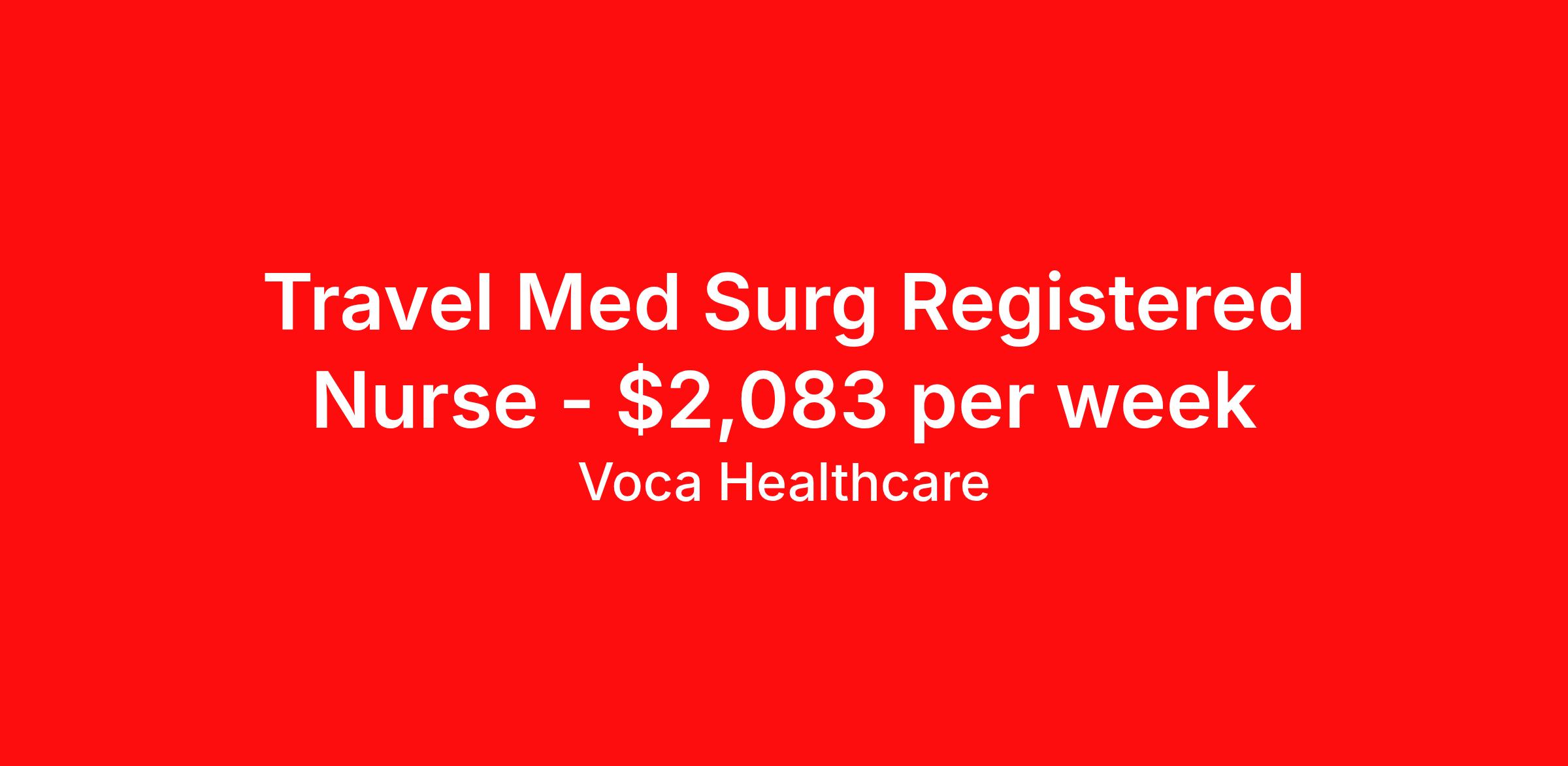 Voca Healthcare is seeking a travel nurse RN Med Surg for a travel nursing job in Lawton, Oklahoma. Job Description & Requirements Specialty: Med Surg Discipline: RN Start Date: 04/13/2026 Duration: 13 weeks 36 hours per week Shift: 12 hours, nights Employment Type: Travel Benefits available on 1st of the month after start: Holiday pay Weekly pay Retention bonus 401k retirement plan Medical benefits Dental benefits Vision benefits Referral bonus Voca Healthcare Job ID 17937187. Pay package is based on 12 hour shifts and 36.0 hours per week (subject to confirmation) with tax-free stipend amount to be determined. Posted job title: RN:Med Surg,19:00:00-07:00:00 About Voca Healthcare As a Voca Traveler, you will gain new clinical skills, visit amazing places and meet awesome healthcare professionals. As a travel health professional, your experience and dedication to patient care is in high demand throughout the United States. Whether you are a veteran traveler looking for your next opportunity, or you are looking to travel for the first time, Voca is here to support you. Voca’s experienced and dedicated travel team works in concert with you every step of the way. Our long-standing partnerships with some of the most respected and recognized healthcare organizations in the country allow us to identify career opportunities to help you increase your knowledge and experience while working with some of the best physicians and healthcare professionals in the world. At Voca, we strongly believe a better career results in a happier you. We are here to help you find a position that is professionally and personally rewarding. Benefits Holiday Pay 401k retirement plan Medical benefits Dental benefits Vision benefits Guaranteed Hours