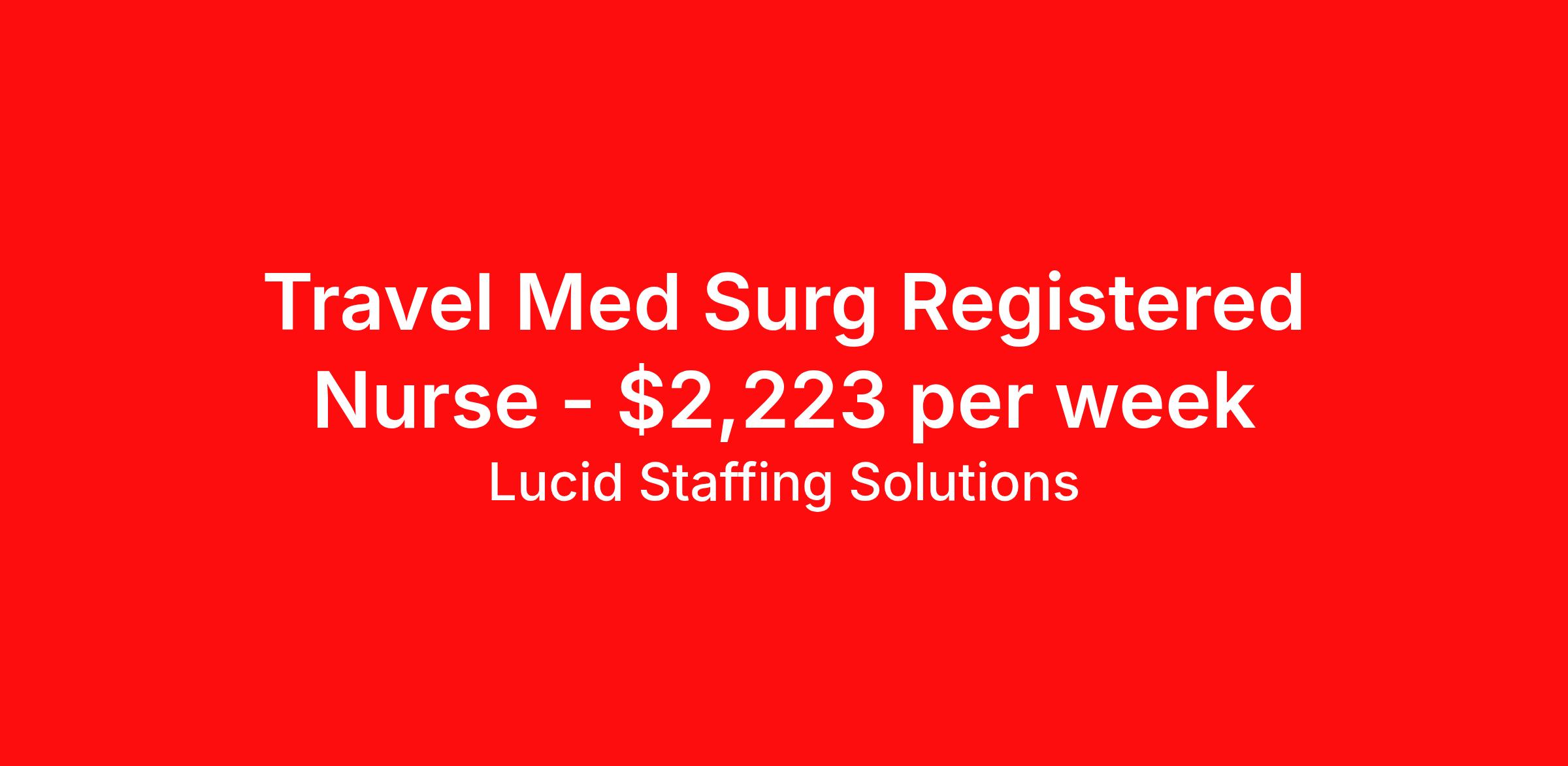 Lucid Staffing Solutions is seeking a travel nurse RN Med Surg for a travel nursing job in Lawton, Oklahoma. Job Description & Requirements Specialty: Med Surg Discipline: RN Duration: 13 weeks 40 hours per week Shift: 8 hours, days Employment Type: Travel Job Description Position: Travel Registered Nurse (RN) with experience in MS Location: Lawton, Oklahoma Shift: hr Day Weekly Gross: $2223.20 Lucid Staffing Solutions was created by former healthcare workers who lived the short staffing, the chaotic workflows, and the nonstop pressure that comes with patient care. We built an agency powered by real clinical experience, kept simple and supportive, so you never have to guess whether the people guiding you actually know what they’re talking about. Minimum Requirements: Active license as a Registered Nurse (RN) Licensed in Oklahoma (If applicable) or compact eligible Two years of recent MS experience Active BLS Why Lucid Works for Travelers Paid Weekly: Stipends pushed to GSA limits whenever possible $500 Travel Reimbursement: Paid at the start of each assignment Clinician-Led Team: Recruiters and Account Managers with real clinical experience In-House Compliance: fast updates, real communication, and none of the delays that come with outsourced vendors. Health Coverage Options: Multiple medical plans plus dental, vision, and workers compensation 401(k) Match: 4 percent match after 6 months License & Certification Reimbursement: We help cover the cost of staying compliant Liability Insurance: Included automatically Referral Bonuses: $500 per referral, $750 after five referrals Ready to start your journey? Apply today to connect with a Clinician-Recruiter! Lucid Staffing Solutions Job ID 37254. Pay package is based on 8 hour shifts and 40 hours per week (subject to confirmation) with tax-free stipend amount to be determined. Posted job title: MS About Lucid Staffing Solutions Clinician Owned & Operated At Lucid Staffing Solutions, we do things differently—because we’ve been in your shoes. Founded by actual healthcare professionals, Lucid was built to fix the issues we experienced as travelers. We know what makes a great assignment: competitive pay, seamless onboarding, honest recruiters, and most importantly—working with a team that truly sees and supports you. Our entire team is made up of former clinicians who understand the demands of the job and what travelers truly need to succeed. We offer some of the highest paying allied health and nursing contracts across the country, along with some amazing benefits & perks. Whether you're chasing freedom, flexible schedules, bigger paychecks, or your next adventure, Lucid helps you get there—with real support, real respect , and real healthcare experts. Benefits Dental benefits Medical benefits Vision benefits