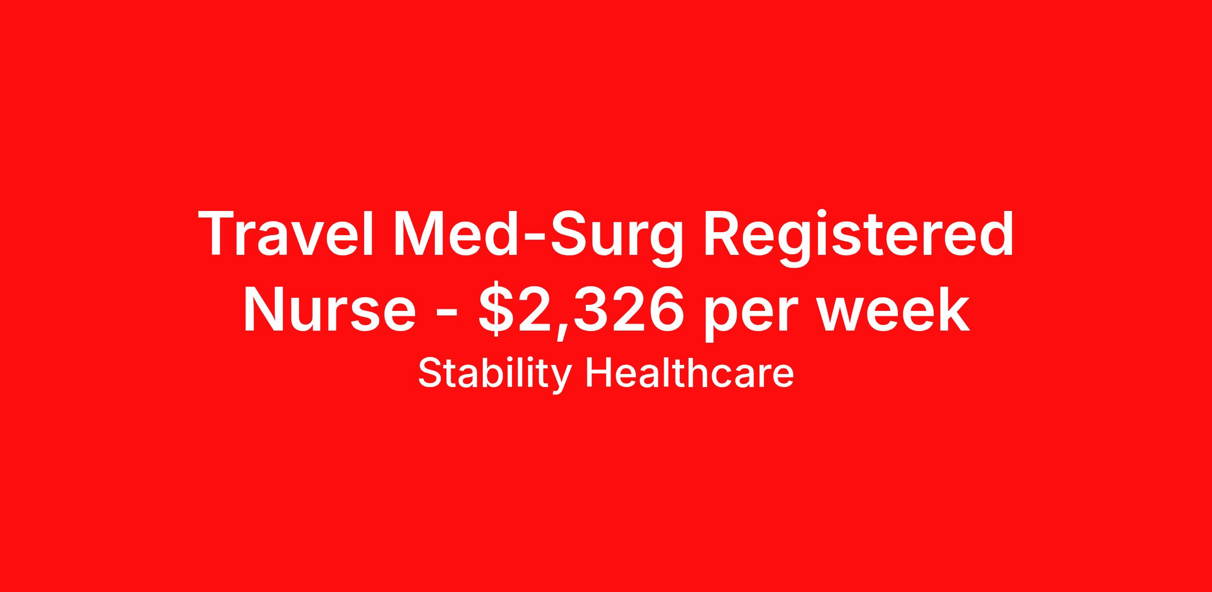 Stability Healthcare is seeking a travel nurse RN Med Surg for a travel nursing job in Lebanon, New Hampshire. Job Description & Requirements Specialty: Med Surg Discipline: RN Start Date: 04/13/2026 Duration: 13 weeks 36 hours per week Shift: 12 hours, nights Employment Type: Travel Stability Healthcare is looking for a Med-Surg RN contract position in Lebanon, NH. The majority of hospitalized patients are admitted to M/S either directly or after surgery. M/S is also where patients who have been in critical care (ICU) are transferred when they no longer need critical care but still require nursing care. *$600 travel bonus *Day 1 health insurance with United Healthcare *PTO plan start accruing on day 1, use during contract or cash out at the end! *Guaranteed stipend if facility calls you off *Extra hour bonus earn an additional hourly bonus for working over your weekly contracted hours Stability Job ID 821198. Pay package is based on 12 hour shifts and 36 hours per week (subject to confirmation) with tax-free stipend amount to be determined. Posted job title: Med-Surg About Stability Healthcare Stability Healthcare was founded in 2009, with the mission of becoming the best Travel Nursing Agency in California. We have been rated one of the top travel nursing agencies and offer our nurses the highest paying travel nursing jobs available. We have access to the best travel assignments from 1000’s of facilities. You can start the year off in sunny California, spend the Spring in the Colorado Rockies, enjoy the Summer in the Mid-West, experience the change of seasons in Boston and New York, and hit the beaches of Florida in the winter. Our Nurses work in the best hospitals and health systems in the country. Benefits Guaranteed Hours Benefits start day 1