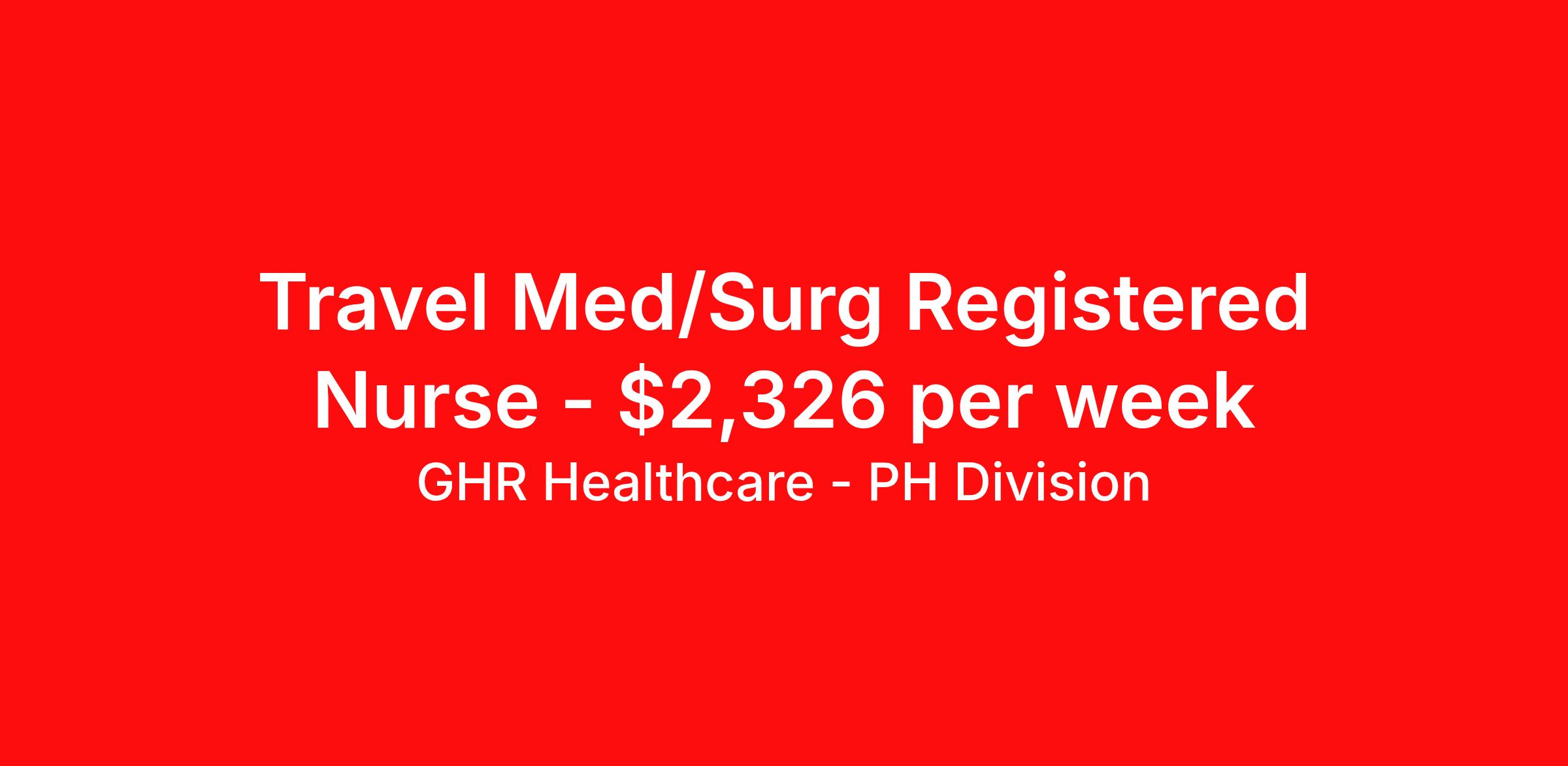 GHR Healthcare - PH Division is seeking a travel nurse RN Med Surg for a travel nursing job in Lebanon, New Hampshire. Job Description & Requirements Specialty: Med Surg Discipline: RN Start Date: 04/13/2026 Duration: 12 weeks 36 hours per week Shift: 12 hours Employment Type: Travel Planet Healthcare Job ID 75841912. Pay package is based on 12 hour shifts and 36 hours per week (subject to confirmation) with tax-free stipend amount to be determined. About GHR Healthcare - PH Division For over 30 years, GHR Healthcare has been the bridge between healthcare professionals and the facilities that need them nationwide. We're committed to uncovering your ideal fit, supported by GHR's dedication to competitive compensation, transparent communication, and a devoted team that genuinely cares about your career journey. You can trust us to stand by your side as your advocate, confidante, and partner in advancing your career. At GHR, care and consideration are at the heart of everything we do. Visit ghrhealthcare.com to learn more.