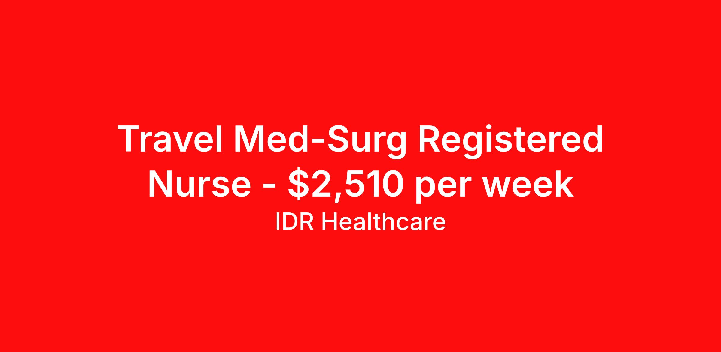 IDR Healthcare is seeking a travel nurse RN Med Surg for a travel nursing job in Eagle River, Wisconsin. Job Description & Requirements Specialty: Med Surg Discipline: RN Start Date: 04/06/2026 Duration: 13 weeks 36 hours per week Shift: 12 hours, nights Employment Type: Travel IDR Healthcare is an awarding winning staffing firm that believes it is a privilege and awesome responsibility to serve those who selflessly care for others. Our mission is to empower healthcare professionals to achieve their fullest potential both personally and professionally while they create positive change within the healthcare community. We exercise true grit, tenacity, and authenticity while embracing and ownership mindset to go above and beyond providing healthcare professionals a world class experience. We are employee owned and our travelers and clinicians earn shares/equity by just completing multiple assignments! We have been named SIA’s Fastest Growing Staffing Firms and have won ClearlyRated® Best of Staffing for 11 consecutive years! This cements our commitment to clinician satisfaction earning top net promoter scores putting us in the top 2% of agencies in North America! TravelFarWithIDR and see what an extraordinary experience is all about! Benefits 2024 World Staffing Best Staffing Firms to Work For! ESOP (Equity) Healthcare Benefits for up to 30 days Between Assignments Comprehensive Health Insurance Dental and Vision Insurance Sign-On, Completion, & Referral Bonus Programs License and Certification Reimbursement Weekly Pay and Competitive Compensation Large Network of Clients and Job Opportunities 401k retirement plan Exclusive Assignments IDR Job ID 496810. Pay package is based on 12 hour shifts and 36 hours per week (subject to confirmation) with tax-free stipend amount to be determined. About IDR Healthcare IDR Healthcare is an awarding winning staffing firm that believes it is a privilege and awesome responsibility to serve those who selflessly care for others. Our mission is to empower healthcare professionals to achieve their fullest potential both personally and professionally while they create positive change within the healthcare community. We exercise true grit, tenacity, and authenticity while embracing and ownership mindset to go above and beyond providing healthcare professionals a world class experience. We are employee owned and our travelers and clinicians earn shares/equity by just completing multiple assignments! We have been named SIA’s Fastest Growing Staffing Firms and have won ClearlyRated® Best of Staffing for 11 consecutive years! This cements our commitment to clinician satisfaction earning top net promoter scores putting us in the top 2% of agencies in North America! Help us give back! For every booked assignment, proceeds are donated to St. Jude and Feeding America! Last year we raised over $18,000 for St. Jude and provided over 49,000 meals for children in need. TravelFarWithIDR and see what it is all about! Benefits Weekly pay 401k retirement plan Referral bonus Medical benefits Dental benefits License and certification reimbursement Vision benefits