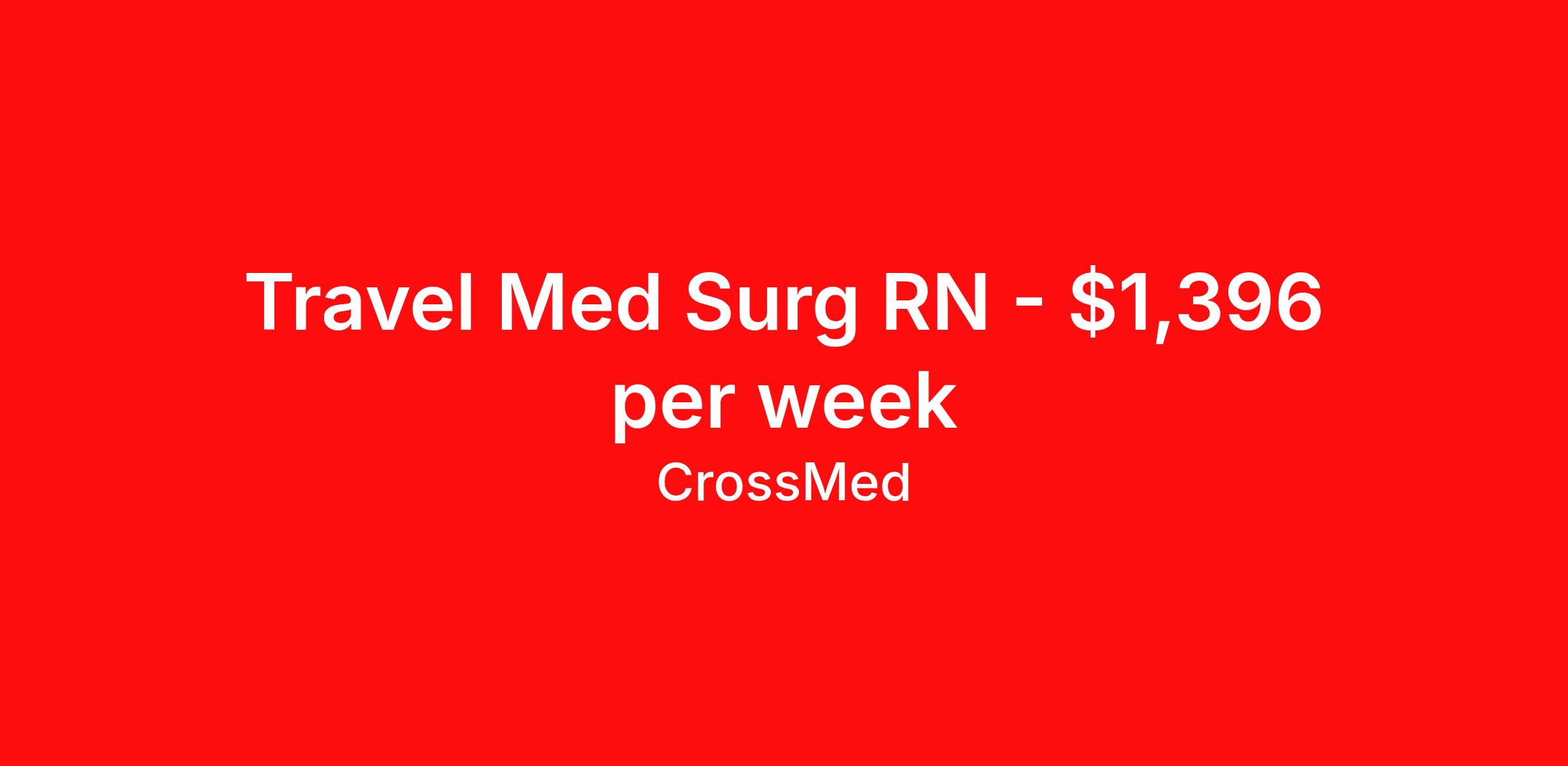 CrossMed is seeking a travel nurse RN Med Surg for a travel nursing job in Braintree, Massachusetts. Job Description & Requirements Specialty: Med Surg Discipline: RN Start Date: 04/06/2026 Duration: 13 weeks 36 hours per week Shift: 12 hours Employment Type: Travel Job Details Gross Weekly Pay: $1328.40 - $1395.72 Starts: 2026-04-06 Assignment Length: 9 Weeks Shift: Overnight shift. Hours Per Week: 36 Job Quantity: 1 Type: Travel City: Braintree State: MA At CrossMed Healthcare Staffing, we aim to create lasting impressions wherever we go. Embark on your healthcare traveler journey with us and discover the CrossMed advantage. We offer competitive pay packages, comprehensive benefits, an in-house clinical team, and dedicated recruiters committed to your success. Our goal is to become the preferred staffing provider by delivering top-notch customer service. Join us and experience the difference firsthand! Benefits: Competitive weekly pay Insurance (Health, Dental, Vision) Life Insurance 401(k) Referral Bonus Reimbursement for Licensure & CEU’s Refer-a-Friend Bonus Program EAP Program Qualifications: At minimum 1 - 2 years’ experience preferred Graduate from an accredited school Certifications may be required based on facility requirements Physical abilities – remain in a stationary position, move and lift equipment (50-100 lbs), pushing, bending and pulling Communication and collaborates with physicians and other health team members Provides and coordinates patient care with other health team members Monitors patients’ responses to interventions and reports outcomes Administers medications as ordered with appropriate documentation Monitor and evaluates patients before, during, and post procedure depending on unit Shares on-call responsibilities with a 30-minute response time if required Maintains cleanliness of rooms and adequate stock of supplies Transports patients as needed Performs other duties as assigned Required Skills: Interpersonal Skills – ability to work with diverse personnel (professional and support staff) while maintaining a positive demeanor and professional appearance. Technical Skills - the ability to grasp, push/pull, and move while assisting with procedures or operating departmental equipment. Cognitive Demands - capable of managing frequent interactions with the public and customers and meeting deadlines under pressure. Comfortable working under occasional close supervision or independently. Sensory Skills - keen visual understanding and practical communication abilities. CrossMed Job ID 678109. Pay package is based on 12 hour shifts and 36 hours per week (subject to confirmation) with tax-free stipend amount to be determined. Posted job title: Med Surg RN | Registered Nurse About CrossMed At CrossMed Healthcare Staffing, we aim to create lasting impressions wherever we go. Embark on your healthcare traveler journey with us and discover the CrossMed advantage. We offer competitive pay packages, comprehensive benefits, an in-house clinical team, and dedicated recruiters committed to your success. Our goal is to become the preferred staffing provider by delivering top-notch customer service. Join us and experience the difference firsthand! Benefits Weekly pay Holiday Pay Guaranteed Hours Continuing Education Company provided housing options Mileage reimbursement Referral bonus Medical benefits Dental benefits Vision benefits License and certification reimbursement Life insurance