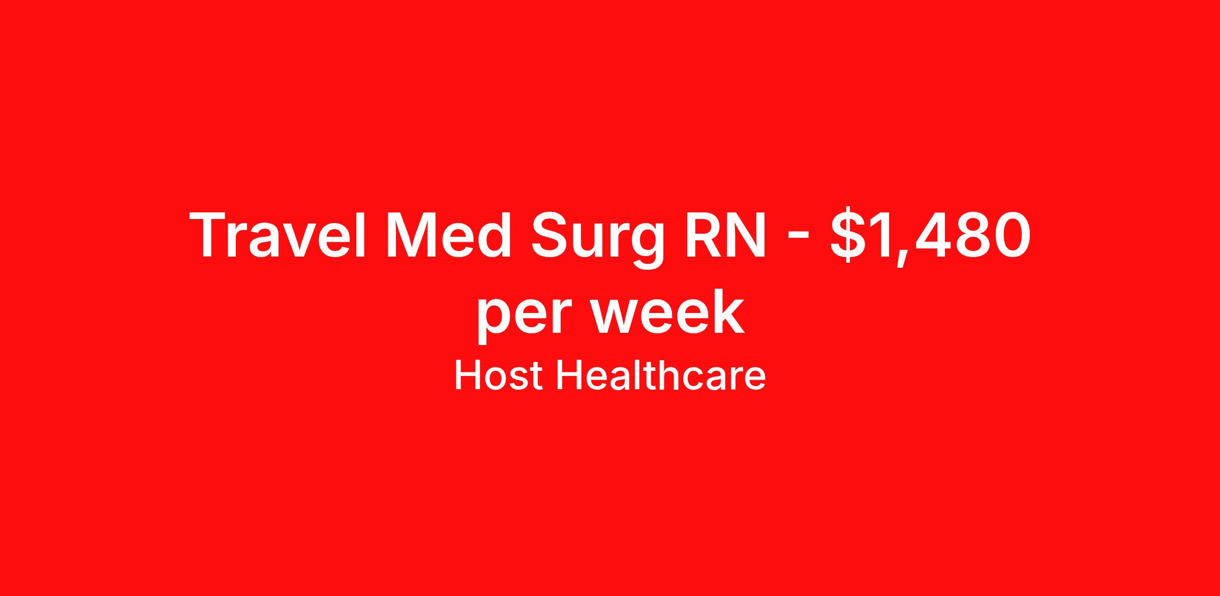 Host Healthcare is seeking a travel nurse RN Med Surg for a travel nursing job in Granbury, Texas. Job Description & Requirements Specialty: Med Surg Discipline: RN Start Date: 04/06/2026 Duration: 13 weeks 36 hours per week Shift: 12 hours, nights Employment Type: Travel Host Healthcare Job ID a1fVX000002nforYAA. Pay package is based on 12 hour shifts and 36 hours per week (subject to confirmation) with tax-free stipend amount to be determined. Posted job title: RN - Medical-Surgical About Host Healthcare At Host Healthcare, we provide a truly comfortable experience as you explore your travel nursing, therapy, or allied career. We make your travel healthcare journey easy by taking care of all the details, so you don’t have to. We are on a mission to help others live better and we do this by helping the healers of the world be as comfortable as possible. With access to tens of thousands of travel nursing, therapy, and allied jobs in all 50 states, our responsive and friendly recruiters find your dream position based on what’s important to you. During your assignment, get access to premium benefits, including Day 1 medical that continues up to 30 days between assignments, 401K matching, travel reimbursements, dedicated housing support, and more. We also offer 24/7 support from our team and access to our on-staff clinicians so you can feel comfortable and confident throughout your entire assignment. Travel comfortably with Host Healthcare. Benefits Referral bonus School loan reimbursement Vision benefits Wellness and fitness programs Company provided housing options License and certification reimbursement Life insurance Medical benefits Mileage reimbursement Pet insurance Discount program Employee assistance programs Guaranteed Hours Health savings account Holiday Pay 401k retirement plan Continuing Education Dental benefits