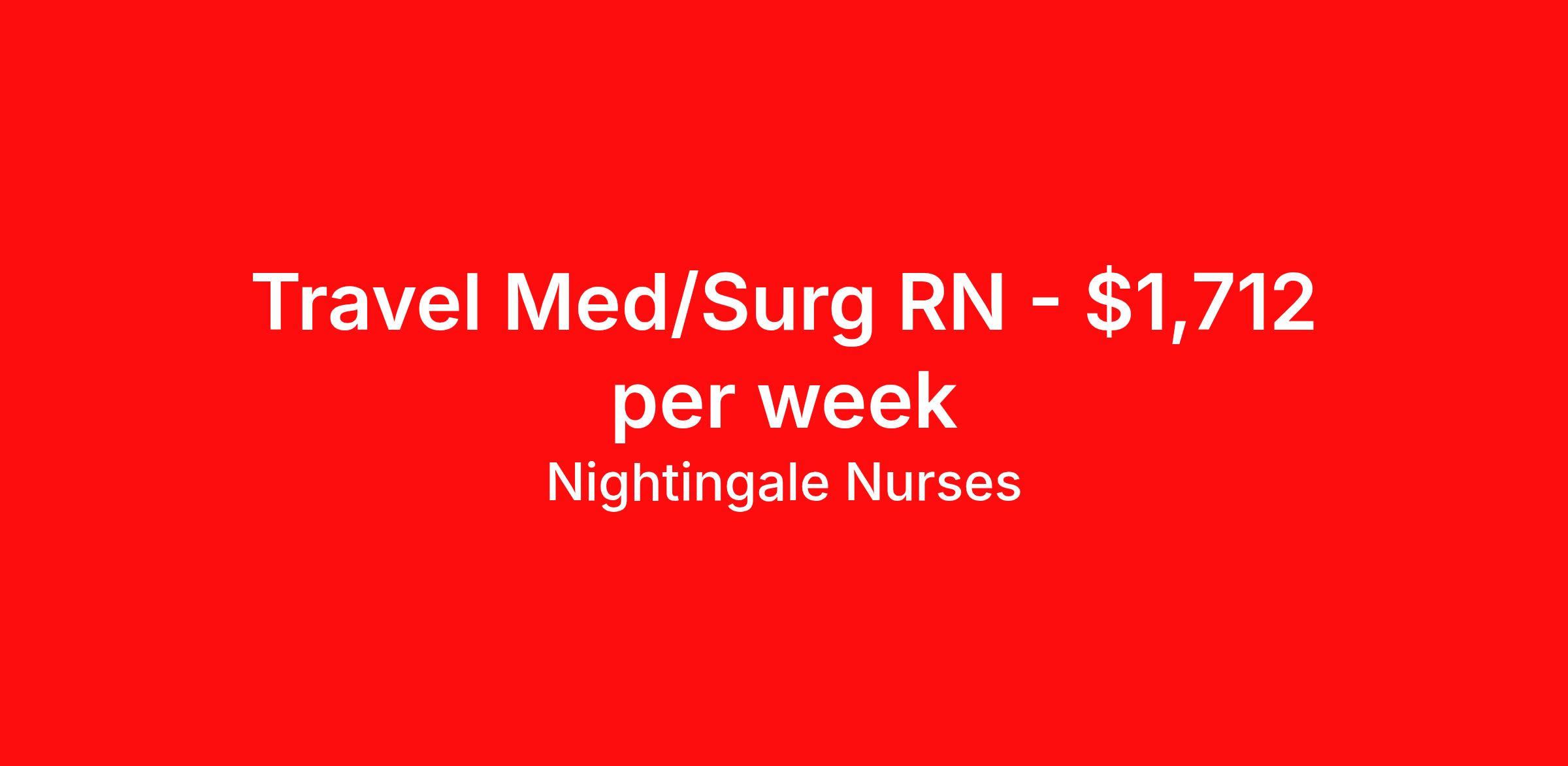 Nightingale Nurses is seeking a travel nurse RN Med Surg for a travel nursing job in Birmingham, Alabama. Job Description & Requirements Specialty: Med Surg Discipline: RN Start Date: 04/06/2026 Duration: 13 weeks 36 hours per week Shift: 9 hours, nights Employment Type: Travel About Nightingale Nurses the first name in travel nursing You may not realize it, but as an RN with real world hospital experience, you are legendary. To the lives you’ve helped save, the patients you’ve cared for, and to the hospitals where you’ve done it. And you’re just getting started. Legendary is where Nightingale begins. We’re the first name in travel nursing, representing only the very best RNs. That’s why hospitals prefer us, allowing us to offer exceptional travel nursing assignments all over the US, as well as the highest pay rates and most extensive benefits in the industry. Nightingale facilitates every aspect of your travel nursing assignment, so you can focus on doing what you do best. We want you to grow, explore, and enjoy unrivaled liberty, the freedom to nurse.