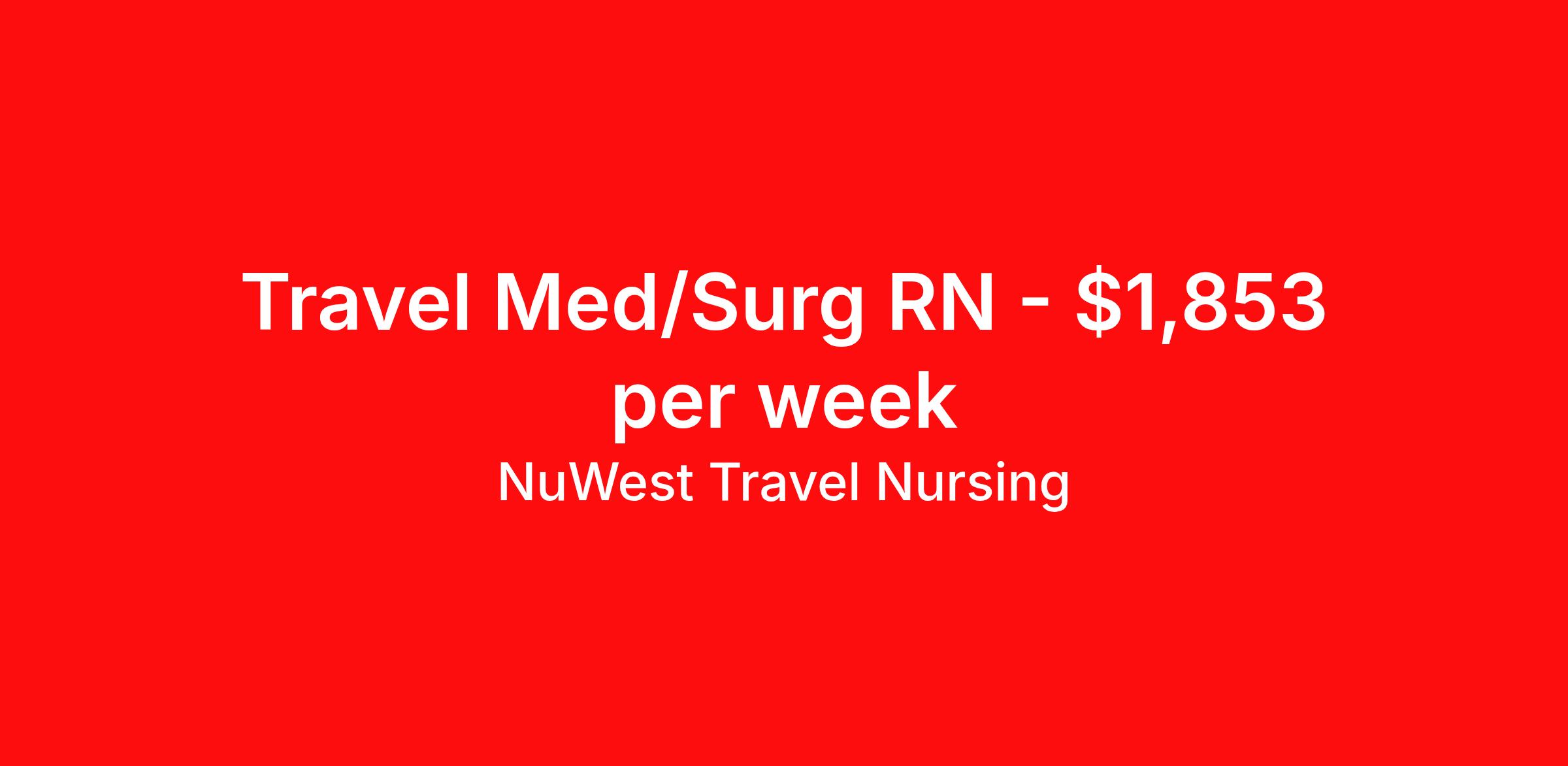 NuWest Travel Nursing is seeking a travel nurse RN Med Surg for a travel nursing job in Thiensville, Wisconsin. Job Description & Requirements Specialty: Med Surg Discipline: RN Duration: 13 weeks 36 hours per week Shift: 12 hours Employment Type: Travel We have a new assignment for RN - Med/Surg in Thiensville, WI and are interviewing ASAP. This is a travel assignment, 3x12 Nights position at a great facility. Pay Range: $1703.1 - $2003.65 Per Week Benefits include medical, dental, vision, 401K, weekly direct deposit, and more! NuWest Travel Nursing Job ID 269620. Pay package is based on 12 hour shifts and 36 hours per week (subject to confirmation) with tax-free stipend amount to be determined.