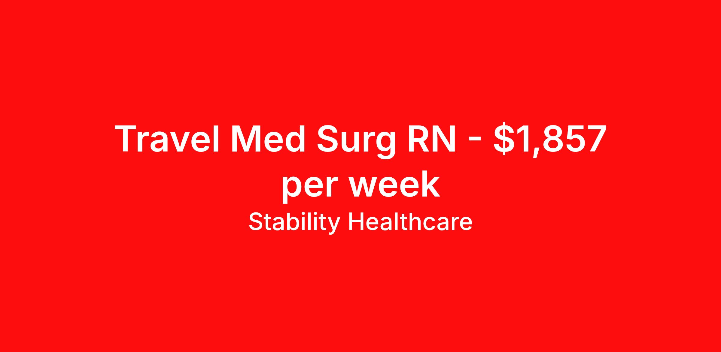 Stability Healthcare is seeking a travel nurse RN Med Surg / Telemetry for a travel nursing job in Wilkes-Barre, Pennsylvania. Job Description & Requirements Specialty: Med Surg / Telemetry Discipline: RN Duration: 13 weeks 36 hours per week Shift: 12 hours, days Employment Type: Travel Stability Healthcare is looking for a Tele Med-Surg RN contract position in Wilkes-Barre, PA. The Medical Surgical Telemetry Registered Nurse (RN) provides direct nursing care in accordance with established policies, procedures and protocols of the healthcare organization often specializing in Neuro, Ortho or Cardiac patients. *$600 travel bonus *Day 1 health insurance with United Healthcare *PTO plan start accruing on day 1, use during contract or cash out at the end! *Guaranteed stipend if facility calls you off *Extra hour bonus earn an additional hourly bonus for working over your weekly contracted hours Stability Job ID 818803. Pay package is based on 12 hour shifts and 36 hours per week (subject to confirmation) with tax-free stipend amount to be determined. Posted job title: Tele Med-Surg About Stability Healthcare Stability Healthcare was founded in 2009, with the mission of becoming the best Travel Nursing Agency in California. We have been rated one of the top travel nursing agencies and offer our nurses the highest paying travel nursing jobs available. We have access to the best travel assignments from 1000’s of facilities. You can start the year off in sunny California, spend the Spring in the Colorado Rockies, enjoy the Summer in the Mid-West, experience the change of seasons in Boston and New York, and hit the beaches of Florida in the winter. Our Nurses work in the best hospitals and health systems in the country. Benefits Guaranteed Hours Benefits start day 1