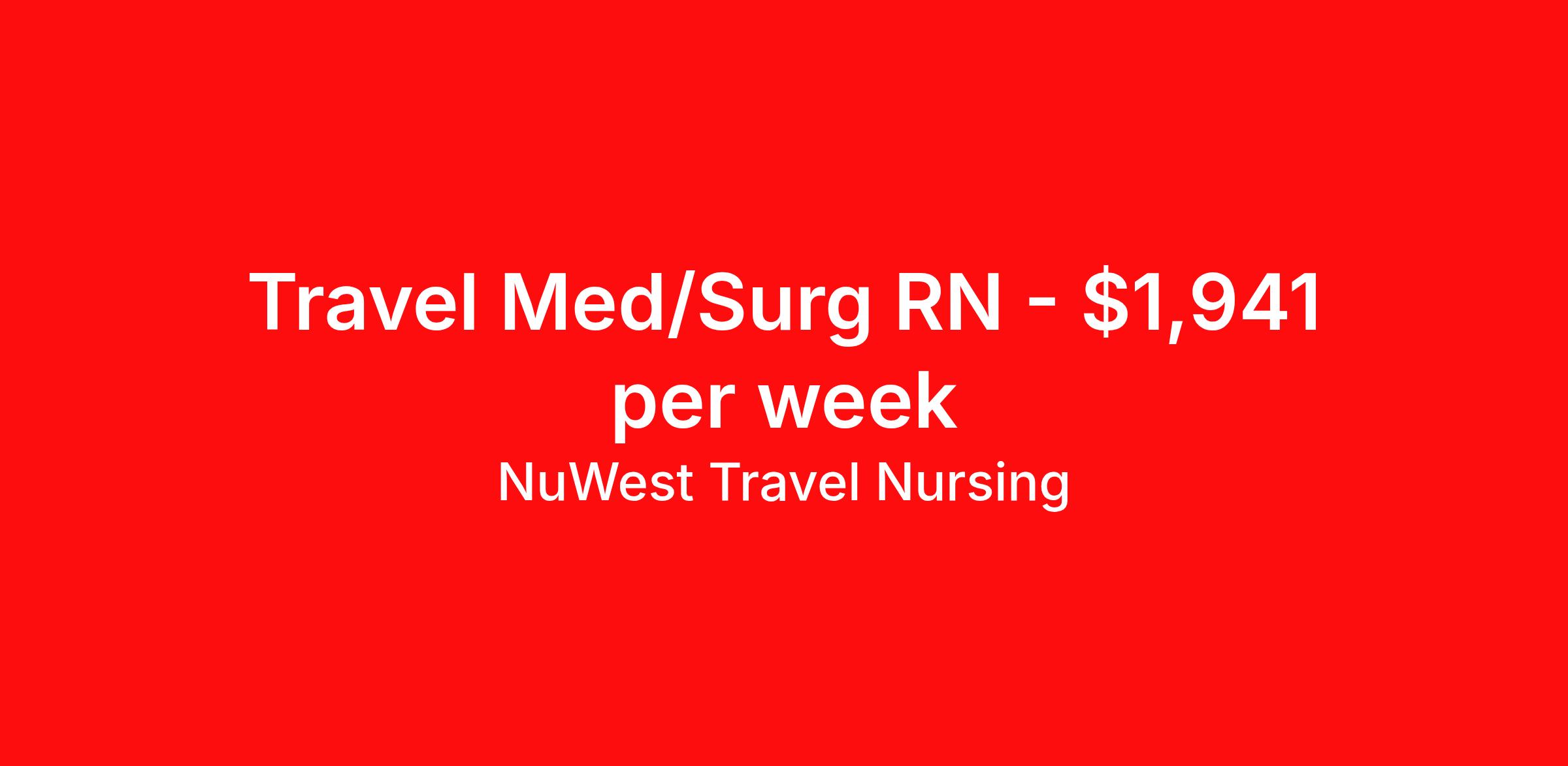 NuWest Travel Nursing is seeking a travel nurse RN Med Surg for a travel nursing job in Evansville, Indiana. Job Description & Requirements Specialty: Med Surg Discipline: RN Duration: 13 weeks 36 hours per week Shift: 12 hours Employment Type: Travel We have a new assignment for RN - Med/Surg in Evansville, IN and are interviewing ASAP. This is a travel assignment, 3x12 Nights position at a great facility. Pay Range: $1783.25 - $2097.94 Per Week Benefits include medical, dental, vision, 401K, weekly direct deposit, and more! NuWest Travel Nursing Job ID 268473. Pay package is based on 12 hour shifts and 36 hours per week (subject to confirmation) with tax-free stipend amount to be determined.