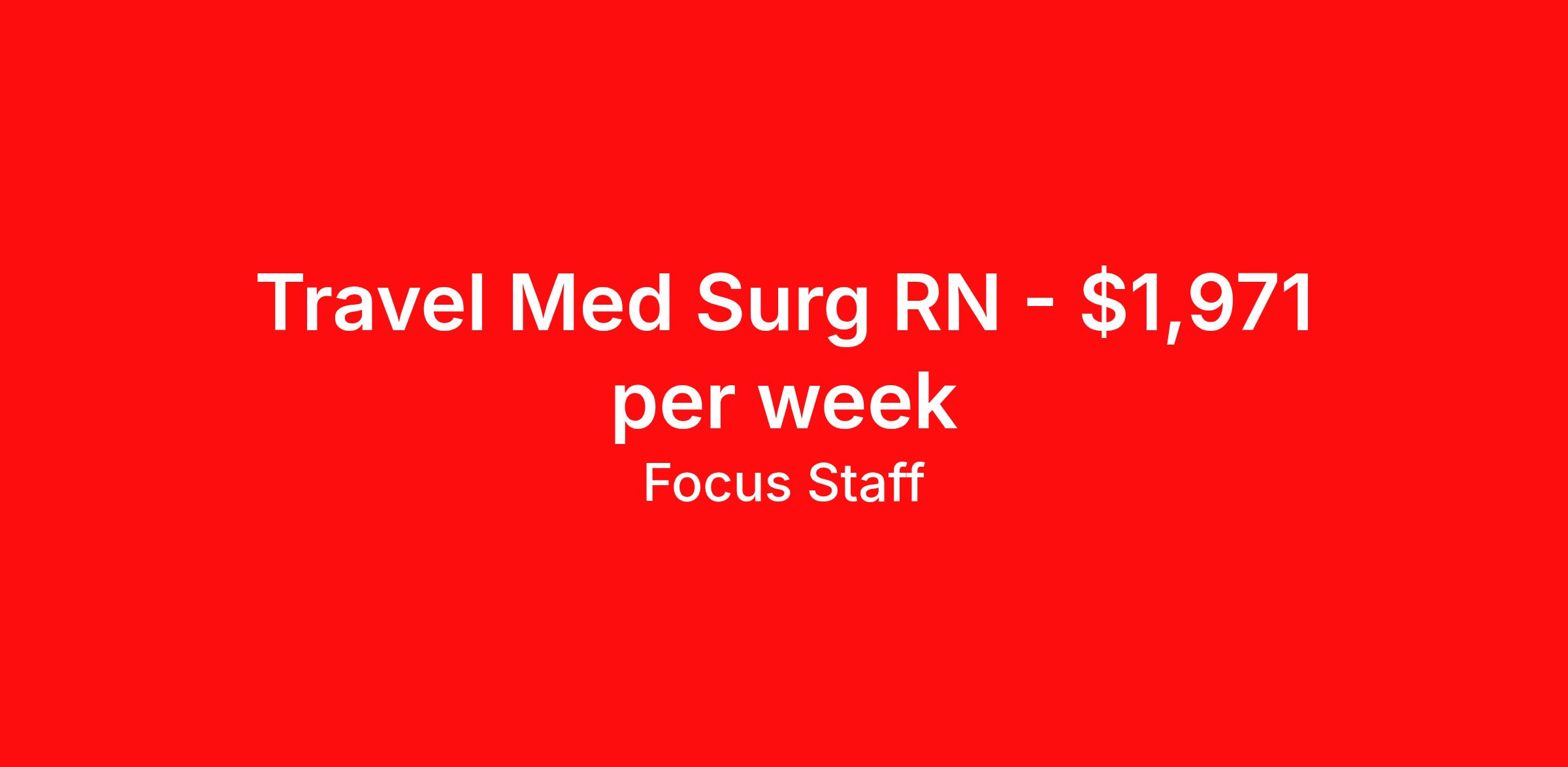 Focus Staff is seeking a travel nurse RN Med Surg / Telemetry for a travel nursing job in Sierra Vista, Arizona. Job Description & Requirements Specialty: Med Surg / Telemetry Discipline: RN Start Date: 05/18/2026 Duration: 13 weeks 36 hours per week Shift: 12 hours, days Employment Type: Travel Want to be a crucial part of the care continuum? Join the Focus Staff team as a travel Medical/Surgical Nurse (Med/Surg RN) for a rewarding travel contract in Sierra Vista, AZ. Your daily work will directly contribute to optimal patient outcomes by providing meticulous care and compassionate support to individuals on their path to wellness. Contract Length: 13 Weeks Start Date: 05/18/2026 Shift: 3x12 Days Ready to advance your career while seeing the country? Focus Staff provides the benefits and support you need to thrive on every assignment: Comprehensive Benefits : Get paid fast with weekly direct deposits and save for your future with our 401(k) matching and generous bonuses. Instant Peace of Mind : We provide immediate protection with day one medical, dental, vision, and life insurance and no waiting period. Travel with Confidence : Our team handles the details. We offer licensure reimbursement, relocation support, and exclusive discounts to make your next move effortless. Tailored to You : A dedicated recruiter is always available to provide 24/7 support and flexible scheduling options, including pet-friendly housing. Med/Surg RN Requirements: Minimum of 1-2 years of experience Valid AZ RN License Current Basic Life Support (BLS) and Advanced Cardiac Life Support (ACLS) certification Must be eligible to work in the United States About Focus Staff: Focus Staff is a traveler-first healthcare staffing agency connecting talented travel nurses and allied health professionals with top assignments nationwide, prioritizing your unique needs and giving you complete control over your journey. Our mission is to help you create the life you love while exploring the country, advancing your healthcare career with competitive pay, and doing what you do best, providing exceptional patient care that makes a difference. Interested in becoming a traveler with Focus Staff? Discover why travelers choose us, apply today! Other Information: Job Title: Travel Med/Surg Nurse RN Employment Time: Contract/Travel Date Posted: 04/21/2026 04:22:18 PM Valid Through: 08/17/2026 Job City: Sierra Vista Job State: AZ Job Country: USA Shift: 3x12 Days Job ID: Hiring Organization: Focus Staff Focus Staff is an EEO/AA (Equal Employment Opportunity and Affirmative Action) Employer. *Estimated pay package based on bill rate at time job was posted. Bill rates can change frequently and without notice. Exact pay package may vary based on several factors, including, but not limited to, guaranteed hours, travel distance, demand, experience, etc. Focus Staff Job ID a0xVt00000LsN6nIAF. Pay package is based on 12 hour shifts and 36 hours per week (subject to confirmation) with tax-free stipend amount to be determined. Posted job title: Travel M/S RN - Med/Surg Registered Nurse About Focus Staff Your Journey, Our Focus. Travel Confidently, Care Boldly with Focus Staff. At Focus Staff, we’re here to make your travel healthcare career rewarding, seamless, and stress-free. Whether you’re a travel nurse, therapist, or allied health professional, we take care of the details so you can focus on what you do best — caring for others. Our mission is simple: to help healthcare heroes like you thrive, no matter where your journey takes you. With thousands of job opportunities across all 50 states, our dedicated recruiters work closely with you to match you to the right assignment, based on what matters most to you — pay, location, benefits, or career growth. From day one, you’ll enjoy premium benefits like medical coverage that bridges between assignments, 401K matching, travel and licensing reimbursements, and personalized housing support. Plus, our team is here for you 24/7, with clinical support available whenever you need guidance or backup. At Focus Staff, we believe in making every assignment a smooth, comfortable, and empowering experience. Let’s make your next adventure your best one yet.