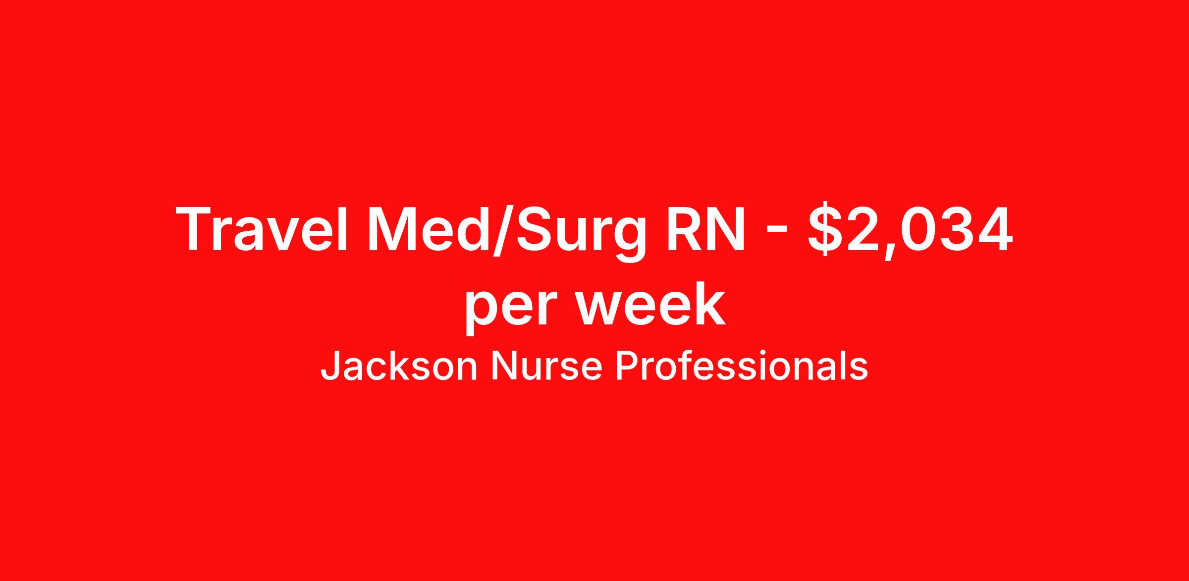 Jackson Nurse Professionals is seeking a travel nurse RN Med Surg for a travel nursing job in Gardner, Massachusetts. Job Description & Requirements Specialty: Med Surg Discipline: RN Start Date: ASAP Duration: 13 weeks 40 hours per week Shift: 8 hours, evenings Employment Type: Travel At Jackson Nurse Professionals , we are dedicated to supporting travel nurses and helping you build a fulfilling nursing career. Whether you’re looking for your first or next travel nursing assignment, we specialize in connecting healthcare professionals with leading medical facilities. With a focus on personalized service and a wide range of opportunities, we make it easier than ever for nurses to find the right balance of adventure and professional growth. Qualifications: 2 years of recent experience in area of specialty listed on job Current BLS required (certifications vary by location – job may require ACLS) Valid license and/or certification in state of practice Valid Driver's License Background and drug screen Benefits: Full Medical, Dental and Vision Insurance 401(k) with Employer Match 24/7/365 Support from your Recruiter available by text, phone, or email Referral Bonus Program: Give $200, Get $500 for every referral Same Day Immediate Pay Access Certification & Licensure Reimbursement Apply today to experience the Jackson Nurse Professionals difference! Jackson Nurse Professionals Job ID 2506217. Pay package is based on 8 hour shifts and 40 hours per week (subject to confirmation) with tax-free stipend amount to be determined. About Jackson Nurse Professionals Filling critical needs in patient care, Jackson Nurse Professionals delivers cost-effective travel nurse staffing solutions to over 500 hospitals, outpatient clinics, and home health clients nationwide. Awarded Best of Staffing - Talent and Client 2024, and rated as a Top Workplace 2023 by the Orlando Sentinel, Jackson Nurse Professionals goes the extra mile to provide travel nurses the career they deserve, while providing clients with a large range of highly skilled nurses to fill short, long-term, and temporary assignments. As a member of Jackson Healthcare’s family of award-winning staffing companies, we’re part of a growing community that’s impacting 10 million patients nationwide. Join our mission to improve the delivery of patient care, and the lives of everyone we touch.