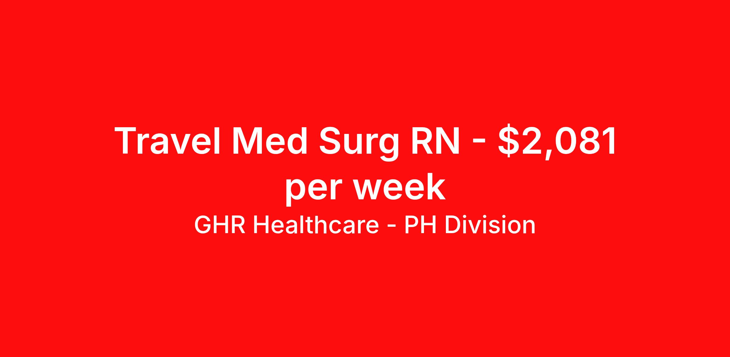 GHR Healthcare - PH Division is seeking a travel nurse RN Med Surg for a travel nursing job in Kirksville, Missouri. Job Description & Requirements Specialty: Med Surg Discipline: RN Start Date: ASAP Duration: 13 weeks 36 hours per week Shift: 12 hours Employment Type: Travel Travel Med/Surg RN – Night Shift | 13-Week Travel Nursing Contract – Kirksville, MO Travel Med/Surg RN (Night Shift) — 13-week travel nursing contract in Kirksville, MO (63501). Join a supportive hospital team as a Travel RN providing adult Med/Surg care in a friendly college town while earning competitive weekly pay. Job Details Position: Med/Surg Registered Nurse (Travel RN) Location: Kirksville, MO 63501 — travel nursing job in northeast Missouri Contract Length: 13 weeks (10/20/2025 – 01/19/2026) Shift: Nights, 12-hour shifts (6:00 PM – 6:30 AM); weekends required Hours per Week: 36 Estimated Weekly Pay: $1910 – $2010 Unit: Adult Med/Surg (21 beds) Patient Ratios: 1:5–7 (varies by acuity) EMR: MedHost Scrub Color: Any dark solid color Auto-offer: No interview required Job Requirements / Qualifications Active RN license (state requirements apply) — acceptable for travel nursing assignments Minimum 1 year of recent Med/Surg RN experience (adult medical/surgical hospital setting) Required certifications: ACLS, BLS, PALS, NIHSS Ability to float occasionally to assist in critical care with low-acuity patients Strong clinical assessment, prioritization, and communication skills — experience with admissions, discharges, and patient throughput a plus Responsibilities Provide safe, evidence-based nursing care to adult Med/Surg patients as a bedside Med/Surg RN Perform focused assessments, monitor patient status, and respond to clinical changes on night shift Administer medications, manage IV therapy, and coordinate diagnostic testing Document care accurately and timely in MedHost EMR Collaborate with physicians and interdisciplinary teams to develop and update patient care plans Support night operations including admissions, discharges, and improving patient flow Float as needed to assist with low-acuity patients in critical care areas Educate patients and families on diagnoses, medications, and discharge planning Why Kirksville and this Travel Nursing Job? Kirksville, located in northeast Missouri, offers small-town charm, local parks, cultural events, and a welcoming community—ideal for travel nurses seeking professional growth and quality of life. This Med/Surg RN night shift contract is a great opportunity for travel RNs looking for Missouri nursing jobs and short-term travel nursing assignments. Ready to take the next step? Apply now to join our healthcare team today and advance your travel nursing career as a Med/Surg RN in Kirksville, MO! Benefits 401K with Matching, Healthcare, Dental and Vision Equal Opportunity We are an equal opportunity employer and value diversity across our organization. We do not discriminate on the basis of race, religion, color, national origin, gender, sexual orientation, age, marital status, veteran status, or disability status. Planet Healthcare Job ID 460735. Pay package is based on 12 hour shifts and 36 hours per week (subject to confirmation) with tax-free stipend amount to be determined. Posted job title: Med/Surg About GHR Healthcare - PH Division For over 30 years, GHR Healthcare has been the bridge between healthcare professionals and the facilities that need them nationwide. We're committed to uncovering your ideal fit, supported by GHR's dedication to competitive compensation, transparent communication, and a devoted team that genuinely cares about your career journey. You can trust us to stand by your side as your advocate, confidante, and partner in advancing your career. At GHR, care and consideration are at the heart of everything we do. Visit ghrhealthcare.com to learn more.