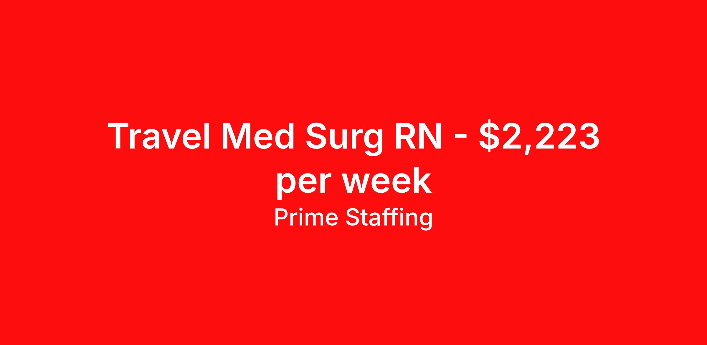 Prime Staffing is seeking a travel nurse RN Med Surg for a travel nursing job in Syracuse, New York. Job Description & Requirements Specialty: Med Surg Discipline: RN Start Date: 03/30/2026 Duration: 16 weeks 36 hours per week Shift: 12 hours Employment Type: Travel Prime Staffing Job ID 35938442. Pay package is based on 12 hour shifts and 36.0 hours per week (subject to confirmation) with tax-free stipend amount to be determined. Posted job title: RN:Med Surg,19:00:00-07:30:00 About Prime Staffing At Prime Staffing, we understand the importance of finding the perfect fit for both our clients and candidates. Prime Staffing utilizes a unique matchmaking approach, providing the most qualified contingent staffing to our clients, and the most competitive contracts to our workforce. Our experienced team takes the time to get to know both our clients and candidates, their needs, and preferences, to ensure that each placement is a success. We offer a wide range of staffing services including temporary, temp-to-perm, and direct hire placements. Our extensive network of qualified candidates includes nurses, allied healthcare professionals, corporate support professionals and executives.