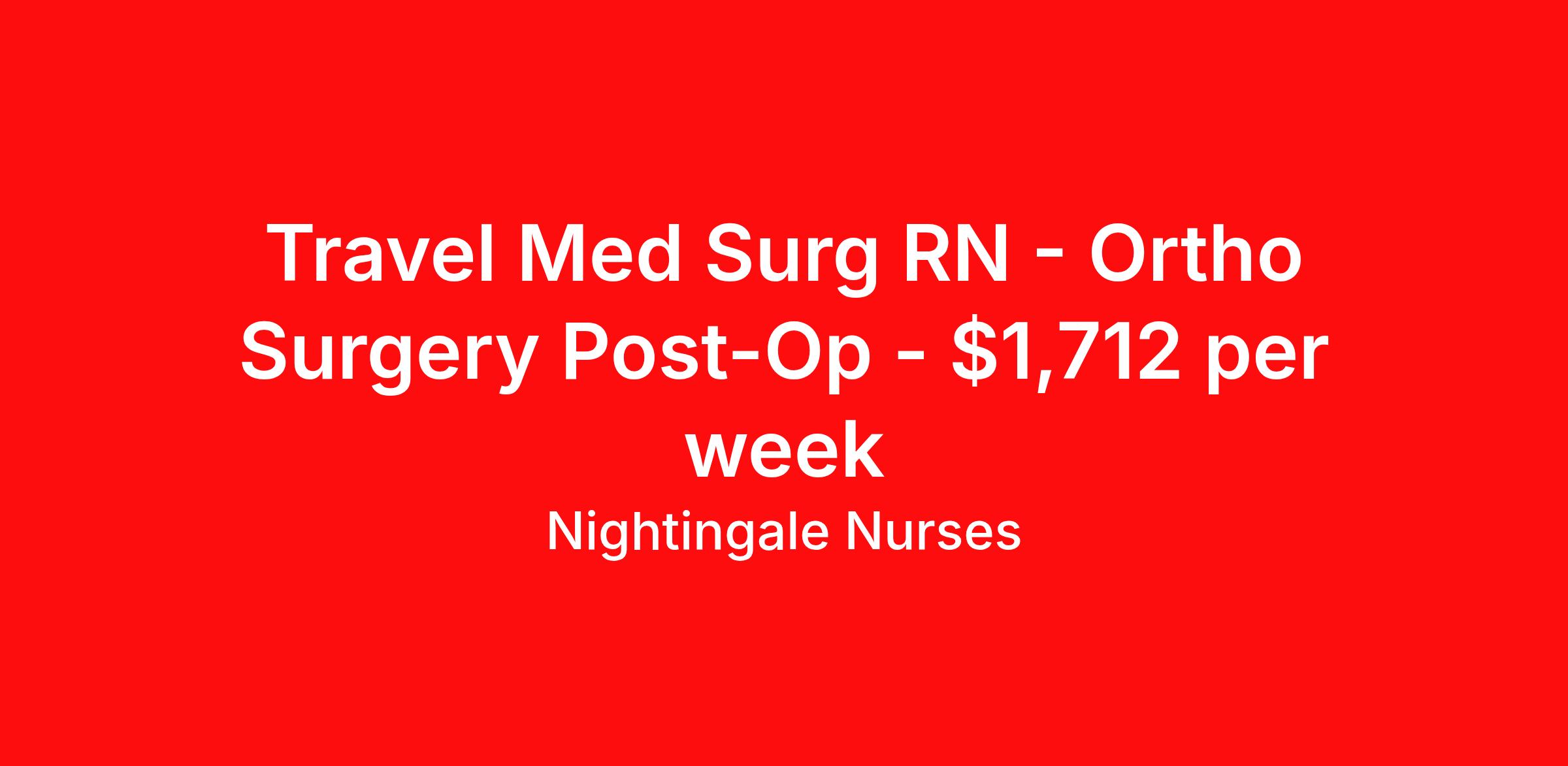Nightingale Nurses is seeking a travel nurse RN Med Surg for a travel nursing job in Birmingham, Alabama. Job Description & Requirements Specialty: Med Surg Discipline: RN Start Date: 04/27/2026 Duration: 13 weeks 36 hours per week Shift: 12 hours, days Employment Type: Travel About Nightingale Nurses the first name in travel nursing You may not realize it, but as an RN with real world hospital experience, you are legendary. To the lives you’ve helped save, the patients you’ve cared for, and to the hospitals where you’ve done it. And you’re just getting started. Legendary is where Nightingale begins. We’re the first name in travel nursing, representing only the very best RNs. That’s why hospitals prefer us, allowing us to offer exceptional travel nursing assignments all over the US, as well as the highest pay rates and most extensive benefits in the industry. Nightingale facilitates every aspect of your travel nursing assignment, so you can focus on doing what you do best. We want you to grow, explore, and enjoy unrivaled liberty, the freedom to nurse.