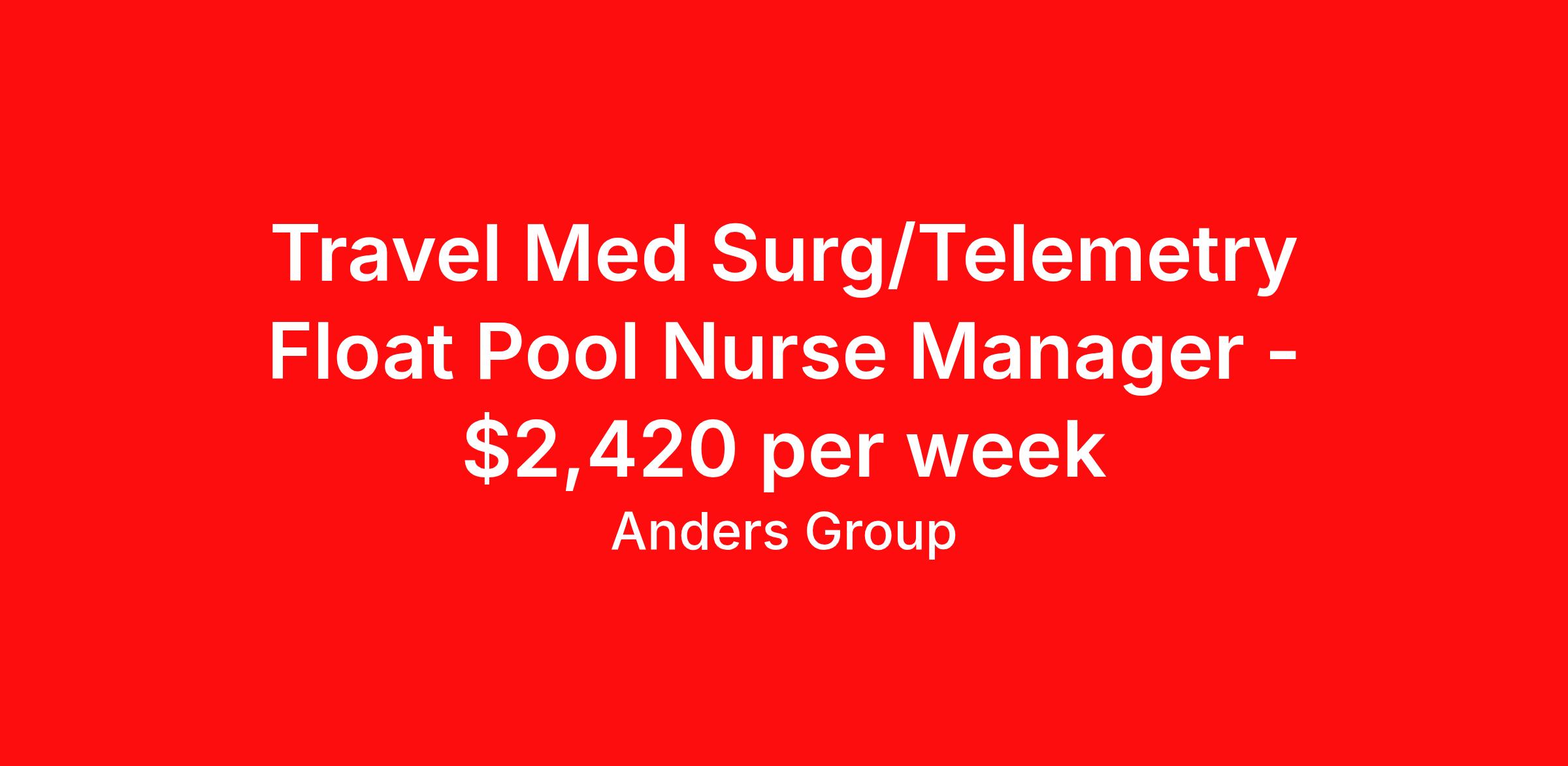 Travel Med Surg/Telemetry Float Pool Nurse Manager - $2,420 per week