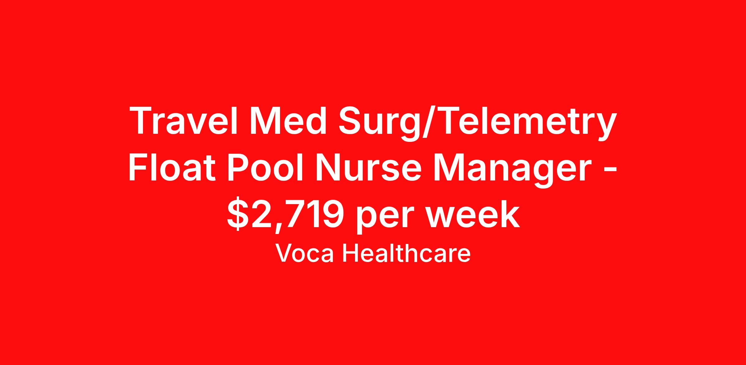 Travel Med Surg/Telemetry Float Pool Nurse Manager - $2,719 per week