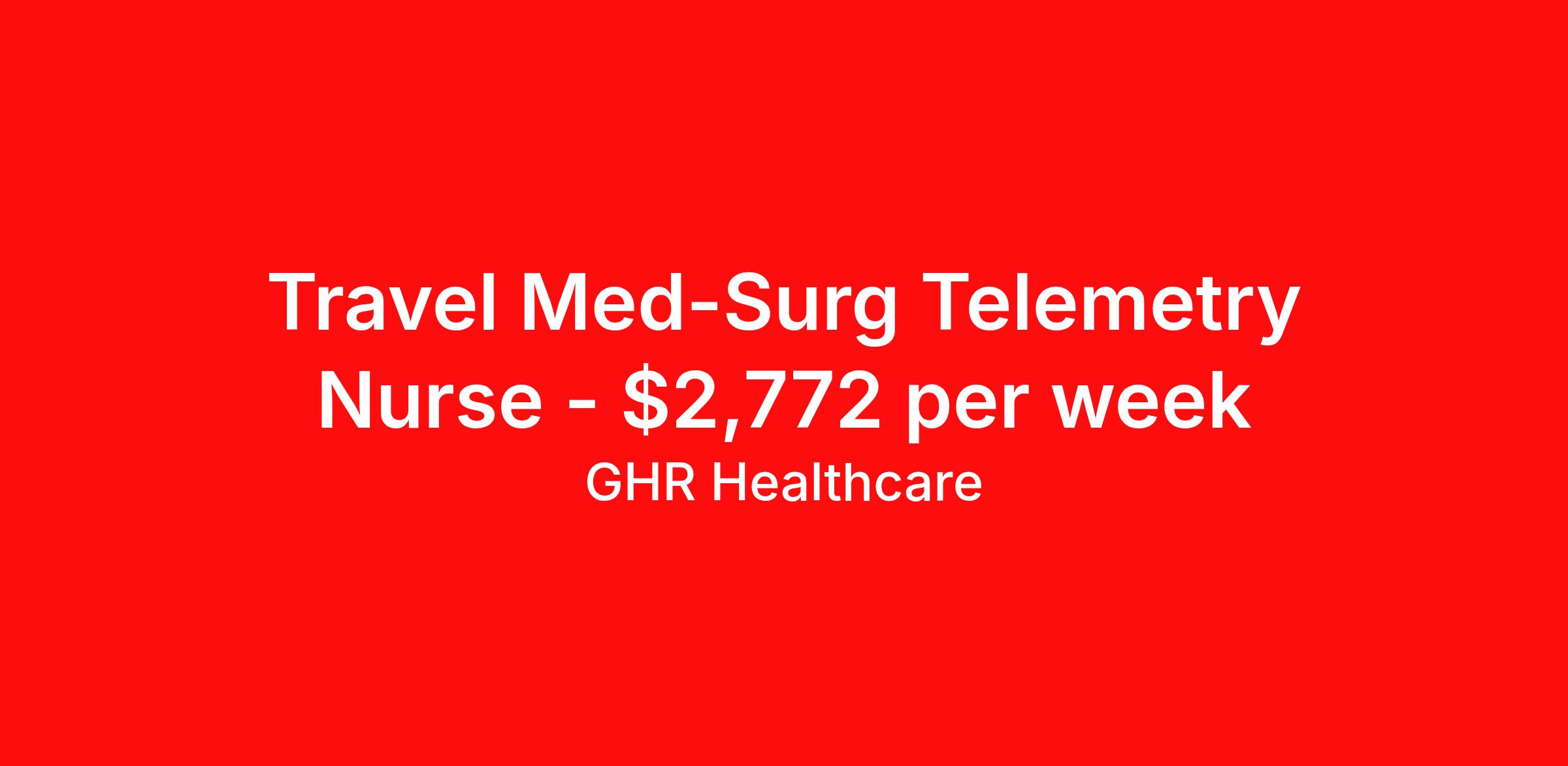 GHR Healthcare is seeking a travel nurse RN Med Surg / Telemetry for a travel nursing job in Burlington, Massachusetts. Job Description & Requirements Specialty: Med Surg / Telemetry Discipline: RN Start Date: ASAP Duration: 13 weeks 36 hours per week Shift: 12 hours Employment Type: Travel GHR Healthcare Job ID 73850195. Pay package is based on 12 hour shifts and 36 hours per week (subject to confirmation) with tax-free stipend amount to be determined. About GHR Healthcare For over 30 years, GHR Healthcare has been the bridge between healthcare professionals and the facilities that need them nationwide. We're committed to uncovering your ideal fit, supported by GHR's dedication to competitive compensation, transparent communication, and a devoted team that genuinely cares about your career journey. You can trust us to stand by your side as your advocate, confidante, and partner in advancing your career. At GHR, care and consideration are at the heart of everything we do. Visit ghrhealthcare.com to learn more.