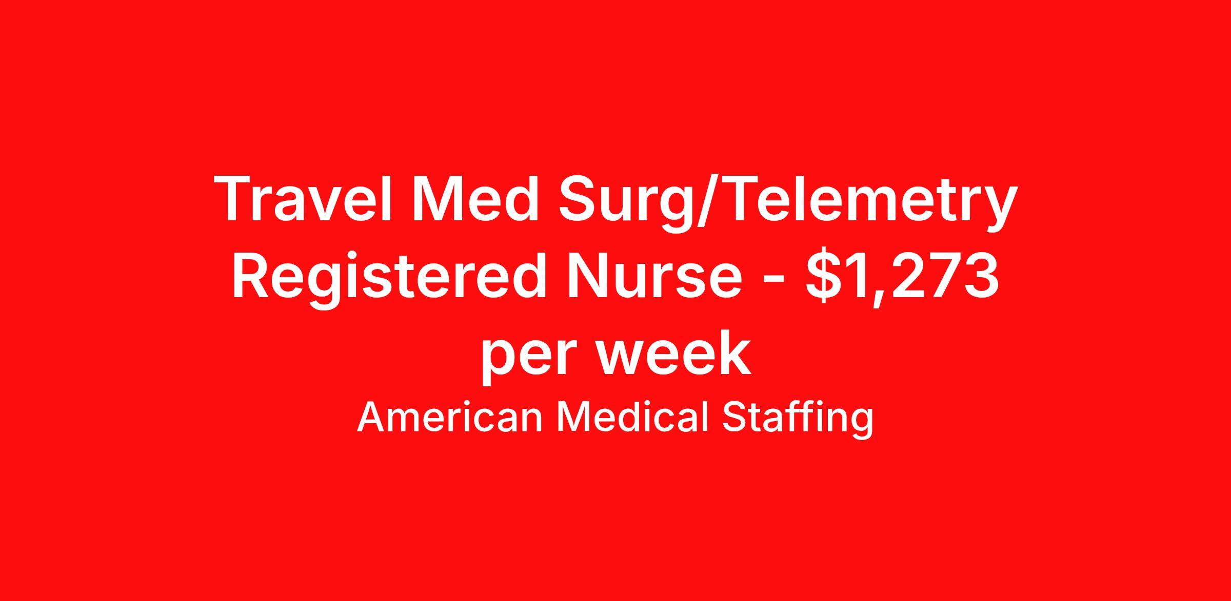 American Medical Staffing is seeking a travel nurse RN Med Surg / Telemetry for a travel nursing job in Titusville, Florida. Job Description & Requirements Specialty: Med Surg / Telemetry Discipline: RN Start Date: 04/21/2026 Duration: 13 weeks 36 hours per week Shift: 12 hours, days Employment Type: Travel We’re living in the new normal. Lives and careers look different today. So why shouldn’t you have a role that delivers excitement, fewer restrictions, and brings you closer to loved ones? At American Medical Staffing (AMS), we believe in supporting the pioneers who embody the sense of adventure each new placement brings and we’re looking for a RN: MedSurg/Tele for our Hospital contract assignment. Job Title : RN: MedSurg/Tele Location : Titusville, Florida Pay Range : Competitive, Negotiable, with Weekly Pay Schedule : 12-Hour Days, 07:00:00-19:00:00, 12.00-3 Contract Length : 13 Weeks Requirements : · 2 years of experience as a RN · Qualified applicants MUST have at least 2 years of experience in the MedSurg/Tele · Valid RN license · Be willing to obtain Florida licensure Why Choose American Medical Staffing? · Day-One Benefits : Medical, dental, and vision plans with no waiting period. · Wellness PTO : Build 1 or 2 weeks of paid time off into your contract. · Hotel Discounts : Save up to 60% on hotel bookings with access to 700,000 discounted properties. · Loyalty Program : Earn financial incentives automatically based on hours worked and assignment type. · Referral Program : $500 for you and $500 for each referral after 450 hours—no limits. · Working Advantage : Access exclusive discounts on retail, entertainment, and travel. · Scrub Discount : 20% off all scrubs through our customized AMS store. · Retirement Plans : 401(k) options to help you plan for the future. · Compliance & Credentialing Support : Let us handle the logistics so you can focus on patient care. Responsibilities · Deliver specialized care to patients across a variety of acute and subacute units. · Work closely with a multidisciplinary team of healthcare professionals to provide comprehensive and compassionate care. · Monitor patient conditions, administer treatments and document outcomes. · Advocate for the best possible patient experience while supporting recovery, safety, and continuity of care. Apply now to take the next step in your journey. American Medical Staffing is an Equal Employment Opportunity Employer and does not discriminate on the basis of race, color, religion, sex, national origin, sexual orientation, gender identity, disability, age, or any other non-merit factor. American Medical Staffing Job ID 107874. Pay package is based on 12 hour shifts and 36.0 hours per week (subject to confirmation) with tax-free stipend amount to be determined. Posted job title: RN:MedSurg/Tele,07:00:00-19:00:00 About American Medical Staffing American Medical Staffing is a staffing agency headquartered in Baltimore, MD. Our goal is to CREATE an extraordinary experience for our health care professionals. Our roots are nurse owned and operated so we know what clinicians want - lots of options, a smooth and informed placement process, competitive and accurate pay, great customer service and responsiveness to requests, and advocacy when there is an issue. When AMS was founded in 2001, we started our company with a mission to be a better agency than our competitors. We have always put a heavy emphasis into what is best for our employees, not necessarily just our clients or our company. You are not an expense as you may be to a hospital; you are an asset. We take employee advocacy seriously; you are not just a number to us. The end result is that you don`t work for us; we work for you. Since starting in Baltimore, MD, we continue to grow throughout the country. Check out our industry leading reviews on Google and Indeed to see how much our clinicians enjoy working with us! · Benefits: AMS offers an array of benefits for any employee working 30 hours or more! Those eligible employees who choose to participate will pay the premiums with deductions from their pre-tax earnings. We offer a complete benefits package including Health Insurance, 401K with up to 2% match, Life, Vision, and Dental. From health and wellness support, financial or legal needs, or help with life's everyday challenges, our Employee Assistance Program provides you with resources, services and discounts to help you manage your unique concerns and save time, energy and money. We also offer additional Employee Perks that you can enjoy as an AMS employee: Scrubin – Uniform Discounts Working Advantage – unlimited access to thousands of exclusive discounts and special offers nationwide for theme parks, shows, tours, attractions, sports, concerts, hotels, rental cars, retail gift cards, movie tickets and much more Hotel Engine - Save up to 60% when booking hotel rooms, with access to more than 700,000 deeply discounted hotels worldwide. Discounted Pet Insurance Wellness Program, including fitness, nutrition and financial wellness Betterhelp - 1 month of free therapy, followed by a discounted rate for our Healthcare Professionals and their family members. Win Win Referral Bonus - $500 for you, and $500 for them! Benefits 401k retirement plan Life insurance Medical benefits Dental benefits Vision benefits