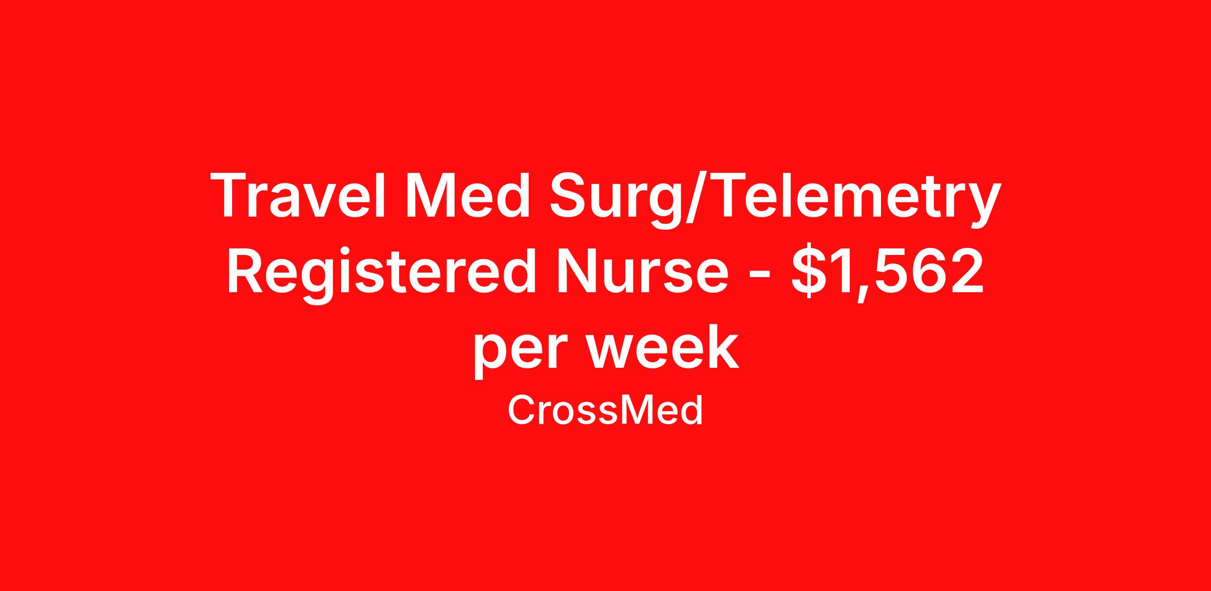 Travel Med Surg/Telemetry Registered Nurse - $1,562 per week