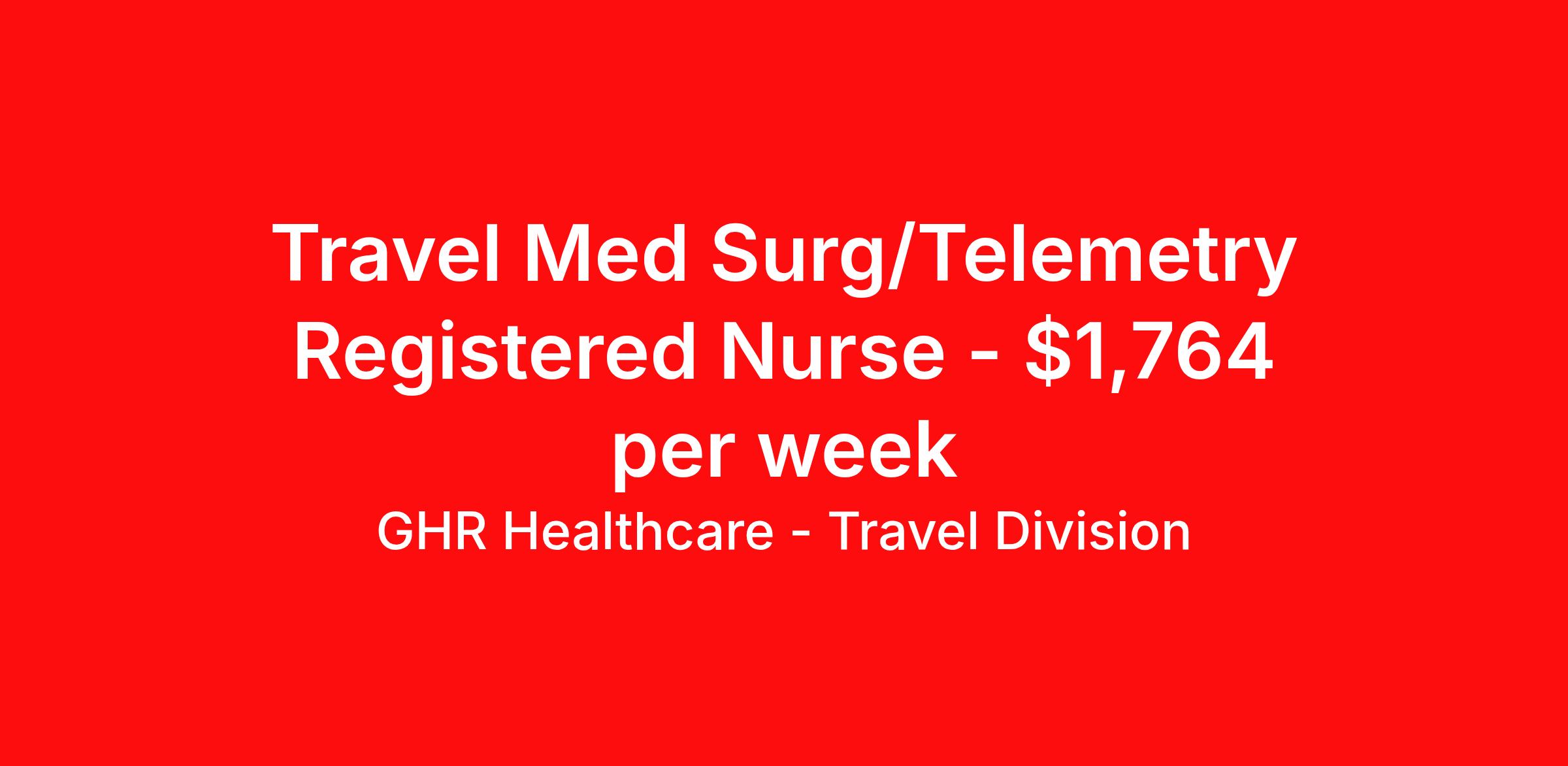 GHR Healthcare - Travel Division is seeking a travel nurse RN Med Surg / Telemetry for a travel nursing job in Albany, New York. Job Description & Requirements Specialty: Med Surg / Telemetry Discipline: RN Start Date: ASAP Duration: 13 weeks 36 hours per week Shift: 12 hours Employment Type: Travel GHR Healthcare - Travel Division Job ID 75855071. Pay package is based on 12 hour shifts and 36 hours per week (subject to confirmation) with tax-free stipend amount to be determined. About GHR Healthcare - Travel Division For over 30 years, GHR Healthcare has been the bridge between healthcare professionals and the facilities that need them nationwide. We're committed to uncovering your ideal fit, supported by GHR's dedication to competitive compensation, transparent communication, and a devoted team that genuinely cares about your career journey. You can trust us to stand by your side as your advocate, confidante, and partner in advancing your career. At GHR, care and consideration are at the heart of everything we do. Visit ghrhealthcare.com to learn more.