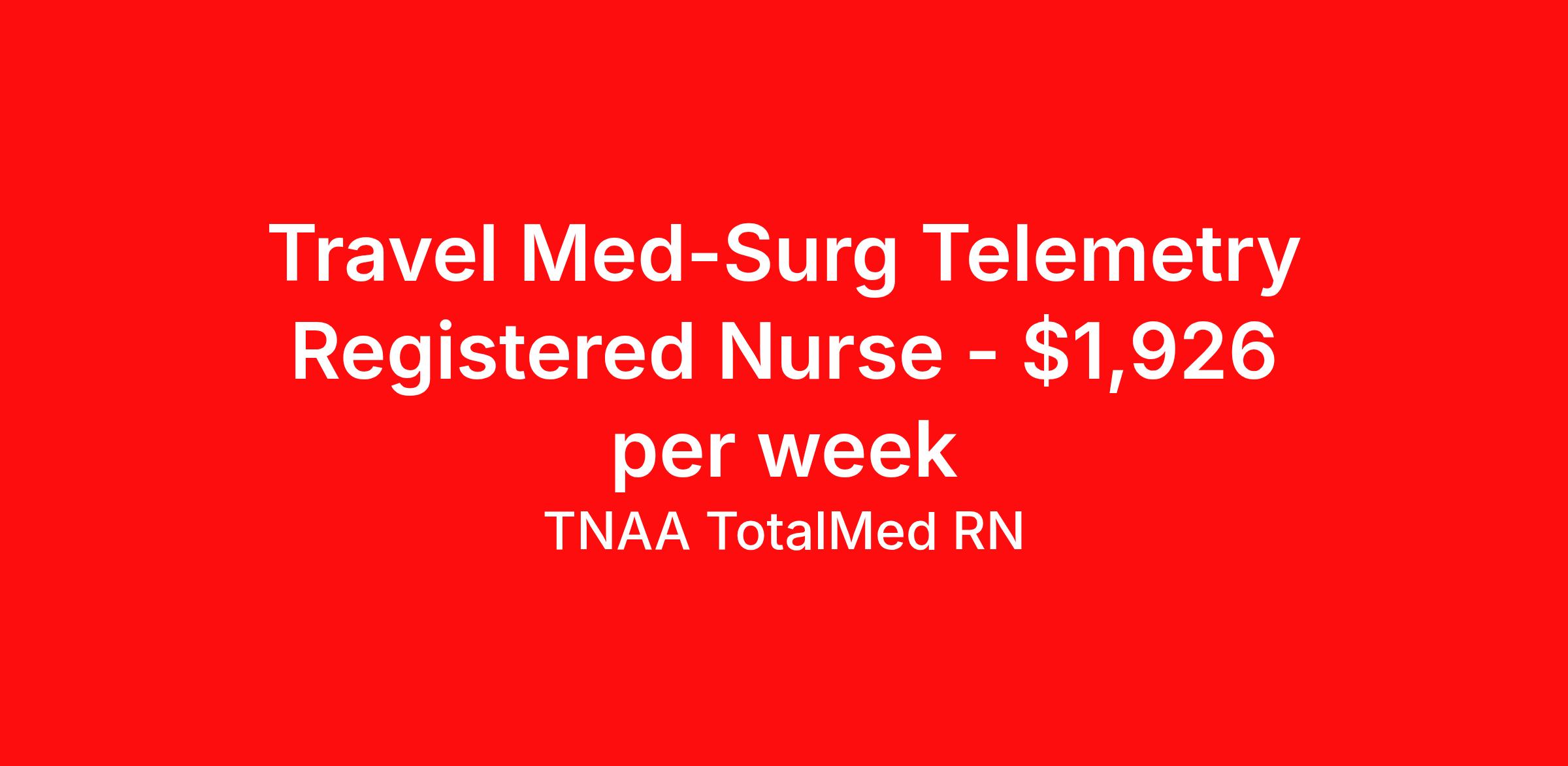 TNAA TotalMed RN is seeking a travel nurse RN Telemetry for a travel nursing job in Columbus, Ohio. Job Description & Requirements Specialty: Telemetry Discipline: RN Start Date: 04/20/2026 Duration: 16 weeks 36 hours per week Shift: 12 hours, nights Employment Type: Travel We're looking for Telemetry RNs for an immediate travel nurse opening in Columbus, OH. The right RN should have 1-2 years' recent acute care experience. Read below for more requirements. As a TELE Travel Nurse, you will provide care by connecting patients to machines that measure heart rate, blood pressure, breathing rate, as well as blood-oxygen levels and electrocardiogram information. These machines then send data to computer screens for RNs to monitor. Telemetry RNs read and interpret the data to better determine patient care. As a TELE Travel Nurse, you should be prepared to perform the following tasks: Provide basic bedside care. Monitor and adjust specialized equipment used on patients, and interpret and record electronic displays. Identify irregular telemetry readings and notify appropriate medical team members. Initiate corrective action whenever information from monitoring equipment shows adverse symptomatology. TELE Travel Nurses should be able to stand and walk for long periods of time, as well as bend, lean and stoop without difficulty. RNs should be able to easily lift 20 pounds. Moving or lifting of patients may require lifting of up to 50 pounds at times. RNs must have specific vision abilities including close vision, distance vision, color vision, peripheral vision, depth perception and ability to adjust focus. Requirements*: ACLS, BLS, NIH, 2 Years * Additional certifications may be required before beginning an assignment. TotalMed Travel Job ID 1396047. Pay package is based on 12 hour shifts and 36 hours per week (subject to confirmation) with tax-free stipend amount to be determined. Posted job title: Telemetry - TELE RN - Travel Nurse About TNAA TotalMed RN TotalMed is a Top Ten, travel nursing and healthcare staffing agency with the mission of igniting purpose in healthcare. The organization staffs nurses, therapists, pharmacists, and other clinicians of all specialties in all 50 states. They offer local and travel jobs and match caregivers with the right organization to assist both facilities and patients. As an organization, they focus on putting highly-skilled staff into facilities to ensure adequate staffing for a better patient experience. TotalMed specializes in recruiting and placing healthcare professionals in travel, PRN, and permanent positions across the country in Nursing and Allied Health. Throughout 2020, the organization filled roles at even the most short-staffed facilities during the most challenging time in healthcare. By matching the right travel healthcare professional with the right organization, TotalMed continues to offer a lifeline to facilities and their patients. Benefits Weekly pay Guaranteed Hours Continuing Education 401k retirement plan Sick pay Wellness and fitness programs Referral bonus Employee assistance programs Medical benefits Dental benefits Vision benefits Benefits start day 1