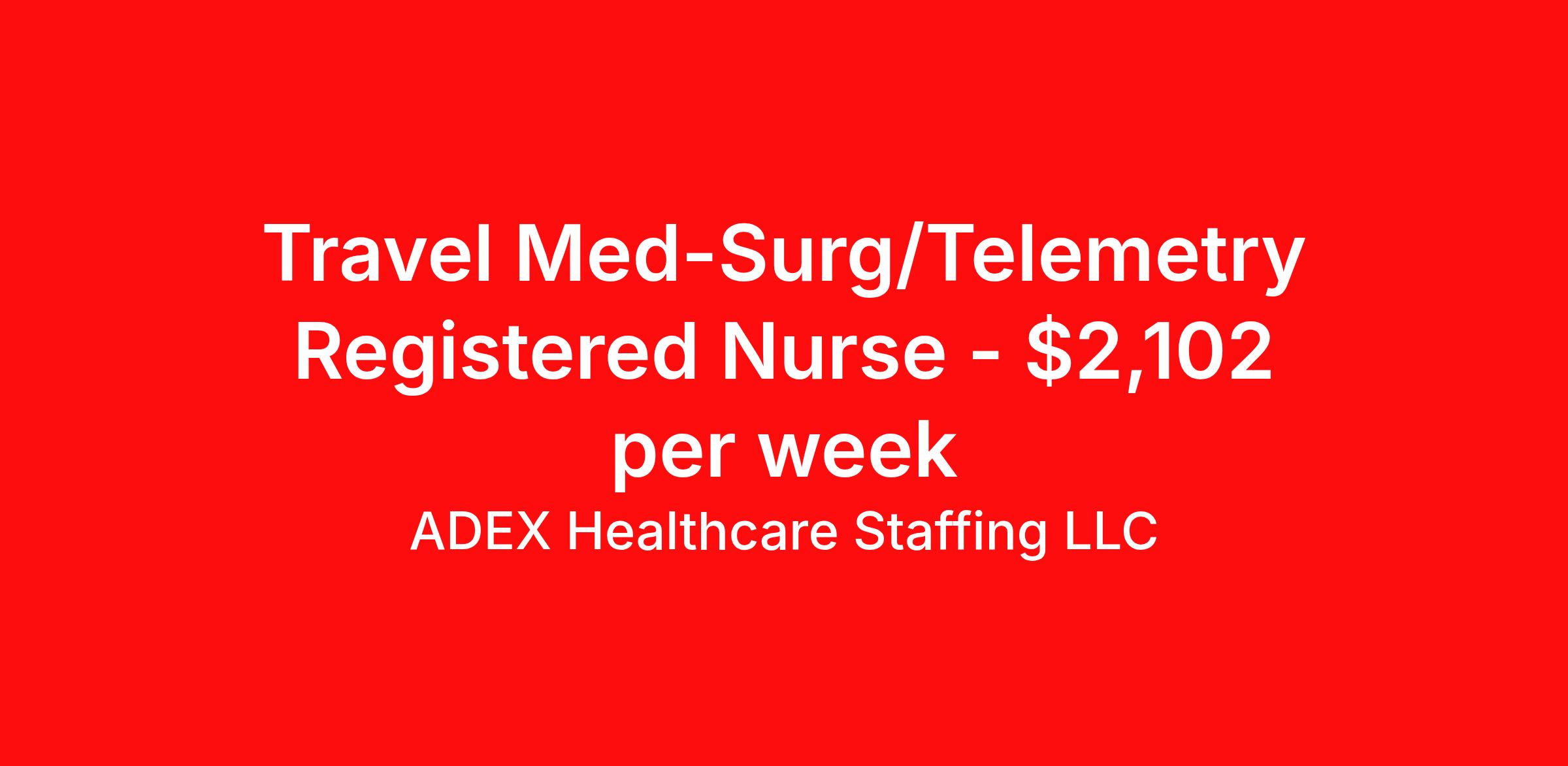 ADEX Healthcare Staffing LLC is seeking a travel nurse RN Telemetry for a travel nursing job in Fort Smith, Arkansas. Job Description & Requirements Specialty: Telemetry Discipline: RN Start Date: 03/30/2026 Duration: 13 weeks 36 hours per week Shift: 12 hours, nights Employment Type: Travel RN Position Job Notes: Travel or Local Registered Nurse needed for ASAP start. A minimum of 2 years of recent hospital bedside experience is required. Candidates must be able to start within 5 weeks. Opportunity for extension upon successful completion of the initial assignment. $750 referral bonus available. Opportunity: RN - Med Surg Tele Job Details: • Work night shifts with a 3x12 schedule • 36 guaranteed hours per week • 1 years of nursing experience required • Current Arkansas licensure required • BLS certification required • Must pass mandatory medication and math competency test before assuming medication administration responsibilities • Competency test covers knowledge of drug actions, side effects, correct dosages, and IV problems • Use EPIC electronic medical record system • Work in a fast-paced unit environment • No call requirements • No float requirements • Dress code requires black scrubs • No open toe shoes allowed Facility: This 336-bed acute care hospital has over 100 years of history providing compassionate care to the community. The facility is recognized for exceptional customer service and focuses on building a better healthcare experience through dedicated healthcare professionals, innovative technology, and new services. The hospital offers comprehensive services including home care, hospice and palliative care, a sleep disorder center, wound care clinic with hyperbaric medicine, and several specialized centers, all delivered with expertise and unceasing compassion. Location: Fort Smith, AR Fort Smith offers a rich blend of history and modern amenities, featuring attractions like the Fort Smith National Historic Site, Parrot Island Waterpark, and the Fort Smith Regional Art Museum. The city provides a vibrant cultural scene with farmers markets, symphony performances, and numerous recreational opportunities, making it an appealing location for healthcare professionals seeking both career growth and quality of life. Adex Job ID 990825. Pay package is based on 12 hour shifts and 36 hours per week (subject to confirmation) with tax-free stipend amount to be determined. About ADEX Healthcare Staffing LLC ADEX has been placing healthcare professionals across the US since 2004. Originally founded in Atlanta, GA, the company's headquarters are now located in Tampa, FL. JCAHO certified since 2009. Benefits Referral bonus