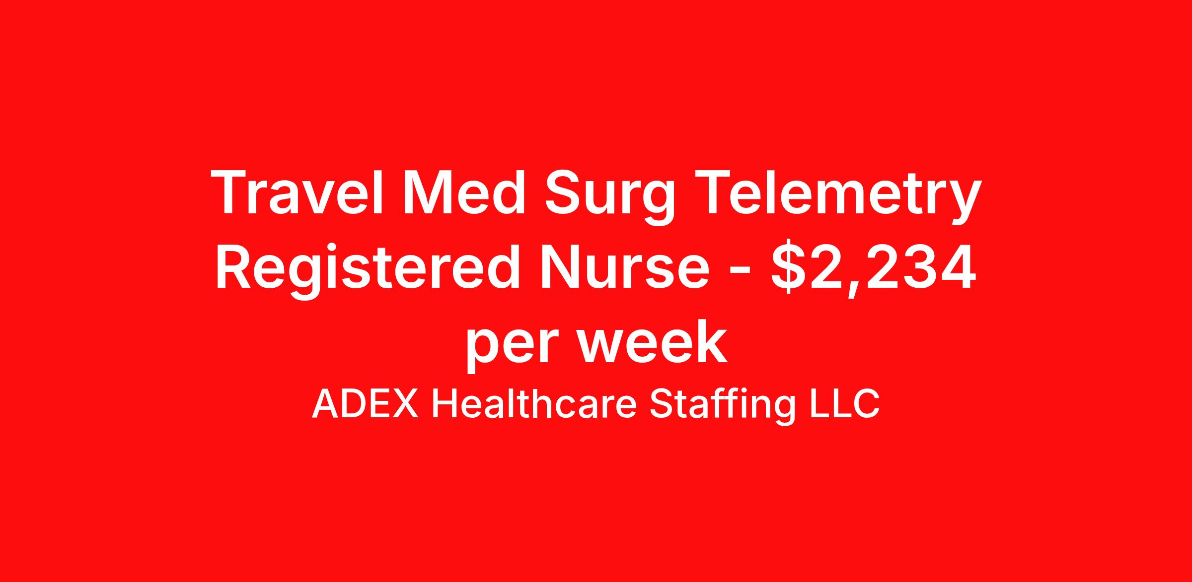 ADEX Healthcare Staffing LLC is seeking a travel nurse RN Telemetry Med Surg for a travel nursing job in Show Low, Arizona. Job Description & Requirements Specialty: Telemetry Discipline: RN Start Date: ASAP Duration: 13 weeks 36 hours per week Shift: 12 hours, nights Employment Type: Travel RN Position Job Notes: Travel or Local Registered Nurse needed for ASAP start. A minimum of 2 years of recent hospital bedside experience is required. Candidates must be able to start within 5 weeks. Opportunity for extension upon successful completion of the initial assignment. $750 referral bonus available. Opportunity: RN - Med Surg Tele Job Details: • Work 12-hour shifts with 36-hour weekly guarantee • 3 cancellations allowed per 13-week assignment • Work on 24-bed medical-surgical unit with telemetry capability on all beds with heavy focus on telemetry • Care for adult patients only (pediatric patients assigned to permanent staff) • Must have strong neurology and cardiac skills • 2 years of nursing experience required • Required certifications: ACLS (AHA), BLS (AHA), NIHSS • PALS certification preferred • Nurse-to-patient ratios: 1:5 during days, 1:6 during nights, 1:4 for pediatrics based on acuity level • Float to all medical-surgical units and ICU when taking medical-surgical overflow patients • Use Allscripts Sunrise EMR system for charting • Support staff includes telemetry technicians, charge nurse, health unit coordinators, and patient care technicians • No IV team available - nurses handle IV responsibilities • Scrubs required in any color except all black (scrubs not provided) • Work in Level 3 trauma acute care setting Facility: This regional medical center provides comprehensive healthcare services with 24/7 hospitalist coverage and round-the-clock support services including respiratory therapy and pharmacy. The facility maintains a collaborative care environment with dedicated support staff and management who actively participate in patient care through regular rounds. The medical center operates as a Level 3 trauma center, offering specialized acute care services to the community. Location: Show Low, AZ Show Low offers a unique high-country Arizona experience with cooler temperatures and beautiful mountain scenery, providing a refreshing alternative to the desert climate typically associated with the state. The area is known for its outdoor recreation opportunities including hiking, fishing, and winter sports, making it an ideal location for healthcare professionals who enjoy an active lifestyle in a scenic mountain setting. Adex Job ID 1073938. Pay package is based on 12 hour shifts and 36 hours per week (subject to confirmation) with tax-free stipend amount to be determined. About ADEX Healthcare Staffing LLC ADEX has been placing healthcare professionals across the US since 2004. Originally founded in Atlanta, GA, the company's headquarters are now located in Tampa, FL. JCAHO certified since 2009. Benefits Referral bonus