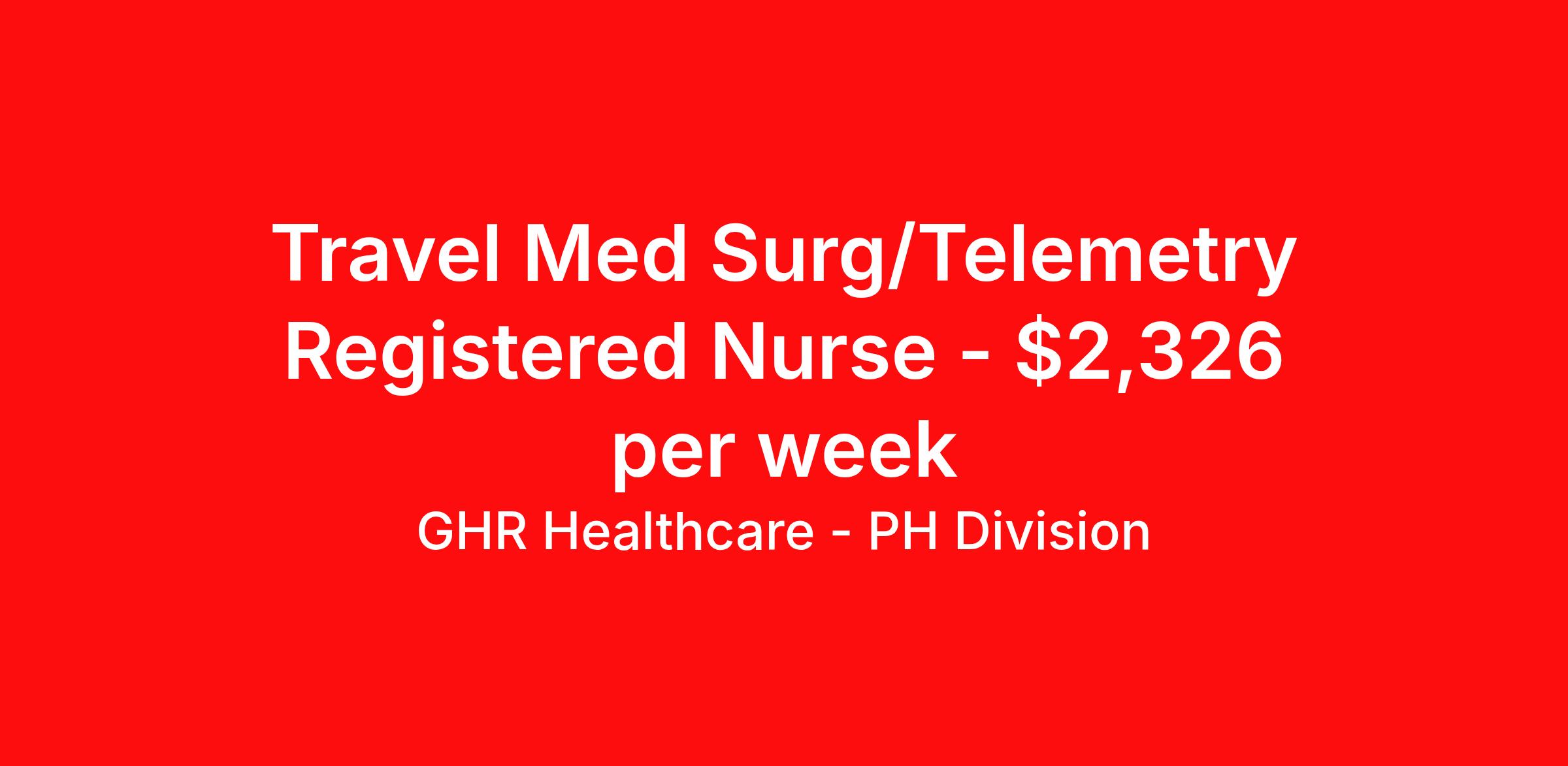 GHR Healthcare - PH Division is seeking a travel nurse RN Med Surg / Telemetry for a travel nursing job in Albany, New York. Job Description & Requirements Specialty: Med Surg / Telemetry Discipline: RN Start Date: ASAP Duration: 13 weeks 36 hours per week Shift: 12 hours Employment Type: Travel Med/Surg Telemetry Registered Nurse (RN) – Travel Assignment | Albany, NY (12208) Med/Surg Telemetry Registered Nurse (RN) – 13-week travel nursing assignment in Albany, NY. Night shift travel nurse opportunity in an academic medical center; Epic EMR experience and telemetry nursing skills required. Estimated weekly pay $2,130–$2,250. Job Details — Travel Nursing Job (Med/Surg Telemetry RN) Position: Med/Surg Telemetry Registered Nurse (RN) / Telemetry Nurse Location: Albany, NY 12208 (Albany, Capital District, Upstate New York) Assignment Type: Travel RN / Travel Nurse Start Date: March 2, 2026 End Date: April 21, 2026 Duration: 13 weeks Shift: 12-hour Nights (7:00 PM – 7:30 AM) — Night Shift Telemetry Nursing Hours per Week: 36 Estimated Weekly Pay: $2,130 – $2,250 Dress Code: Navy blue scrubs required EMR System: Epic (Epic EMR experience required) Job Requirements — Registered Nurse Qualifications Active Registered Nurse (RN) license in New York State (required) At least 1 year of recent Med/Surg Telemetry experience in a 600 bed academic hospital with a passing competency testing score, OR 2 years of recent Med/Surg Telemetry experience (no testing required) Epic EMR experience required (Epic experience preferred for travel nursing jobs) Competency test must be completed within 24 hours of submission (sent via email) Must be able to wear navy blue scrubs per hospital policy Local candidates from ineligible counties are not being accepted Responsibilities — Telemetry Nurse / Med-Surg RN Duties Provide high-quality, patient-centered care in the Med/Surg Telemetry unit (medical-surgical nursing, acute care) Continuously monitor and interpret telemetry data to ensure patient safety and timely clinical interventions Collaborate with interdisciplinary healthcare teams (physicians, RRTs, allied health) to develop and implement patient care plans Accurately document patient assessments, interventions, and outcomes in Epic EMR Float to other nursing units as needed to support patient care and staffing needs Maintain a safe, clean, and compliant work environment following hospital policies and clinical protocols Why join this travel nursing assignment? This is an excellent Med/Surg Telemetry travel nurse opportunity in a large academic hospital in Albany, NY — ideal for RNs seeking experience in telemetry monitoring, Epic documentation, and acute care nursing in Upstate New York. Apply now to join our healthcare team in Albany, NY and take advantage of this exceptional travel nursing job in a welcoming and culturally rich city. Apply today to be considered for this Med/Surg Telemetry RN assignment. Benefits 401K with Matching, Healthcare, Dental and Vision Equal Opportunity We are an equal opportunity employer and value diversity across our organization. We do not discriminate on the basis of race, religion, color, national origin, gender, sexual orientation, age, marital status, veteran status, or disability status. Planet Healthcare Job ID 455195. Pay package is based on 12 hour shifts and 36 hours per week (subject to confirmation) with tax-free stipend amount to be determined. Posted job title: Med/Surg Tele About GHR Healthcare - PH Division For over 30 years, GHR Healthcare has been the bridge between healthcare professionals and the facilities that need them nationwide. We're committed to uncovering your ideal fit, supported by GHR's dedication to competitive compensation, transparent communication, and a devoted team that genuinely cares about your career journey. You can trust us to stand by your side as your advocate, confidante, and partner in advancing your career. At GHR, care and consideration are at the heart of everything we do. Visit ghrhealthcare.com to learn more.