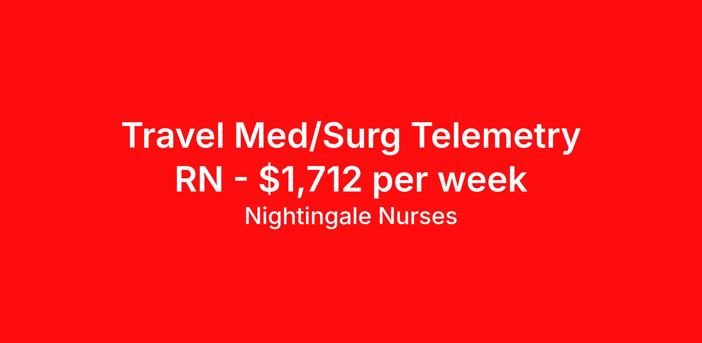 Nightingale Nurses is seeking a travel nurse RN Med Surg / Telemetry for a travel nursing job in Alabaster, Alabama. Job Description & Requirements Specialty: Med Surg / Telemetry Discipline: RN Start Date: 04/06/2026 Duration: 13 weeks 36 hours per week Shift: 12 hours, nights Employment Type: Travel About Nightingale Nurses the first name in travel nursing You may not realize it, but as an RN with real world hospital experience, you are legendary. To the lives you’ve helped save, the patients you’ve cared for, and to the hospitals where you’ve done it. And you’re just getting started. Legendary is where Nightingale begins. We’re the first name in travel nursing, representing only the very best RNs. That’s why hospitals prefer us, allowing us to offer exceptional travel nursing assignments all over the US, as well as the highest pay rates and most extensive benefits in the industry. Nightingale facilitates every aspect of your travel nursing assignment, so you can focus on doing what you do best. We want you to grow, explore, and enjoy unrivaled liberty, the freedom to nurse.
