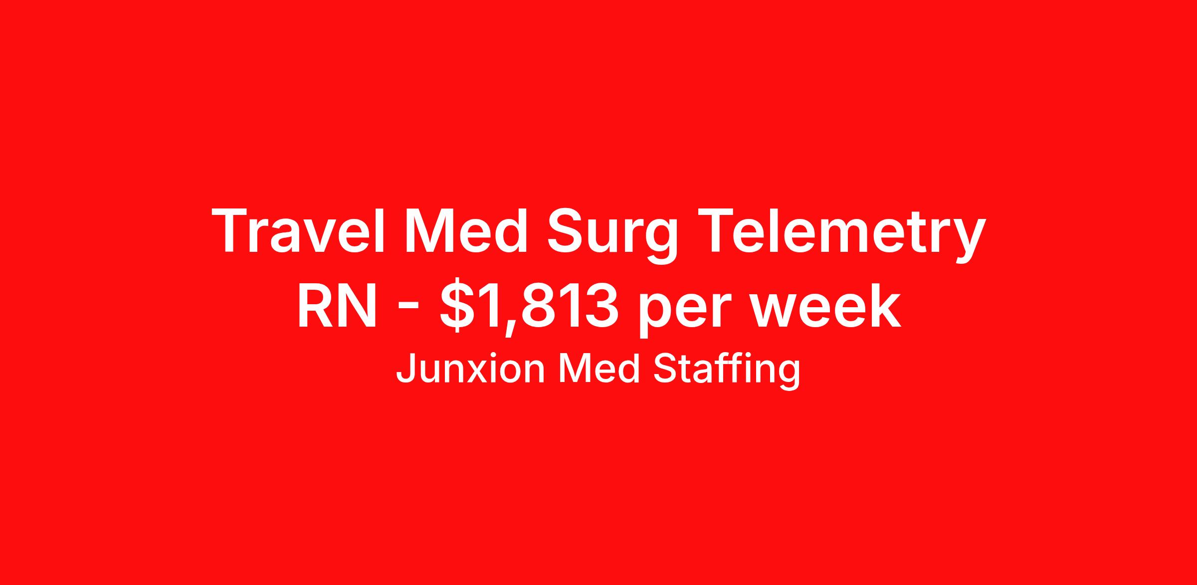 Junxion Med Staffing is seeking a travel nurse RN Med Surg / Telemetry for a travel nursing job in Des Moines, Iowa. Job Description & Requirements Specialty: Med Surg / Telemetry Discipline: RN Start Date: 04/20/2026 Duration: 13 weeks 36 hours per week Shift: 12 hours, nights Employment Type: Travel Summary: Junxion Med Staffing is looking for a MS/Tele RN to take an assignment in Des Moines, Iowa. This assignment lasts 13 WEEKS and is scheduled to start on April 20, 2026. If you don't like the start date, pay, or shift, then let’s talk. Give us a call opt 1 Job Details: Shift: 12H Nights Total Weekly Hours: 36 Certifications: BLS, License/Certificate Verification Trauma Level: Benefits: Day 1 Insurance Additional bonus potential for every contract Additional vacation incentives Medical insurance with no more than $175 monthly premium for employee Employee Assistance Program (EAP) Referral bonus up to $1,000 401K and access to financial advisors for financial wellness and education A dedicated recruiter and support team that will help you every step of the way to sure you start on time and have an exceptional experience An agency ran by a traveler for travelers Click here for licensing requirements About the Company: Junxion Med Staffing is an award-winning healthcare staffing company with a mission to provide quality healthcare to our communities. Apply today to speak with a recruiter! Awards: RNVIP- Top 10 Travel Nursing Agencies of 2024 BluePipes – The Best Travel Nursing Companies 2023 *Estimated weekly pay includes projected hourly wages and weekly meal and lodging per diems for eligible clinicians based on nationally published GSA rates. Actual weekly pay and per diems may differ from the amount shown and may be subject to change during an assignment. For all employees and employee applicants, Junxion Med Staffing is an Equal Employment Opportunity ("EEO") Employer, including Disability/Vets, and welcomes all to apply. Junxion Med Staffing Job ID 1361242. Pay package is based on 12 hour shifts and 36 hours per week (subject to confirmation) with tax-free stipend amount to be determined. About Junxion Med Staffing Junxion Med Staffing was founded by a former healthcare traveler who understands the challenges healthcare professionals face - because we’ve been there. We specialize in placing travel nurses, allied health professionals, physicians, physician assistants, and nurse practitioners in both short-term and permanent roles across a wide range of specialties. Whether you're looking for a travel contract or a long-term fit, we work to ensure the right match between each healthcare professional and facility. At Junxion, we keep it simple: ● Transparent communication. No surprises, no hidden details, just honest conversations so you always know what to expect. ● Dedicated support. From job search to contract negotiations and throughout your assignment, you’ll have a recruiter who’s with you every step of the way. ● Competitive pay and benefits. We advocate for you to be fairly compensated and supported in your goals. ● A focus on your success. When healthcare professionals feel valued and empowered, patient care improves and that’s what it’s all about. You’re not just a number here. You’re part of a team that actually cares. Let’s find your next great opportunity together. Benefits Weekly pay Referral bonus Dental benefits Vision benefits 401k retirement plan Medical benefits Mileage reimbursement