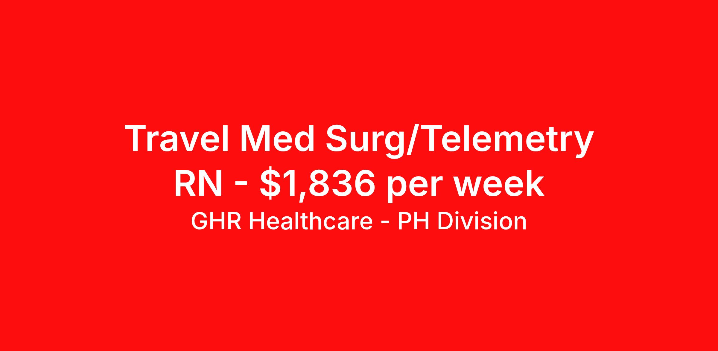 GHR Healthcare - PH Division is seeking a travel nurse RN Med Surg / Telemetry for a travel nursing job in Tucson, Arizona. Job Description & Requirements Specialty: Med Surg / Telemetry Discipline: RN Start Date: ASAP Duration: 13 weeks 36 hours per week Shift: 12 hours Employment Type: Travel Planet Healthcare Job ID 75509099. Pay package is based on 12 hour shifts and 36 hours per week (subject to confirmation) with tax-free stipend amount to be determined. About GHR Healthcare - PH Division For over 30 years, GHR Healthcare has been the bridge between healthcare professionals and the facilities that need them nationwide. We're committed to uncovering your ideal fit, supported by GHR's dedication to competitive compensation, transparent communication, and a devoted team that genuinely cares about your career journey. You can trust us to stand by your side as your advocate, confidante, and partner in advancing your career. At GHR, care and consideration are at the heart of everything we do. Visit ghrhealthcare.com to learn more.