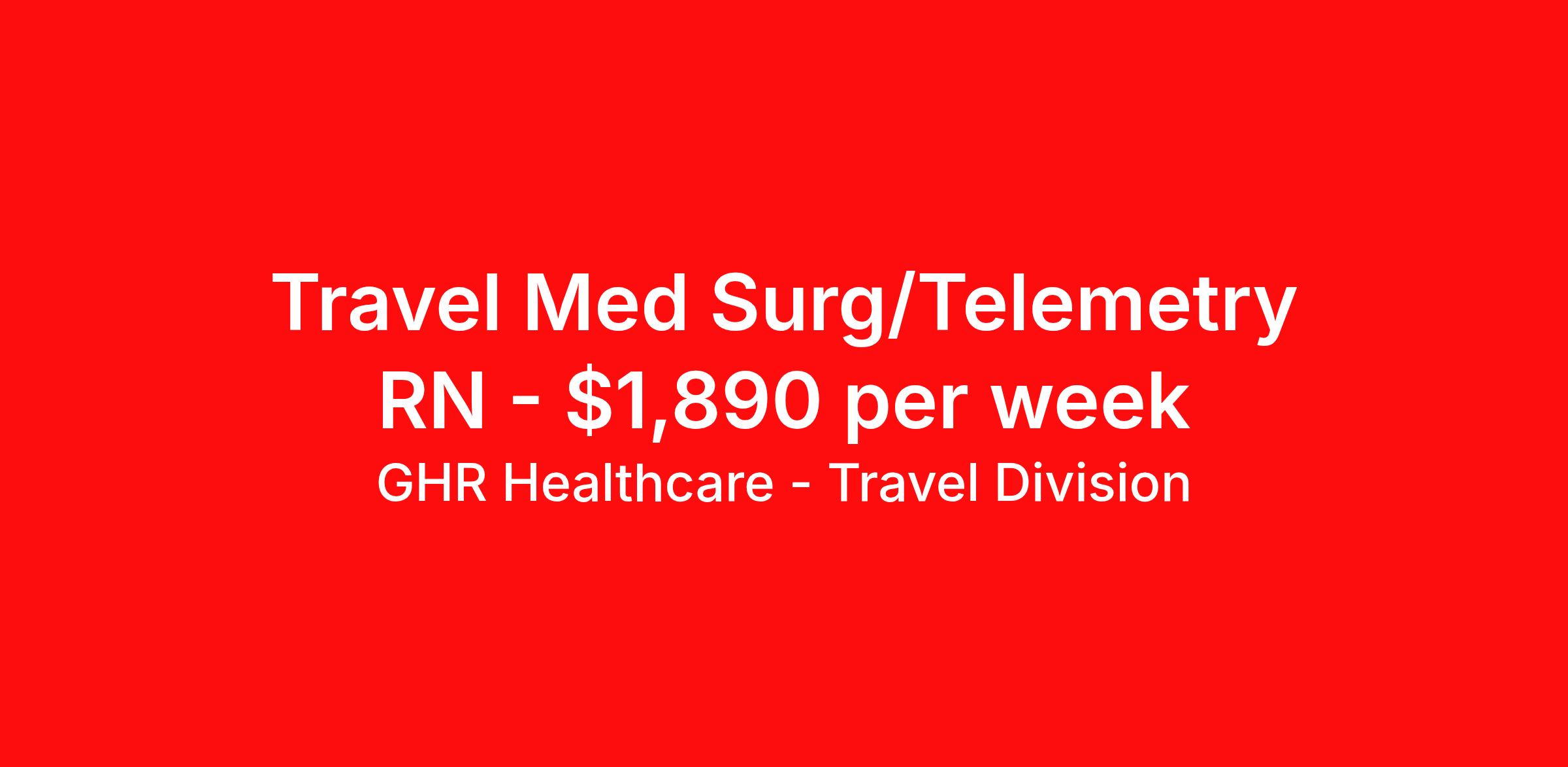 GHR Healthcare - Travel Division is seeking a travel nurse RN Med Surg / Telemetry for a travel nursing job in Tucson, Arizona. Job Description & Requirements Specialty: Med Surg / Telemetry Discipline: RN Start Date: ASAP Duration: 13 weeks 36 hours per week Shift: 12 hours Employment Type: Travel GHR Healthcare - Travel Division Job ID 75509099. Pay package is based on 12 hour shifts and 36 hours per week (subject to confirmation) with tax-free stipend amount to be determined. About GHR Healthcare - Travel Division For over 30 years, GHR Healthcare has been the bridge between healthcare professionals and the facilities that need them nationwide. We're committed to uncovering your ideal fit, supported by GHR's dedication to competitive compensation, transparent communication, and a devoted team that genuinely cares about your career journey. You can trust us to stand by your side as your advocate, confidante, and partner in advancing your career. At GHR, care and consideration are at the heart of everything we do. Visit ghrhealthcare.com to learn more.