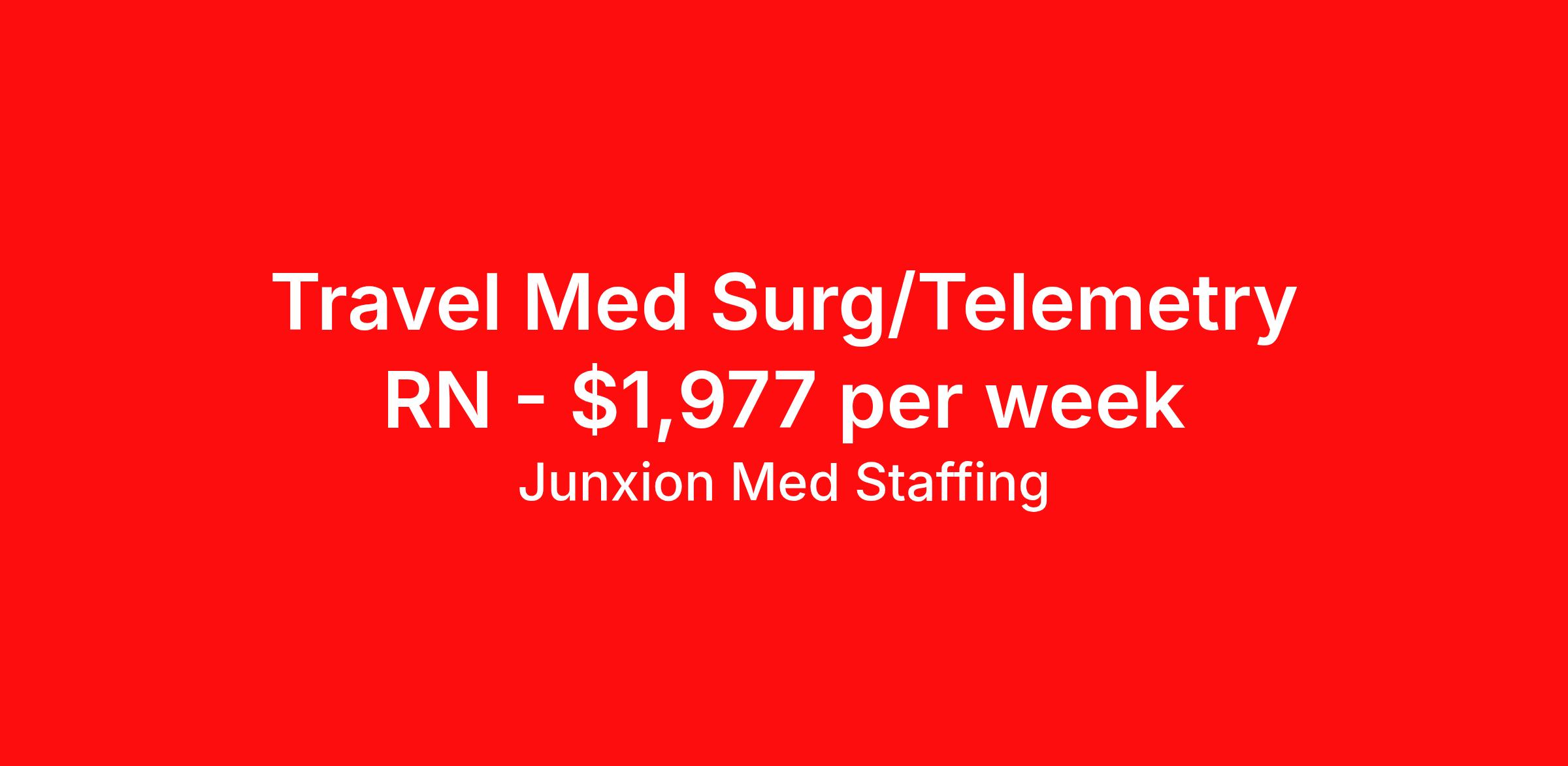 Junxion Med Staffing is seeking a travel nurse RN Med Surg / Telemetry for a travel nursing job in Creve Coeur, Missouri. Job Description & Requirements Specialty: Med Surg / Telemetry Discipline: RN Start Date: 04/06/2026 Duration: 13 weeks 36 hours per week Shift: 12 hours, nights Employment Type: Travel Summary: Junxion Med Staffing is looking for a MS/Tele RN to take an assignment in Creve Coeur, Missouri. This assignment lasts 13.14 WEEKS and is scheduled to start on April 6, 2026. If you don't like the start date, pay, or shift, then let’s talk. Give us a call opt 1 Job Details: Shift: 12H Nights Total Weekly Hours: 36 Certifications: BLS, NIHSS, BLS, ACLS Trauma Level: Benefits: Day 1 Insurance Additional bonus potential for every contract Additional vacation incentives Medical insurance with no more than $175 monthly premium for employee Employee Assistance Program (EAP) Referral bonus up to $1,000 401K and access to financial advisors for financial wellness and education A dedicated recruiter and support team that will help you every step of the way to sure you start on time and have an exceptional experience An agency ran by a traveler for travelers Click here for licensing requirements About the Company: Junxion Med Staffing is an award-winning healthcare staffing company with a mission to provide quality healthcare to our communities. Apply today to speak with a recruiter! Awards: RNVIP- Top 10 Travel Nursing Agencies of 2024 BluePipes – The Best Travel Nursing Companies 2023 *Estimated weekly pay includes projected hourly wages and weekly meal and lodging per diems for eligible clinicians based on nationally published GSA rates. Actual weekly pay and per diems may differ from the amount shown and may be subject to change during an assignment. For all employees and employee applicants, Junxion Med Staffing is an Equal Employment Opportunity ("EEO") Employer, including Disability/Vets, and welcomes all to apply. Junxion Med Staffing Job ID 1362457. Pay package is based on 12 hour shifts and 36 hours per week (subject to confirmation) with tax-free stipend amount to be determined. About Junxion Med Staffing Junxion Med Staffing was founded by a former healthcare traveler who understands the challenges healthcare professionals face - because we’ve been there. We specialize in placing travel nurses, allied health professionals, physicians, physician assistants, and nurse practitioners in both short-term and permanent roles across a wide range of specialties. Whether you're looking for a travel contract or a long-term fit, we work to ensure the right match between each healthcare professional and facility. At Junxion, we keep it simple: ● Transparent communication. No surprises, no hidden details, just honest conversations so you always know what to expect. ● Dedicated support. From job search to contract negotiations and throughout your assignment, you’ll have a recruiter who’s with you every step of the way. ● Competitive pay and benefits. We advocate for you to be fairly compensated and supported in your goals. ● A focus on your success. When healthcare professionals feel valued and empowered, patient care improves and that’s what it’s all about. You’re not just a number here. You’re part of a team that actually cares. Let’s find your next great opportunity together. Benefits Weekly pay Referral bonus Dental benefits Vision benefits 401k retirement plan Medical benefits Mileage reimbursement