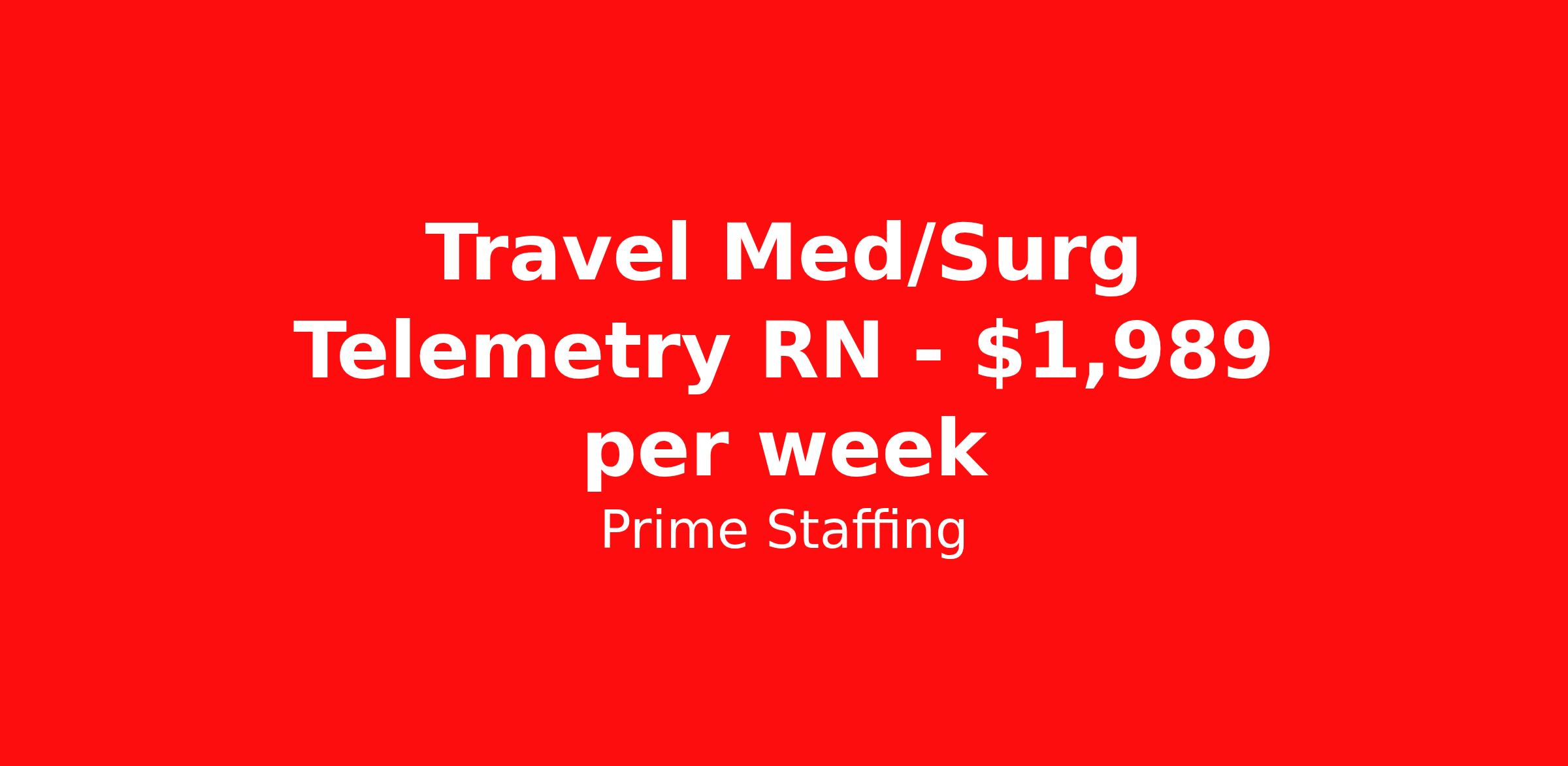 Prime Staffing is seeking a travel nurse RN Med Surg / Telemetry for a travel nursing job in Akron, Ohio. Job Description & Requirements Specialty: Med Surg / Telemetry Discipline: RN Start Date: 04/17/2026 Duration: 13 weeks 36 hours per week Shift: 12 hours Employment Type: Travel Prime Staffing Job ID 36193635. Pay package is based on 12 hour shifts and 36.0 hours per week (subject to confirmation) with tax-free stipend amount to be determined. Posted job title: RN:Med Surg/Telemetry,19:00:00-07:30:00 About Prime Staffing At Prime Staffing, we understand the importance of finding the perfect fit for both our clients and candidates. Prime Staffing utilizes a unique matchmaking approach, providing the most qualified contingent staffing to our clients, and the most competitive contracts to our workforce. Our experienced team takes the time to get to know both our clients and candidates, their needs, and preferences, to ensure that each placement is a success. We offer a wide range of staffing services including temporary, temp-to-perm, and direct hire placements. Our extensive network of qualified candidates includes nurses, allied healthcare professionals, corporate support professionals and executives.
