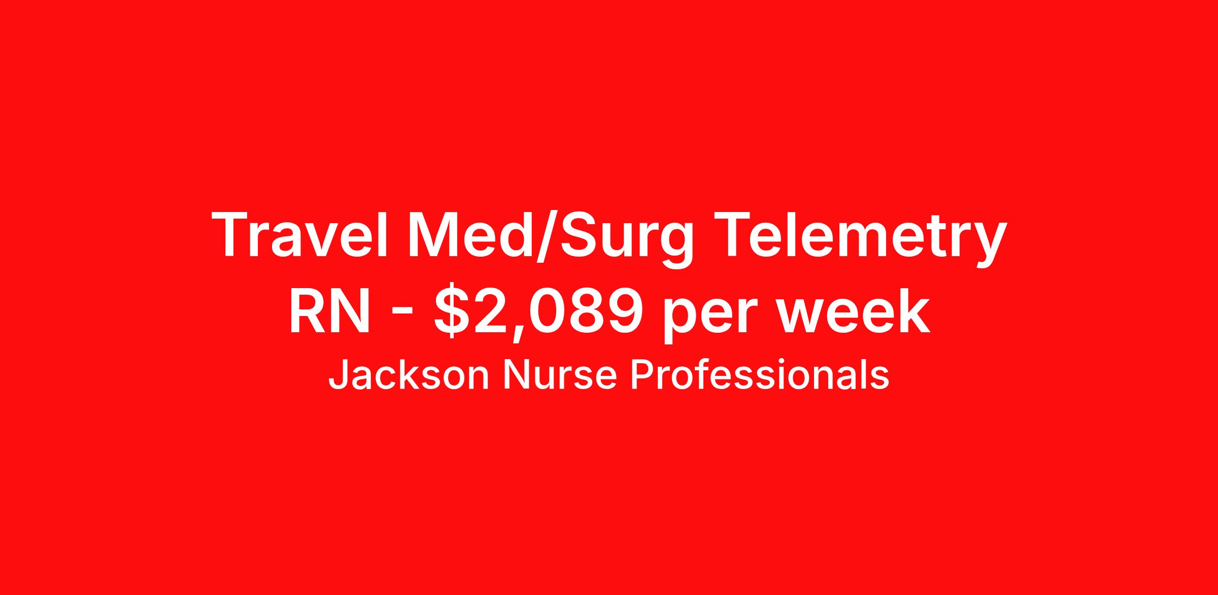 Jackson Nurse Professionals is seeking a travel nurse RN Med Surg / Telemetry for a travel nursing job in Cleveland, Ohio. Job Description & Requirements Specialty: Med Surg / Telemetry Discipline: RN Start Date: ASAP Duration: 13 weeks 36 hours per week Shift: 12 hours, nights Employment Type: Travel At Jackson Nurse Professionals , we are dedicated to supporting travel nurses and helping you build a fulfilling nursing career. Whether you’re looking for your first or next travel nursing assignment, we specialize in connecting healthcare professionals with leading medical facilities. With a focus on personalized service and a wide range of opportunities, we make it easier than ever for nurses to find the right balance of adventure and professional growth. Qualifications: 2 years of recent experience in area of specialty listed on job Current BLS required (certifications vary by location – job may require ACLS) Valid license and/or certification in state of practice Valid Driver's License Background and drug screen Benefits: Full Medical, Dental and Vision Insurance 401(k) with Employer Match 24/7/365 Support from your Recruiter available by text, phone, or email Referral Bonus Program: Give $200, Get $500 for every referral Same Day Immediate Pay Access Certification & Licensure Reimbursement Apply today to experience the Jackson Nurse Professionals difference! Jackson Nurse Professionals Job ID 2449692. Pay package is based on 12 hour shifts and 36 hours per week (subject to confirmation) with tax-free stipend amount to be determined. About Jackson Nurse Professionals Filling critical needs in patient care, Jackson Nurse Professionals delivers cost-effective travel nurse staffing solutions to over 500 hospitals, outpatient clinics, and home health clients nationwide. Awarded Best of Staffing - Talent and Client 2024, and rated as a Top Workplace 2023 by the Orlando Sentinel, Jackson Nurse Professionals goes the extra mile to provide travel nurses the career they deserve, while providing clients with a large range of highly skilled nurses to fill short, long-term, and temporary assignments. As a member of Jackson Healthcare’s family of award-winning staffing companies, we’re part of a growing community that’s impacting 10 million patients nationwide. Join our mission to improve the delivery of patient care, and the lives of everyone we touch.