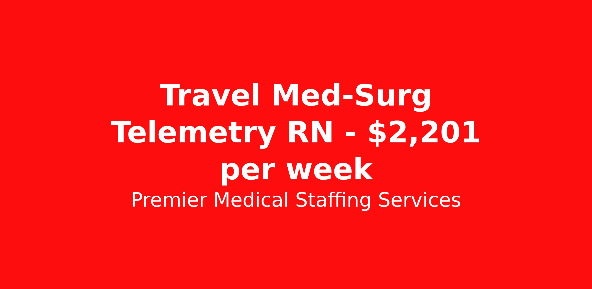 Premier Medical Staffing Services is seeking a travel nurse RN Med Surg / Telemetry for a travel nursing job in St. Louis, Missouri. Job Description & Requirements Specialty: Med Surg / Telemetry Discipline: RN Start Date: ASAP Duration: 13 weeks 36 hours per week Shift: 12 hours Employment Type: Travel Premier Medical Staffing Job ID 606431. Pay package is based on 12 hour shifts and 36 hours per week (subject to confirmation) with tax-free stipend amount to be determined. Posted job title: RN Tele Med/Surg About Premier Medical Staffing Services Premier Medical Staffing Services, LLC is a nationally expanding healthcare staffing firm for healthcare professionals and companies. We understand our clients’ need for highly qualified, expertly trained medical professionals and are passionate about helping clinicians find employment opportunities that fit their personality and needs. Able to accommodate the ever-changing needs of the healthcare landscape, we offer per-diem, contract and direct hire placements to support the unique needs of each industry sector. Premier Medical Staffing Services is Joint Commission Certified, a Military Spouse Employment Partner and is certified as a Women’s Business Enterprise. We are proudly nurse owned.