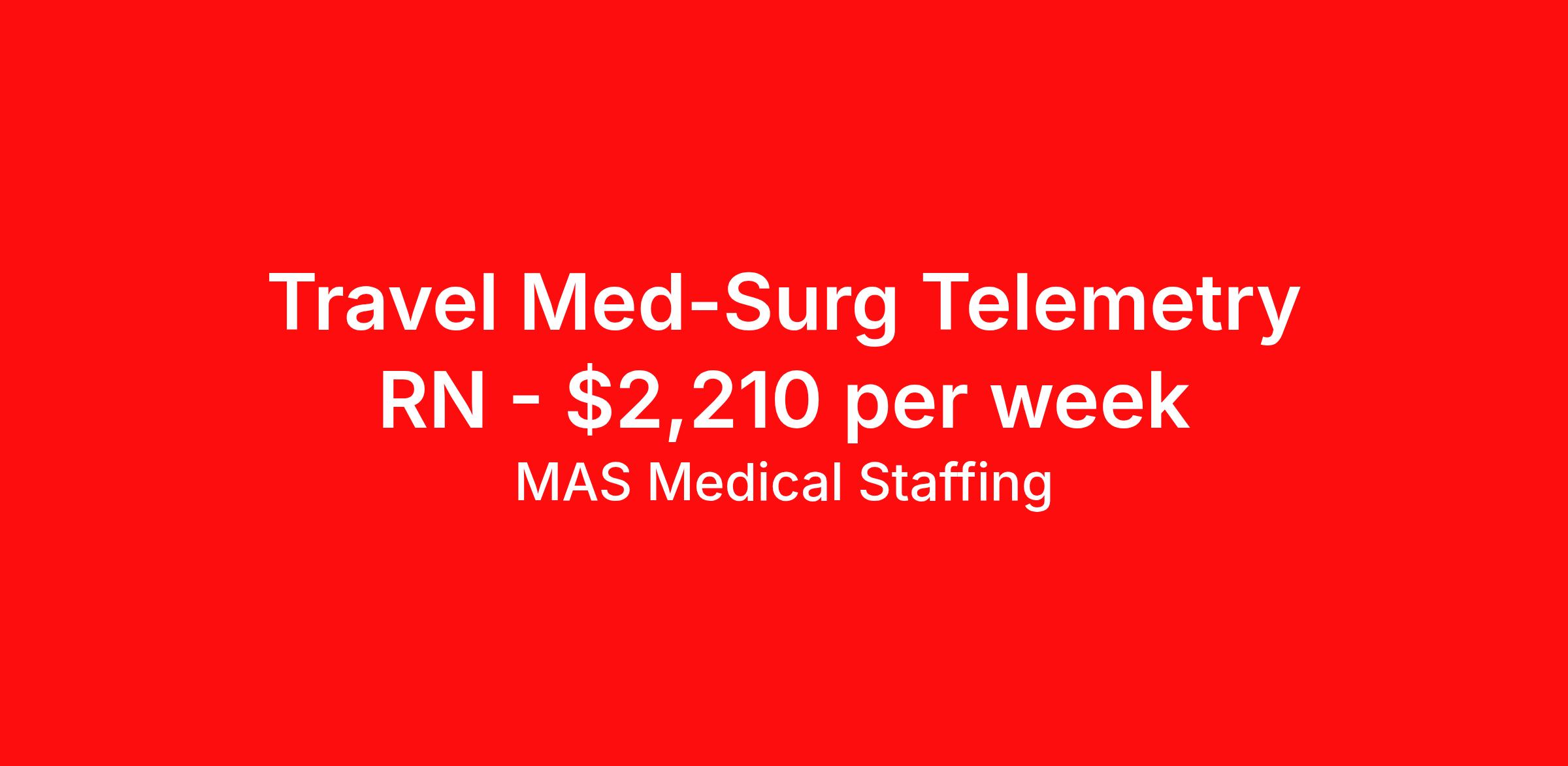 MAS Medical Staffing is seeking a travel nurse RN Med Surg / Telemetry for a travel nursing job in Manchester, New Hampshire. Job Description & Requirements Specialty: Med Surg / Telemetry Discipline: RN Start Date: ASAP Duration: 13 weeks 36 hours per week Shift: 12 hours Employment Type: Travel Registered Nurse | Up to $2,210 /week | Med Surg / Telemetry Tired of staffing agencies that don’t put YOU first? Hi! We’re MAS Medical Staffing, one of the largest healthcare staffing agencies in the country. We fill thousands of positions, in your neighborhood and across the country – but we’re so much more than just jobs! Our staff are a part of Team MAS, not independent contractors, and we treat our team right. MAS roles offer industry-leading benefits, a top-notch caregiver service team for support, and a tailored approach that’s focused on finding you the best job for your needs from our nationwide database of opportunities. We’re looking for a Registered Nurse in Manchester, NH for a 13-weeks travel contract position. Perks and Benefits: Super-fast benefits eligibility, with a range of health insurance plans to fit your needs and budget Vision, Dental & supplemental insurance options Same-day pay option for most shifts – always free and there when you need it Housing stipends and relocation assistance available for eligible candidates Requirements: Must be an actively Registered Nurse to work at MAS Certification from an accredited school required 1-year prior experience required Assignment Details: 13 weeks Nights (12- Hours shift) Every other weekend required 36 hours/week guaranteed Also available as a local contract, at a reduced rate MAS is an equal-opportunity employer. All applicants will be considered for employment without attention to race, color, religion, sex, sexual orientation, gender identity, national origin, veteran or disability status. ContractMAS MAS Medical Staffing Job ID 737811. Pay package is based on 12 hour shifts and 36 hours per week (subject to confirmation) with tax-free stipend amount to be determined. Posted job title: Registered Nurse | Up to $2,210/week | Med Surg / Telemetry About MAS Medical Staffing Tired of the typical one-size-fits-all approach that you get with most healthcare staffing agencies? Hi! We’re MAS Medical Staffing, one of the largest full-service healthcare staffing agencies in the country, and we have a better way to help our caregivers find the work they want. At MAS you can choose from the flexibility of per diem shifts, the consistency and great pay of local contracts, the adventure of travel nursing, or specialized roles like Allied Health (PT, OT, COTA, SLP, PTA, etc.) all within one agency. When your needs change, we’ve got you covered! Your dedicated support team can help you find your next role from our range of options. Perks and Benefits: Competitive pay Guaranteed Hours Industry-leading benefits, including health, dental & supplemental insurance, paid time off, and a 401(k) program with company match for those who qualify Dedicated support team, just a phone call away and ready to help Painless credentialing process, so you can start earning quickly Weekly direct deposit Ability to work a schedule that best fits your life and financial goals Travel contracts include housing stipends and relocation assistance for those who qualify 20 years of experience helping medical professionals find rewarding careers