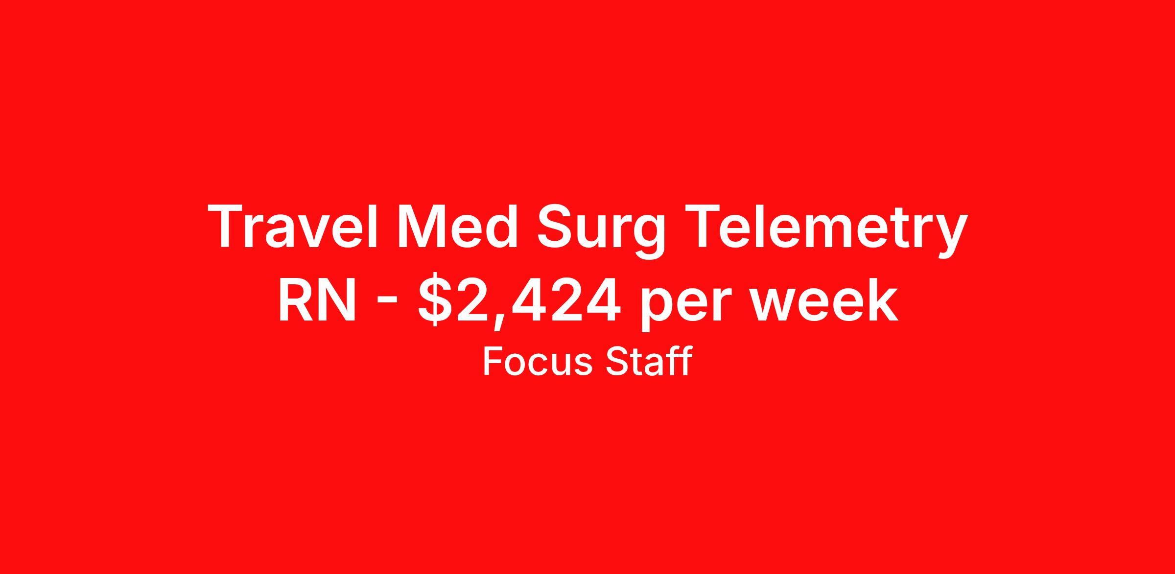 Focus Staff is seeking a travel nurse RN Med Surg / Telemetry for a travel nursing job in Morrisville, Vermont. Job Description & Requirements Specialty: Med Surg / Telemetry Discipline: RN Start Date: 04/13/2026 Duration: 13 weeks 36 hours per week Shift: 12 hours, nights Employment Type: Travel Want to be a crucial part of the care continuum? Join the Focus Staff team as a travel Medical/Surgical Nurse (Med/Surg RN) for a rewarding travel contract in Morrisville, VT. Your daily work will directly contribute to optimal patient outcomes by providing meticulous care and compassionate support to individuals on their path to wellness. Contract Length: 13 Weeks Start Date: 04/13/2026 Shift: Nights Ready to advance your career while seeing the country? Focus Staff provides the benefits and support you need to thrive on every assignment: Comprehensive Benefits : Get paid fast with weekly direct deposits and save for your future with our 401(k) matching and generous bonuses. Instant Peace of Mind : We provide immediate protection with day one medical, dental, vision, and life insurance and no waiting period. Travel with Confidence : Our team handles the details. We offer licensure reimbursement, relocation support, and exclusive discounts to make your next move effortless. Tailored to You : A dedicated recruiter is always available to provide 24/7 support and flexible scheduling options, including pet-friendly housing. Med/Surg RN Requirements: Minimum of 1-2 years of experience Valid VT RN License Current Basic Life Support (BLS) and Advanced Cardiac Life Support (ACLS) certification Must be eligible to work in the United States About Focus Staff: Focus Staff is a traveler-first healthcare staffing agency connecting talented travel nurses and allied health professionals with top assignments nationwide, prioritizing your unique needs and giving you complete control over your journey. Our mission is to help you create the life you love while exploring the country, advancing your healthcare career with competitive pay, and doing what you do best, providing exceptional patient care that makes a difference. Interested in becoming a traveler with Focus Staff? Discover why travelers choose us, apply today! Other Information: Job Title: Travel Med/Surg Nurse RN Employment Time: Contract/Travel Date Posted: 02/18/2026 11:34:32 AM Valid Through: 07/13/2026 Job City: Morrisville Job State: VT Job Country: USA Shift: Nights Job ID: a0xVt00000INatGIAT Hiring Organization: Focus Staff Focus Staff is an EEO/AA (Equal Employment Opportunity and Affirmative Action) Employer. *Estimated pay package based on bill rate at time job was posted. Bill rates can change frequently and without notice. Exact pay package may vary based on several factors, including, but not limited to, guaranteed hours, travel distance, demand, experience, etc. Focus Staff Job ID a0xVt00000INatGIAT. Pay package is based on 12 hour shifts and 36 hours per week (subject to confirmation) with tax-free stipend amount to be determined. Posted job title: Travel M/S RN - Med/Surg Registered Nurse About Focus Staff Your Journey, Our Focus. Travel Confidently, Care Boldly with Focus Staff. At Focus Staff, we’re here to make your travel healthcare career rewarding, seamless, and stress-free. Whether you’re a travel nurse, therapist, or allied health professional, we take care of the details so you can focus on what you do best — caring for others. Our mission is simple: to help healthcare heroes like you thrive, no matter where your journey takes you. With thousands of job opportunities across all 50 states, our dedicated recruiters work closely with you to match you to the right assignment, based on what matters most to you — pay, location, benefits, or career growth. From day one, you’ll enjoy premium benefits like medical coverage that bridges between assignments, 401K matching, travel and licensing reimbursements, and personalized housing support. Plus, our team is here for you 24/7, with clinical support available whenever you need guidance or backup. At Focus Staff, we believe in making every assignment a smooth, comfortable, and empowering experience. Let’s make your next adventure your best one yet.