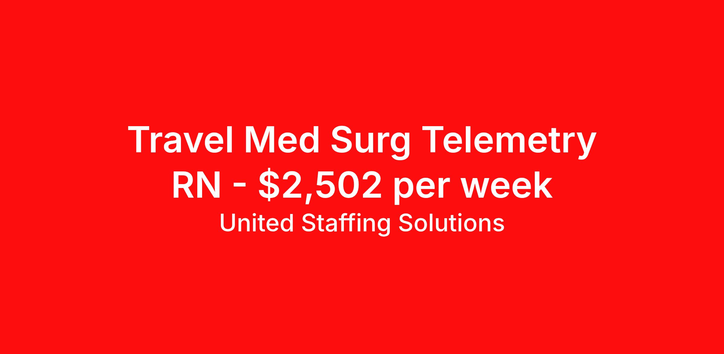 United Staffing Solutions is seeking a travel nurse RN Med Surg / Telemetry for a travel nursing job in Morristown, Vermont. Job Description & Requirements Specialty: Med Surg / Telemetry Discipline: RN Start Date: ASAP Duration: 13 weeks 36 hours per week Shift: 12 hours, nights Employment Type: Travel Role: RN (direct, age-specific patient care) Core Responsibilities: Deliver care using the Nursing Process and nursing/specialty standards; lead and delegate to support staff; maintain compliance with all state/federal regulations and facility policies. Cert Requirements: Active BLS, ACLS, and PALS (or ENPC) prior to start — if not active, a booked course must be scheduled by clinical orientation. United Staffing Solutions Job ID 294046. Pay package is based on 12 hour shifts and 36 hours per week (subject to confirmation) with tax-free stipend amount to be determined. About United Staffing Solutions United Staffing Solutions, Inc. (USS) is one of the largest privately-owned business in America, with 4 divisions and staffing in over 4,000 job categories. USS offers a complete portfolio of personnel solutions to small, mid-sized and large organizations through the tri-state region. Specializes in staffing and recruitment for various industries, including Travel Healthcare, Education, Light Industrial, IT, Security and Administrative Roles. Comprehensive services for workforce solutions, including temporary, permanent and contract staffing Expertise in diverse talent sourcing and matching skilled candidates with appropriate roles. Strong knowledge of industry regulations and compliance standards. Benefits Medical benefits Referral bonus Weekly pay