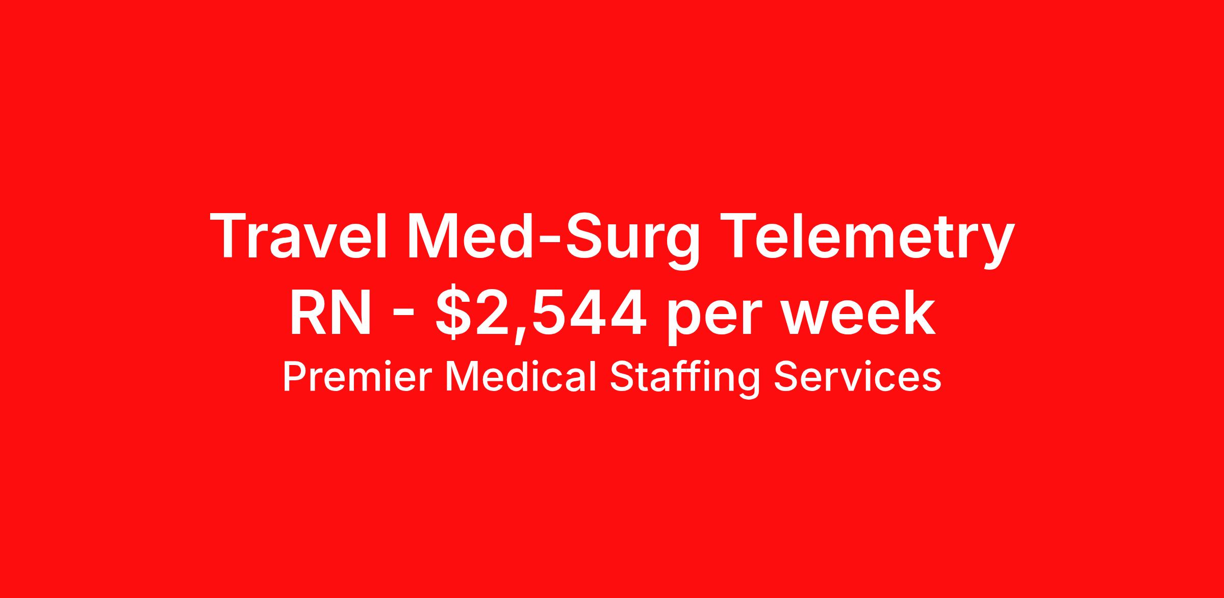 Premier Medical Staffing Services is seeking a travel nurse RN Med Surg / Telemetry for a travel nursing job in Aberdeen, South Dakota. Job Description & Requirements Specialty: Med Surg / Telemetry Discipline: RN Start Date: 04/06/2026 Duration: 12 weeks 36 hours per week Shift: 12 hours Employment Type: Travel Premier Medical Staffing Job ID 618249. Pay package is based on 12 hour shifts and 36 hours per week (subject to confirmation) with tax-free stipend amount to be determined. Posted job title: RN Tele Med/Surg About Premier Medical Staffing Services Premier Medical Staffing Services, LLC is a nationally expanding healthcare staffing firm for healthcare professionals and companies. We understand our clients’ need for highly qualified, expertly trained medical professionals and are passionate about helping clinicians find employment opportunities that fit their personality and needs. Able to accommodate the ever-changing needs of the healthcare landscape, we offer per-diem, contract and direct hire placements to support the unique needs of each industry sector. Premier Medical Staffing Services is Joint Commission Certified, a Military Spouse Employment Partner and is certified as a Women’s Business Enterprise. We are proudly nurse owned.