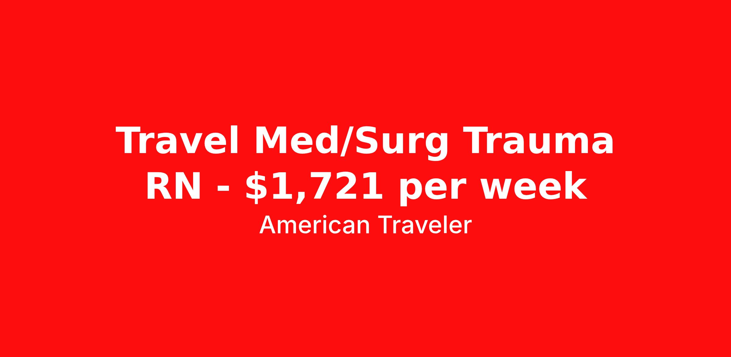 American Traveler is seeking a travel nurse RN Med Surg for a travel nursing job in Atlanta, Georgia. Job Description & Requirements Specialty: Med Surg Discipline: RN Start Date: ASAP Duration: 8 weeks 36 hours per week Shift: 12 hours, nights Employment Type: Travel Assignment Overview Shift: Nights, 3x12hrs Hours: 36 hrs/wk Start Date: Mar 16, 2026 Length: 8 weeks Openings: 1 Description American Traveler is hiring an experienced RN for a high-acuity Med/Surg Surgery Trauma night position requiring a GA or compact RN license and EPIC experience. Details Work on a high-acuity Surgery Trauma unit within a hospital setting Patient population includes spinal neuro trauma, surgical cases, gunshot wounds, quadriplegic and paraplegic patients 12-hour night shifts, three shifts per week Block scheduling is not available; must be flexible with shift assignments No on-call requirements Uses EPIC EMR; experience with EPIC is required Requirements Active GA or compact RN license in hand Basic Life Support (BLS) certification required Advanced Cardiovascular Life Support (ACLS) certification preferred Minimum 2 years of recent experience in the Med/Surg Surgery Trauma specialty EPIC experience required Additional Information No requested time off is permitted during the contract Responsibilities include caring for high-acuity trauma and surgical patients Must be willing to work all assigned shifts and adapt to department needs Professional attire adheres to hospital guidelines References from supervisors or managers with similar experience within the past 2 years are required First-time travelers will be considered American Traveler Job ID P-674121. Pay package is based on 12 hour shifts and 36 hours per week (subject to confirmation) with tax-free stipend amount to be determined. Posted job title: Travel RN - Med/Surg About American Traveler With over 25 years of experience, American Traveler has established a reputation for outstanding customer service. Our team ensures a smooth, worry-free experience for those starting on or expanding their travel nursing and allied careers. With thousands of travel nursing and allied jobs nationwide, our attentive and approachable recruiters find positions that align perfectly with your career aspirations and personal requirements. American Traveler offers exceptional benefits, including premium medical, dental, vision and life insurance beginning day one of your assignment, generous 401(k) match, substantial housing stipends, and more. Additionally, with 24/7 support and access to our in-house clinicians, you are assured confidence and comfort throughout your assignment. With our team behind you, you can relax and enjoy a rewarding travel career.