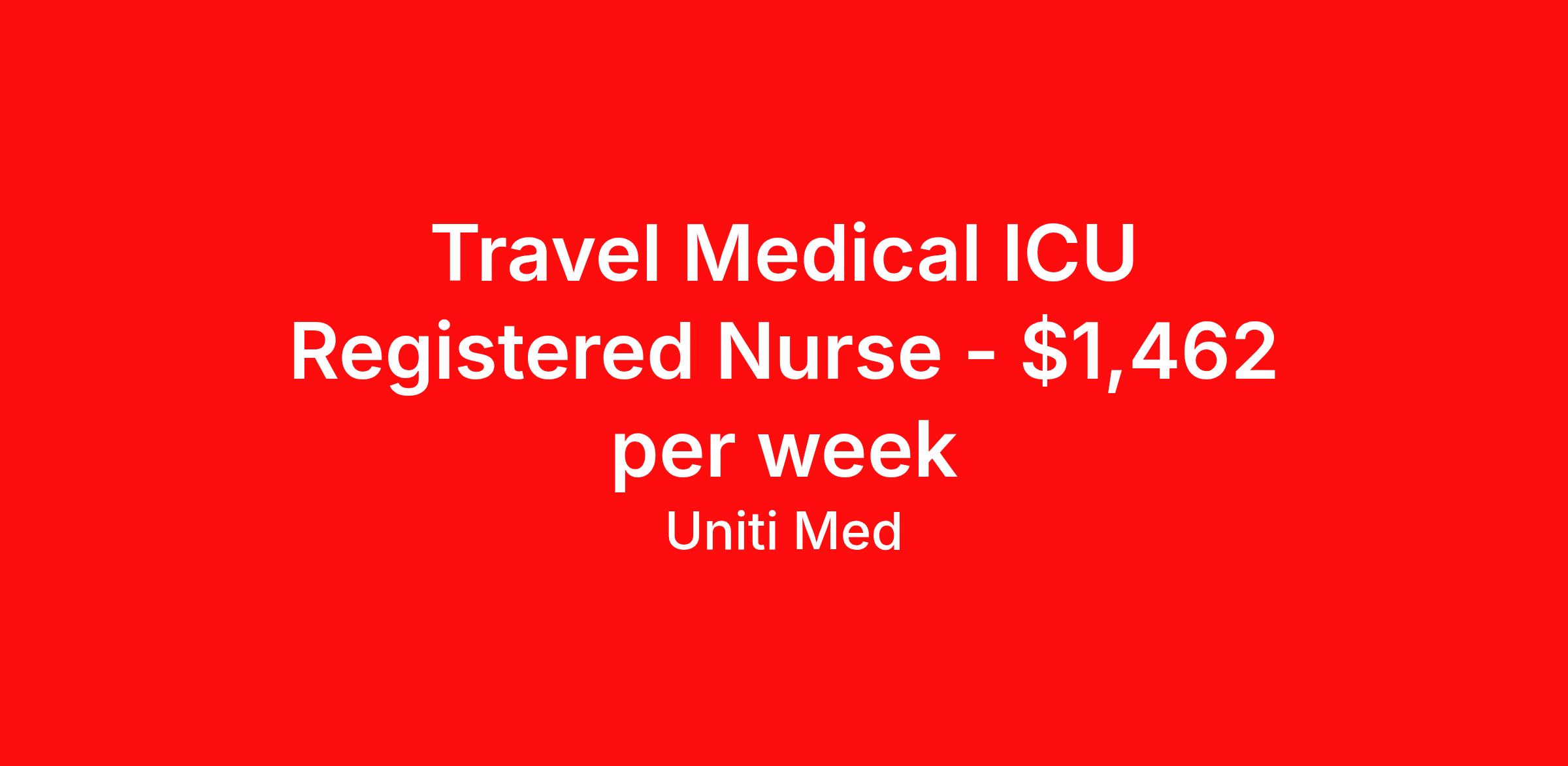 Travel Medical ICU Registered Nurse - $1,462 per week
