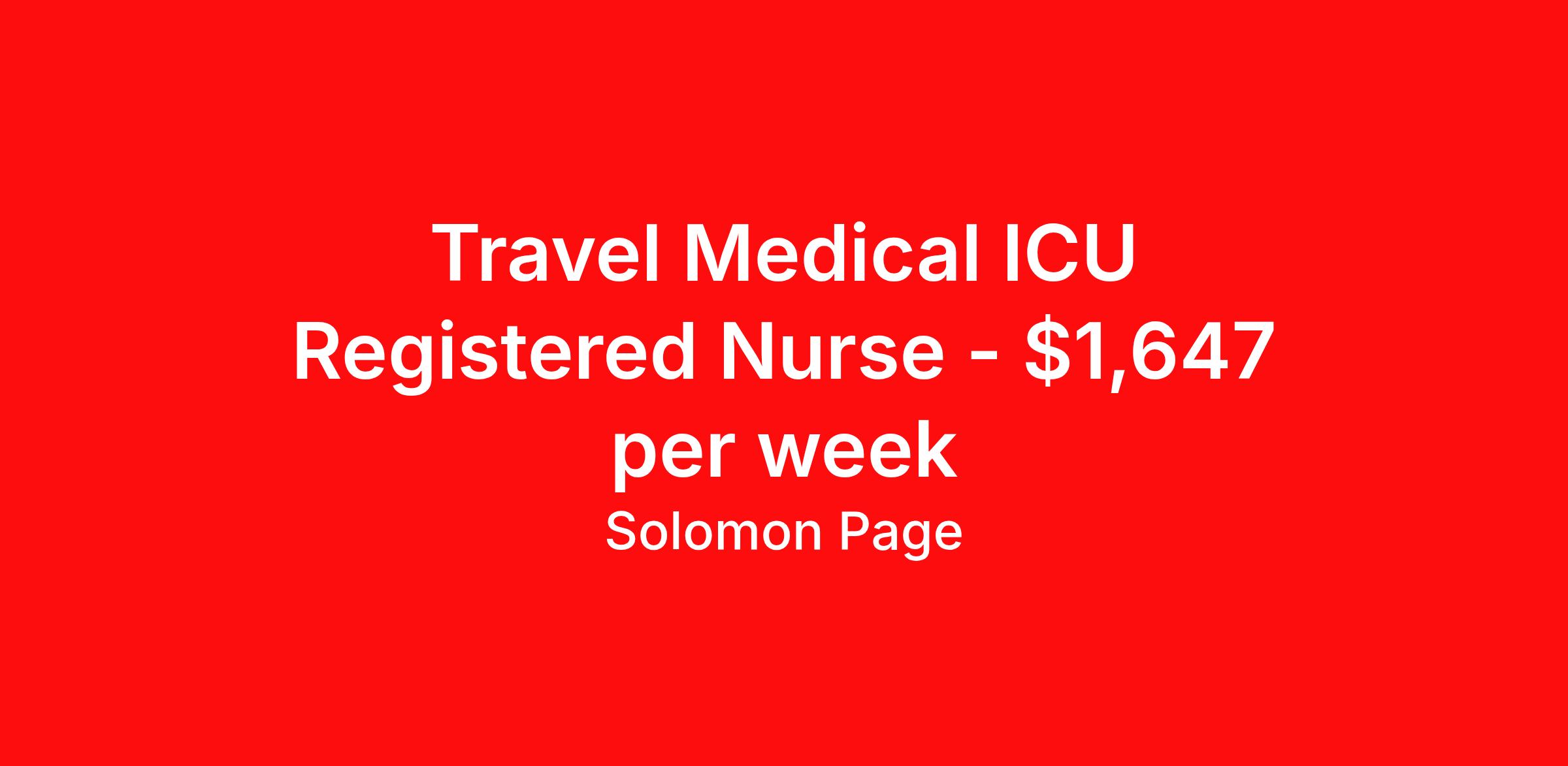 Travel Medical ICU Registered Nurse - $1,647 per week